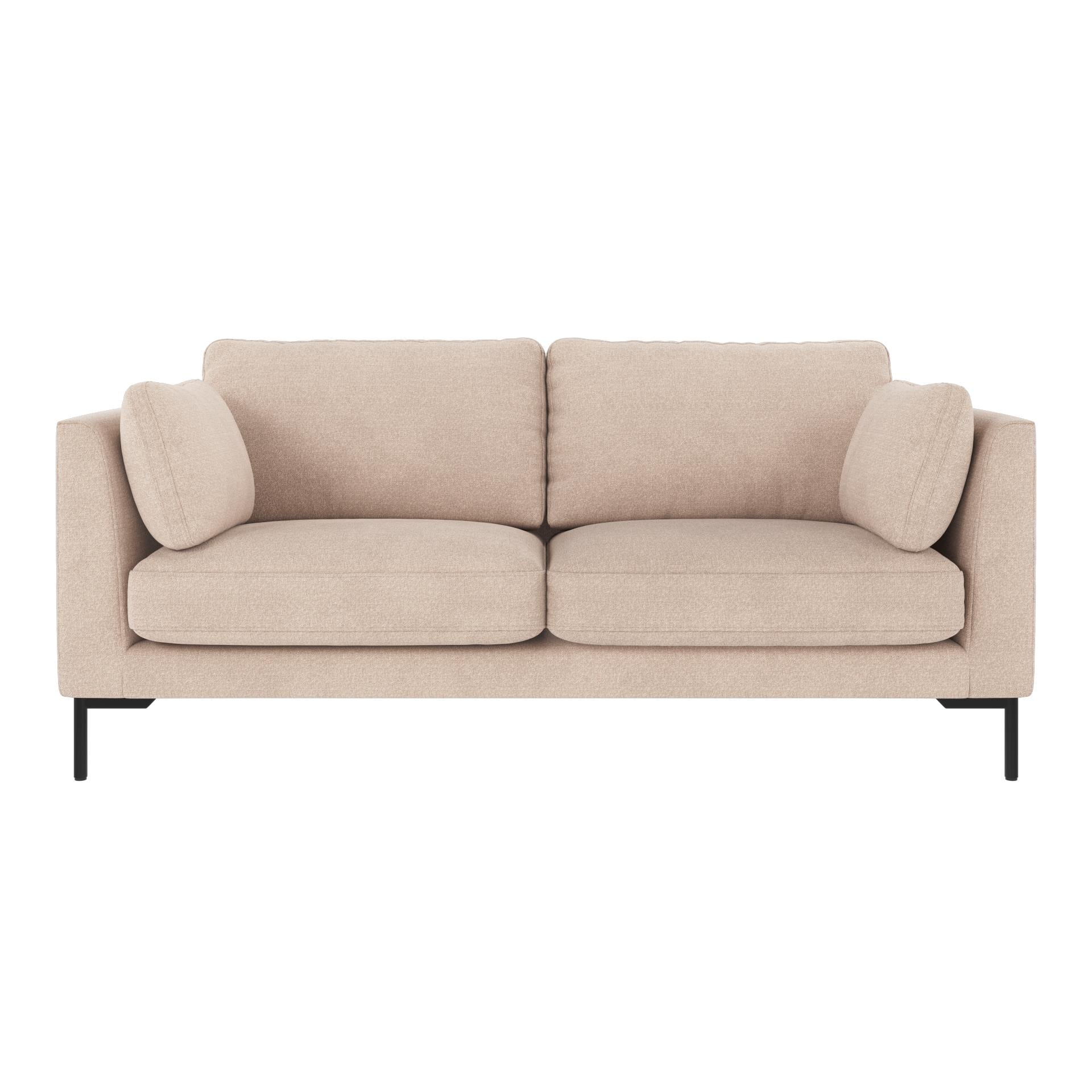 • Beige tvåsitssoffa med svarta metallben och lösa kuddar i modernt skandinaviskt design
