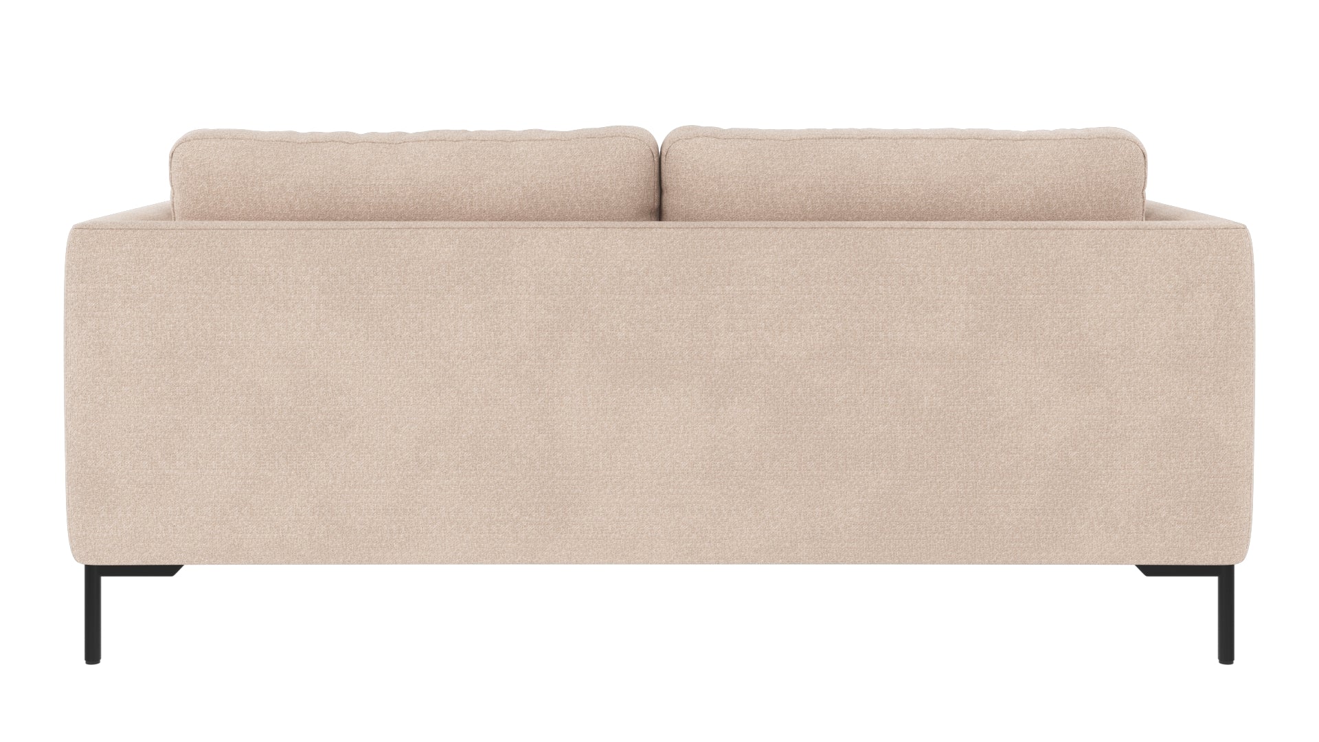 • Beige tvåsitssoffa med rena linjer och svarta metallben, sedd bakifrån