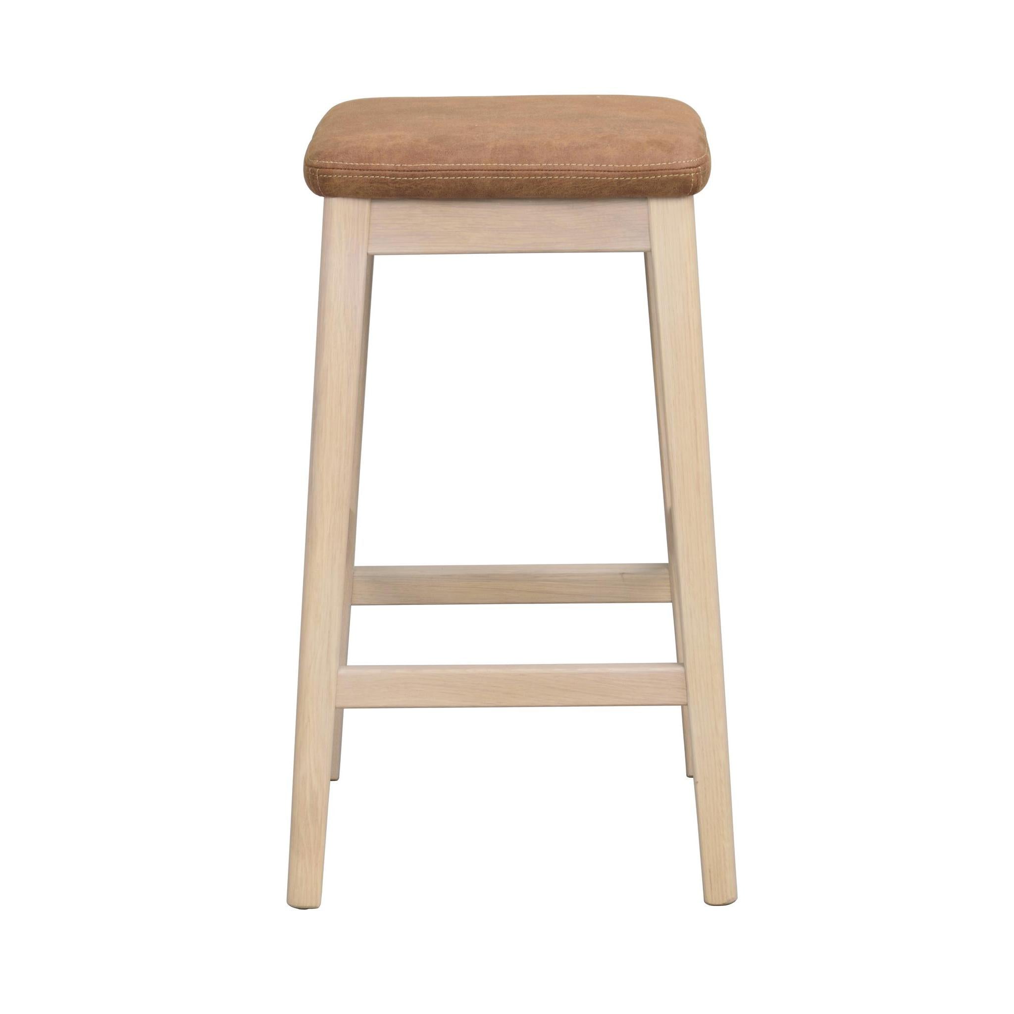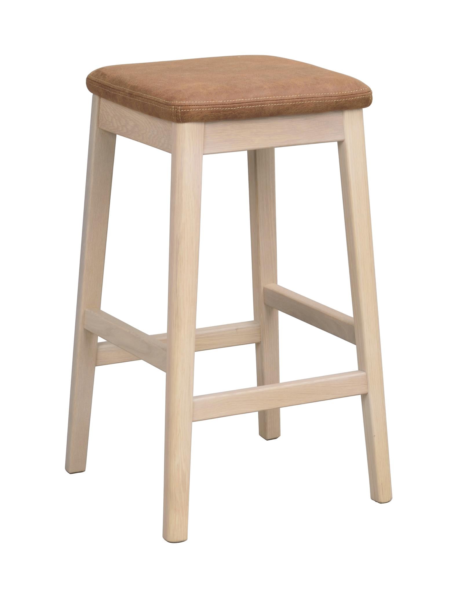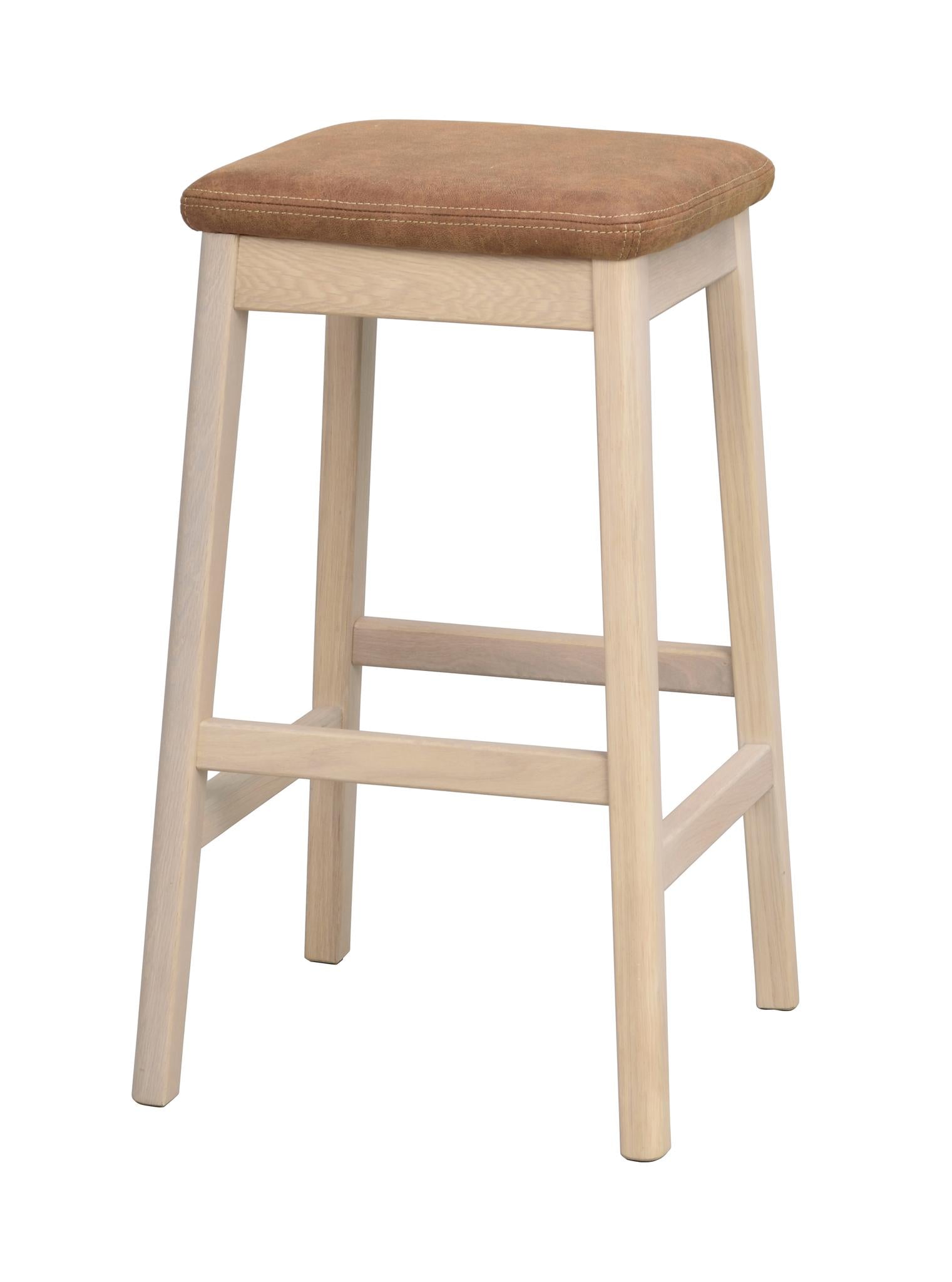 Livermore barpall kombinerar stilren design med komfort. Med sina raka linjer i massiv, FSC®-certifierad, vitpigmenterad ek och en elegant stoppad sits i slitstarkt lädertextil är den både modern och tidlös. Perfekt för köksön eller barbordet.