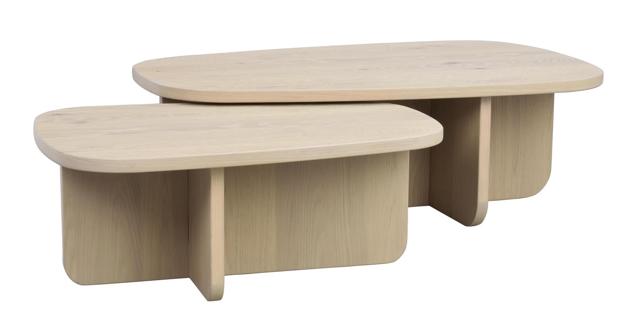 • Soffbord i ljust trä med organisk form, två delar med rundade kanter och korsformade ben
