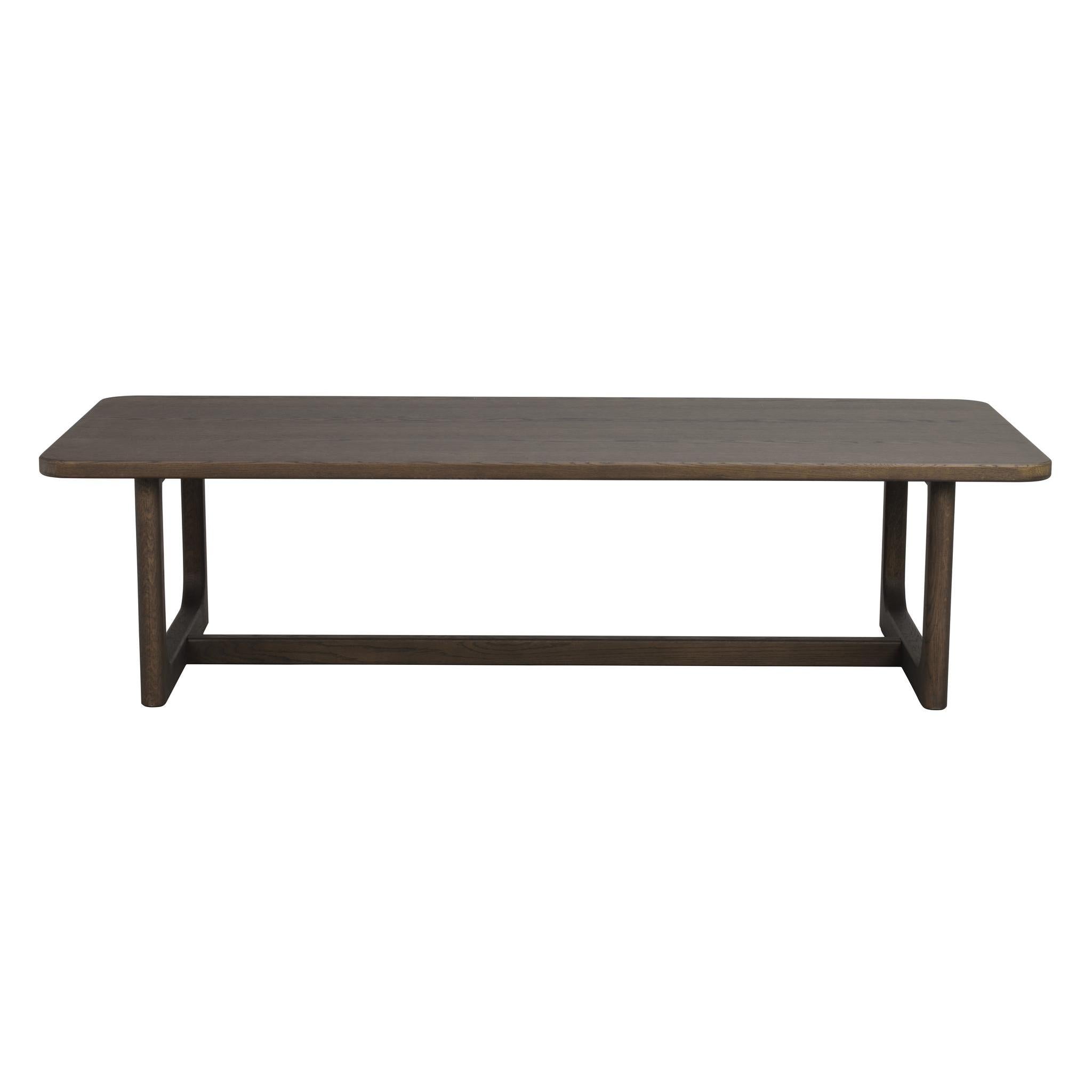 Driscoll är ett stilrent och generöst soffbord i brun ek som kombinerar funktion med form. Bordsskivan är fanerad med massiva kanter, vilket ger en gedigen känsla och hög kvalitet. De rundade hörnen möter de raka linjerna i en harmonisk balans som skapar ett modernt men tidlöst uttryck.