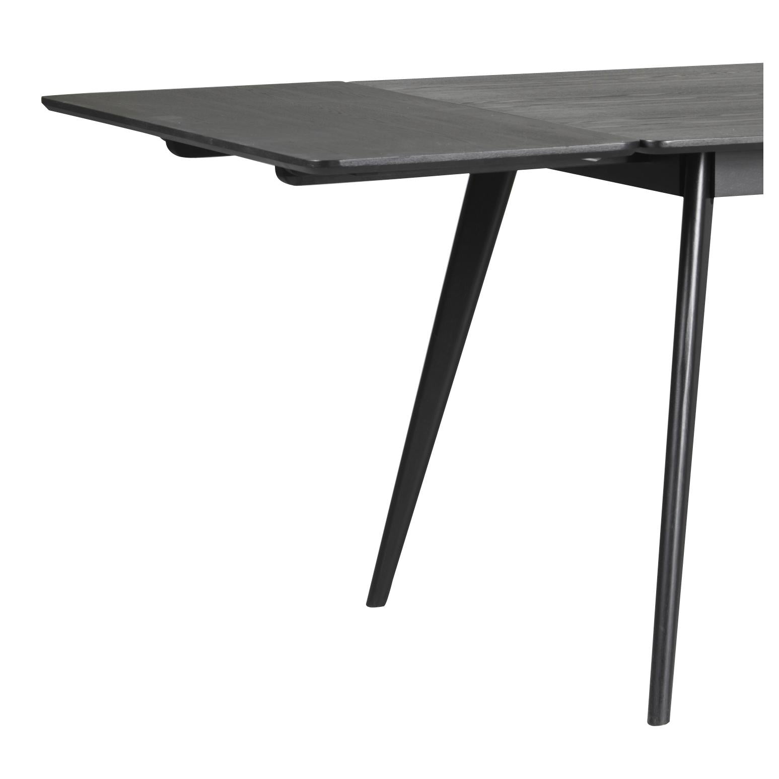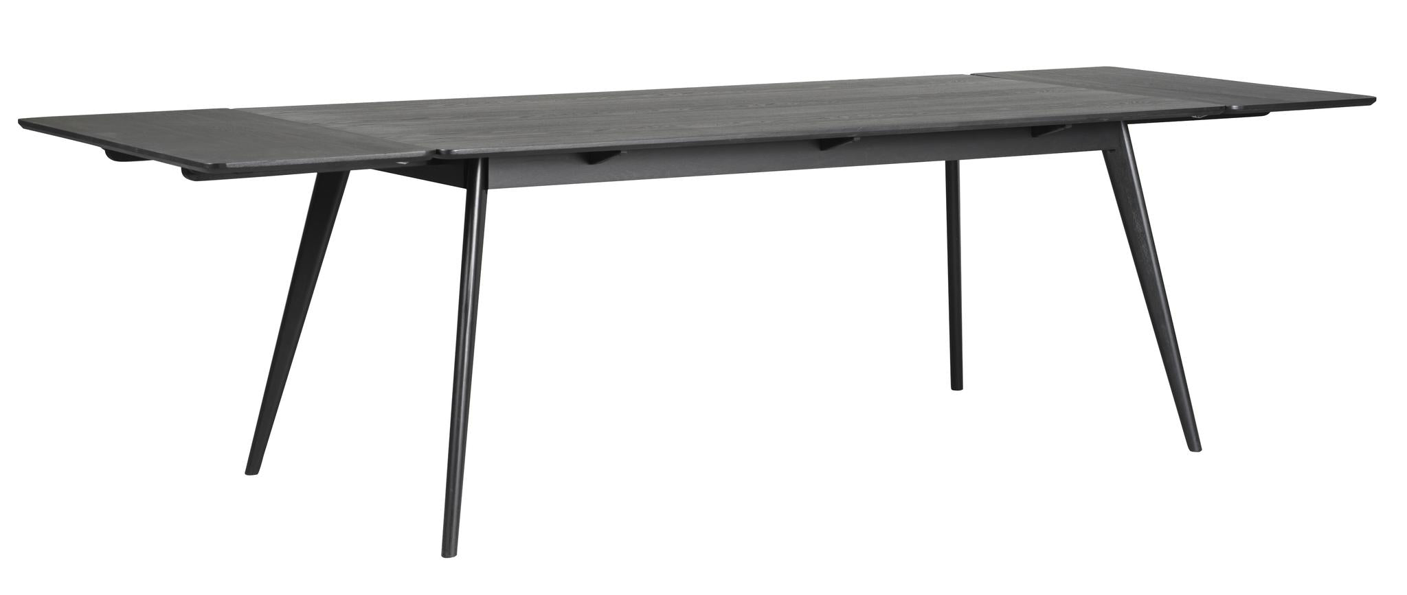 • Mörkgrått utdragbart matbord med snedställda ben i modern skandinavisk design