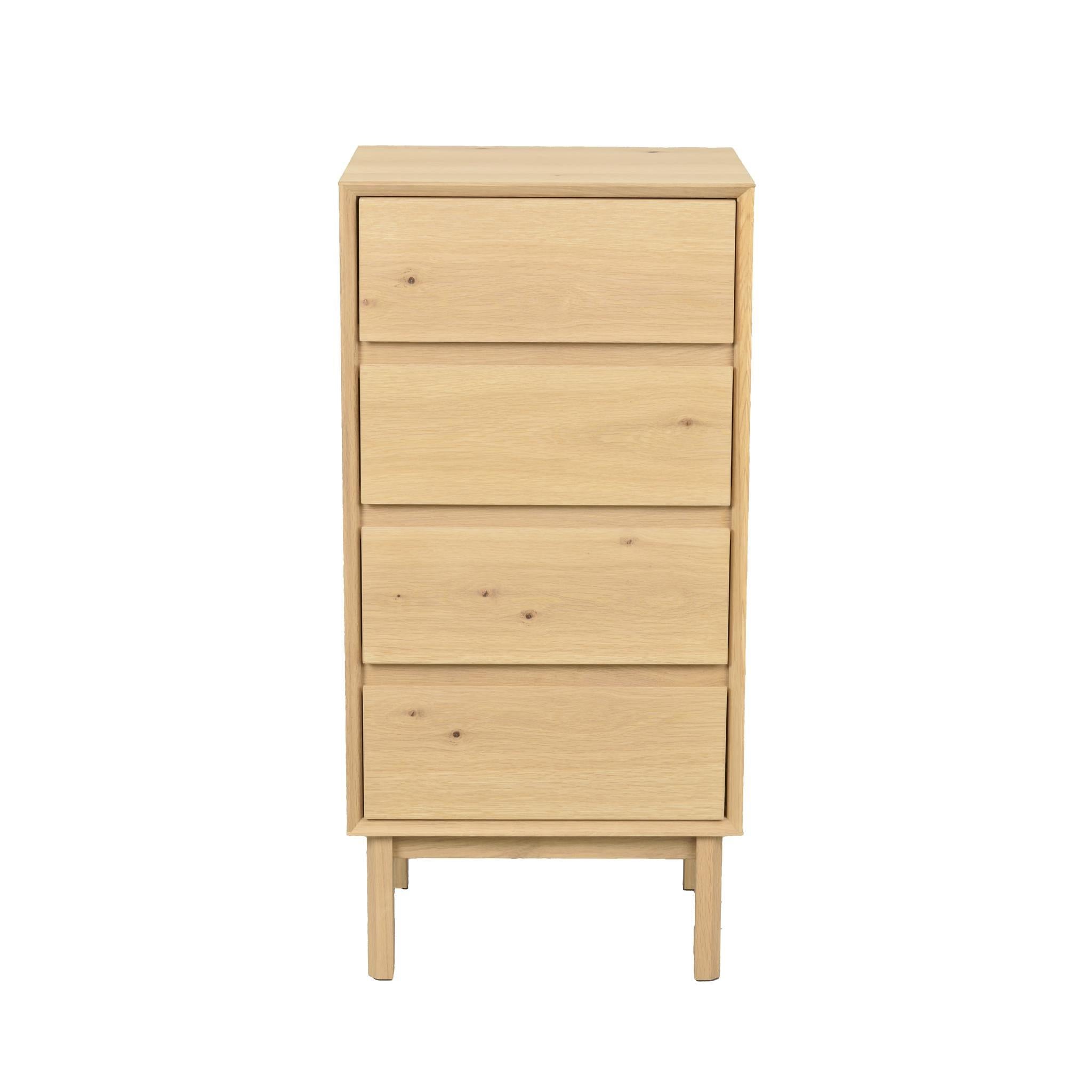 • Byrå i ljust trä med fyra lådor och smala ben i skandinavisk design