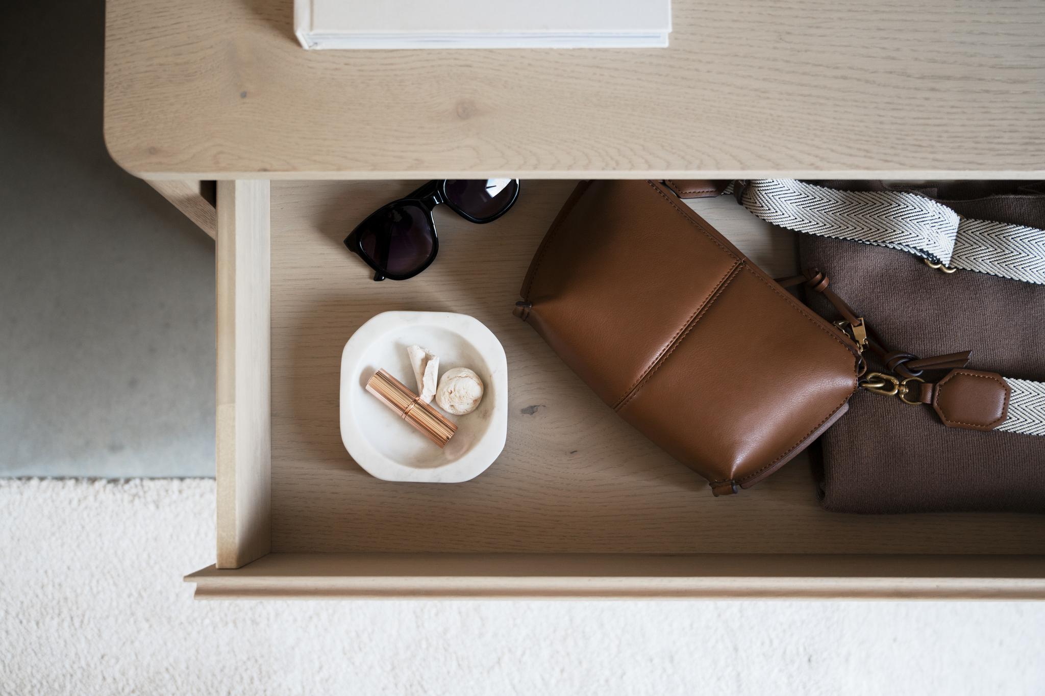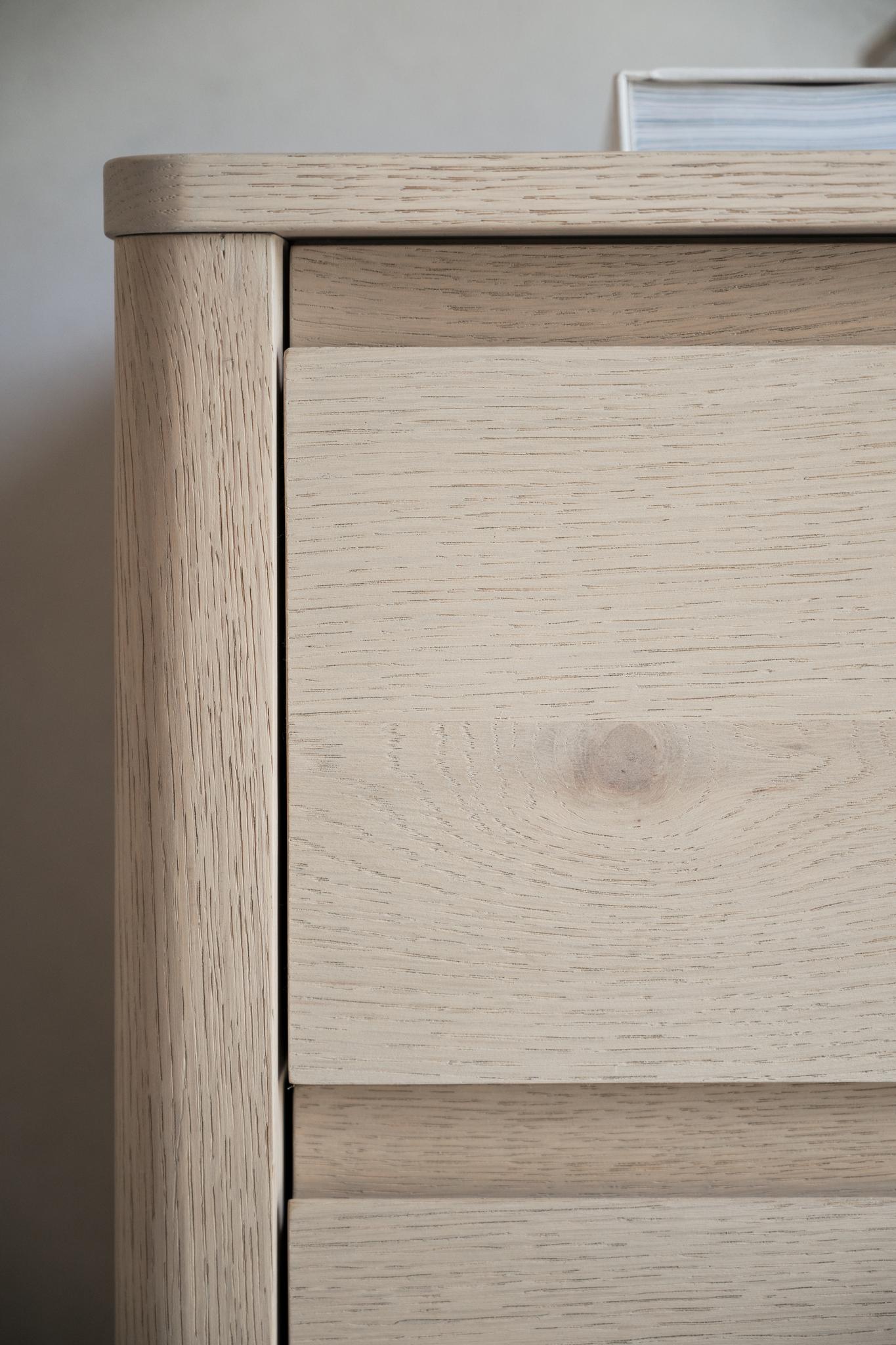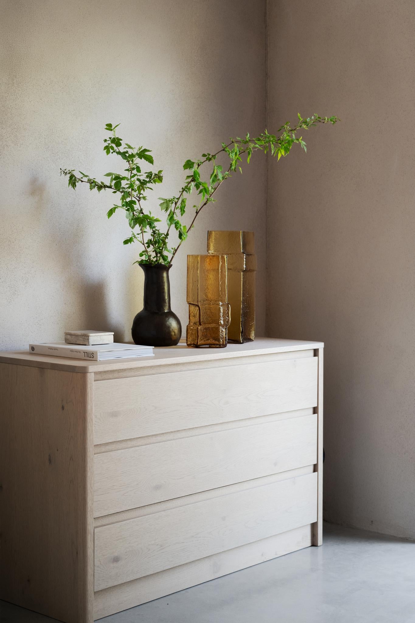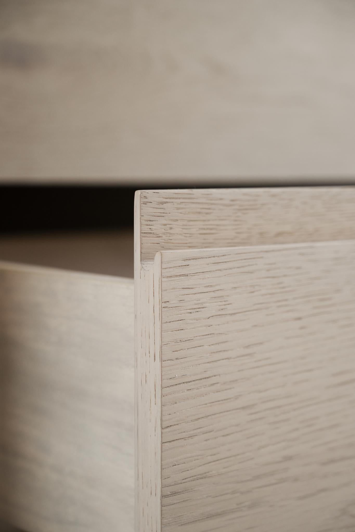 Melstone är en byrå i brunoljad FSC®-certifierad vildek med genomgående hantverkskänsla och mjuka former. Byrån har infrästa handtag i massivt trä, en detalj som både är funktionell och estetiskt tilltalande. Alla delar är fanerade med rundade kanter för ett mjukt och modernt uttryck, och byrån vilar på en upphöjd sarg som ger en lätt, svävande känsla. Den dolda mjukstängande funktionen på lådorna förstärker den genomarbetade känslan.