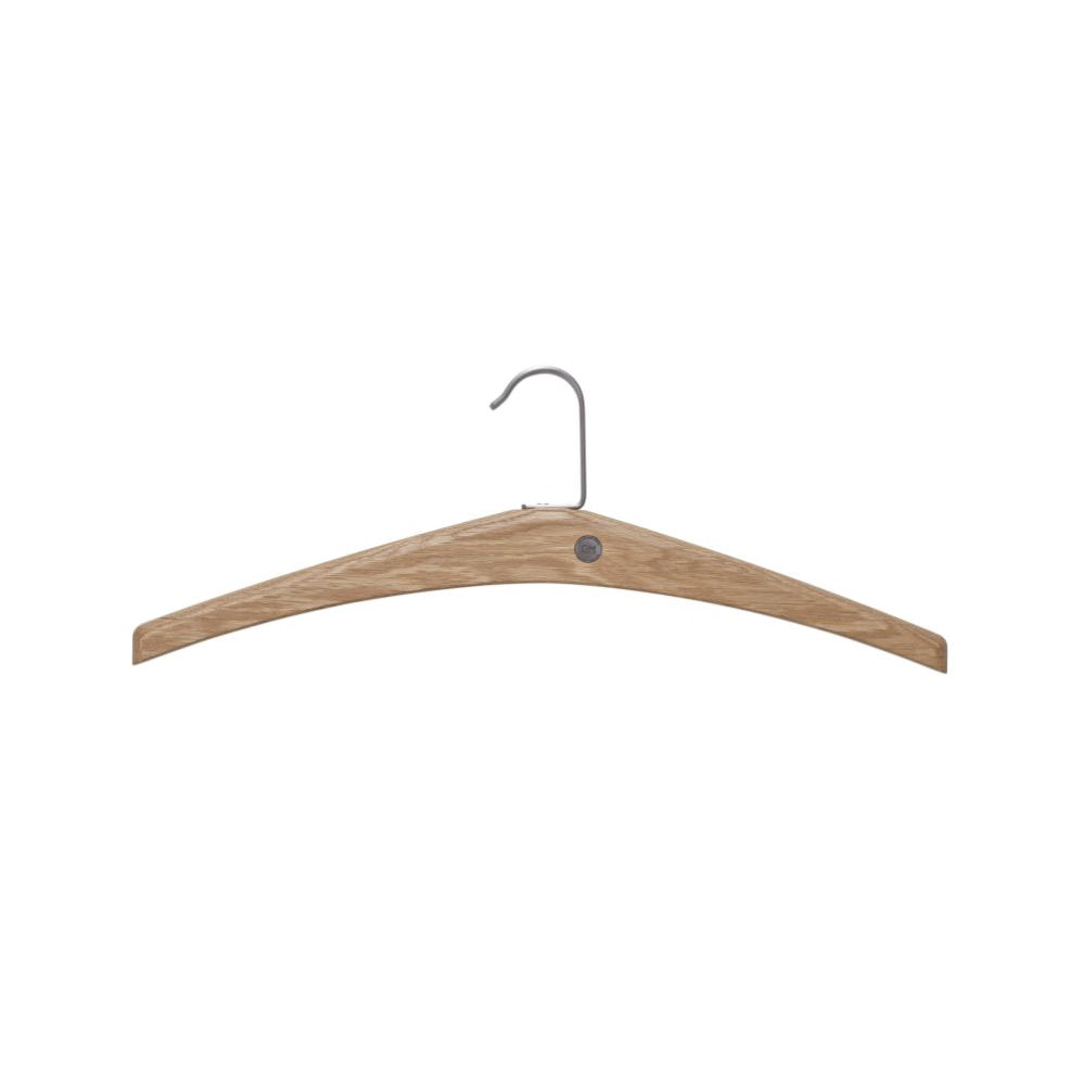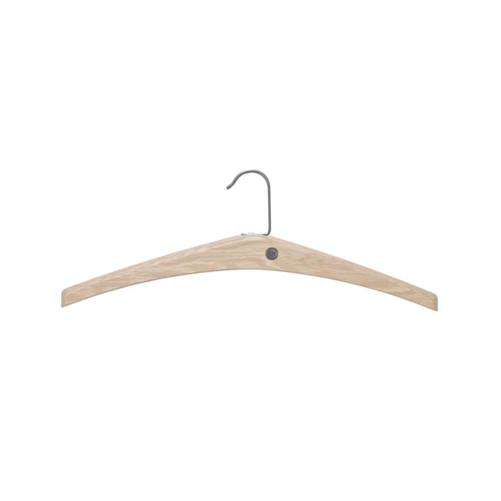 • Galge i trä med metallkrok för kläder, naturlig ekfärgad finish