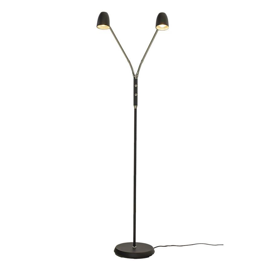 Sandnes golvlampa med dubbla lamphuvuden ger flexibel belysning i en klassisk design. De två lamphuvudena sitter på böjbara armar så att du kan rikta ljuset dit du vill och de dubbla dimmervreden ger dig full kontroll över belysningen. Sandnes golvlampa kan även kombineras med andra lampor i Sandnes-familjen
