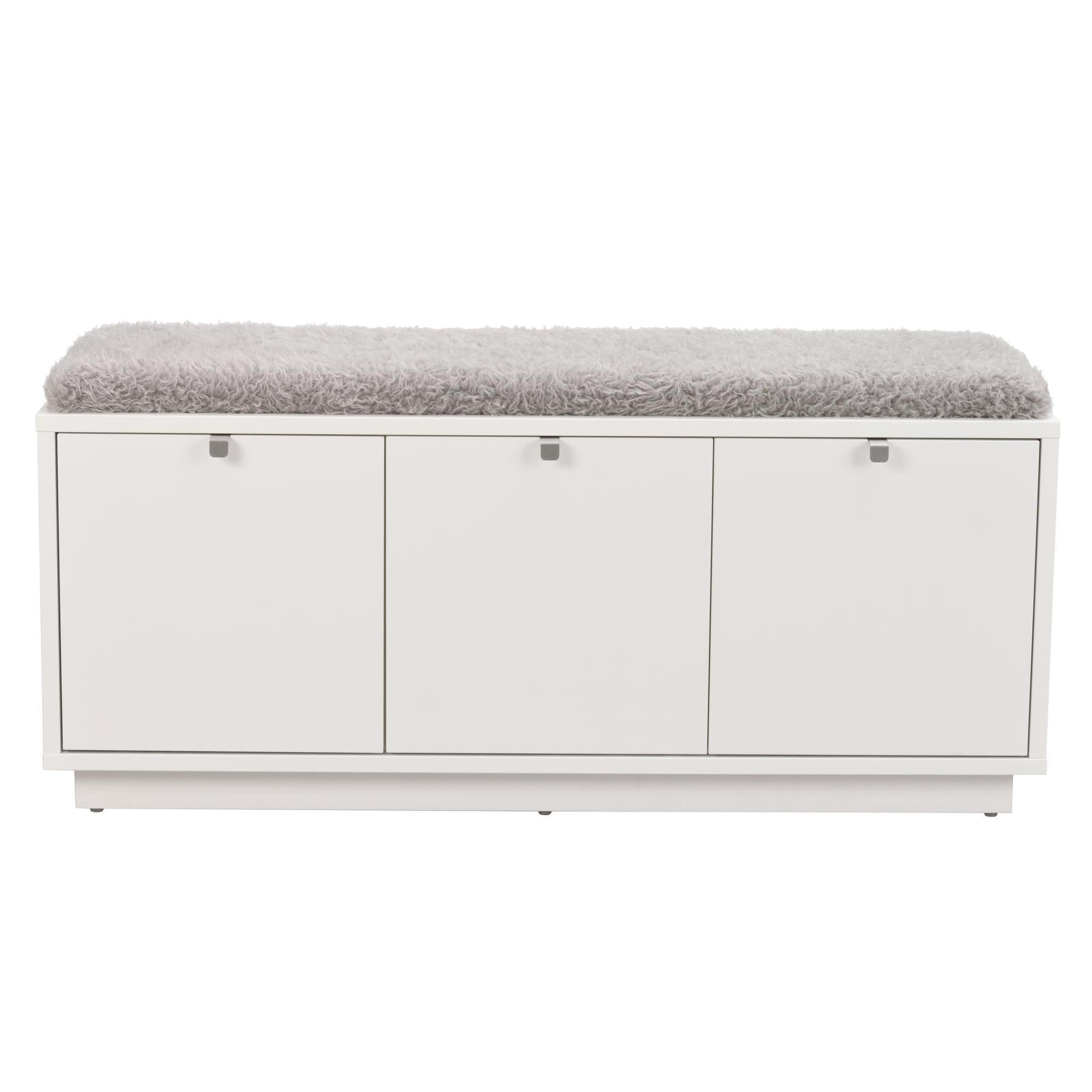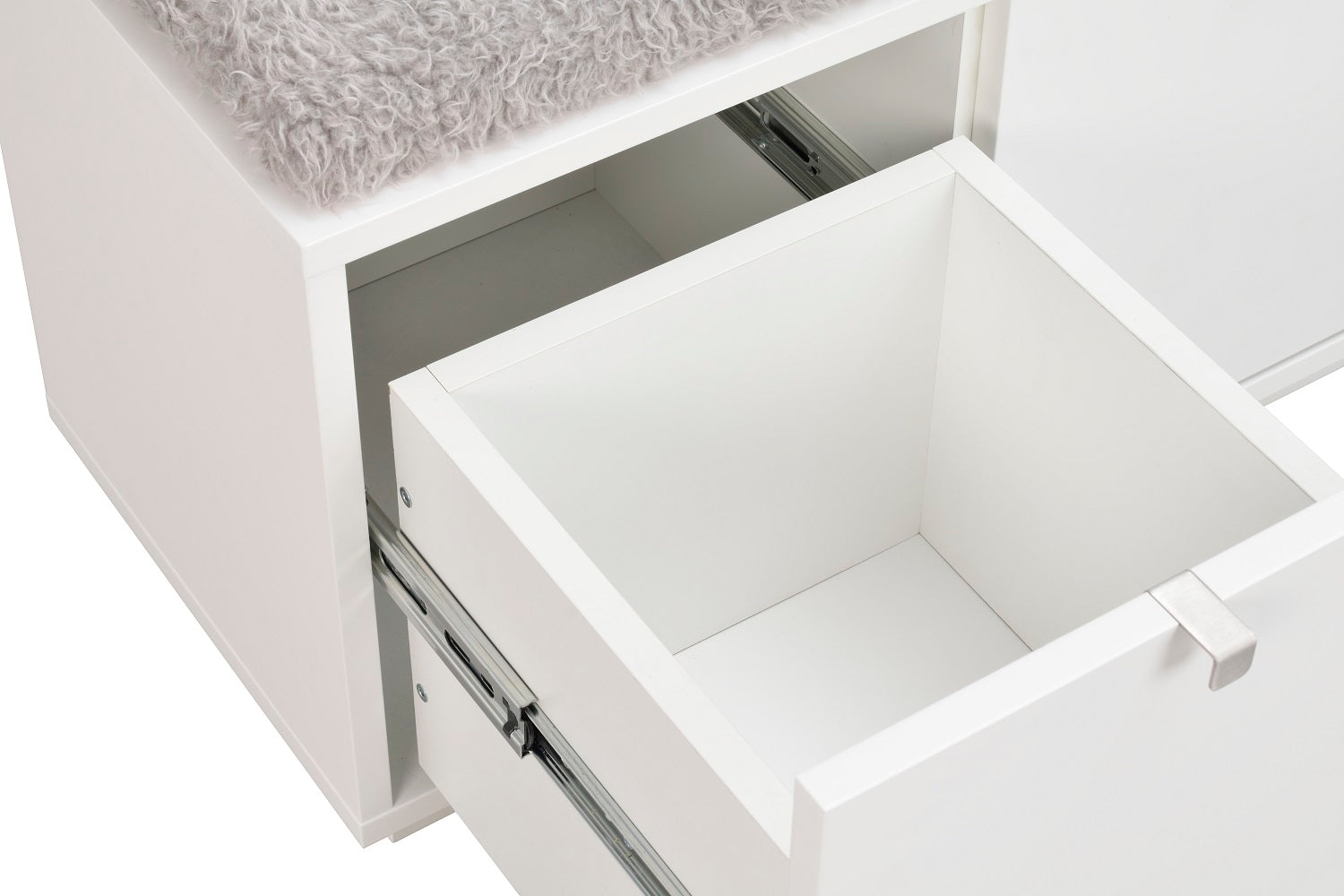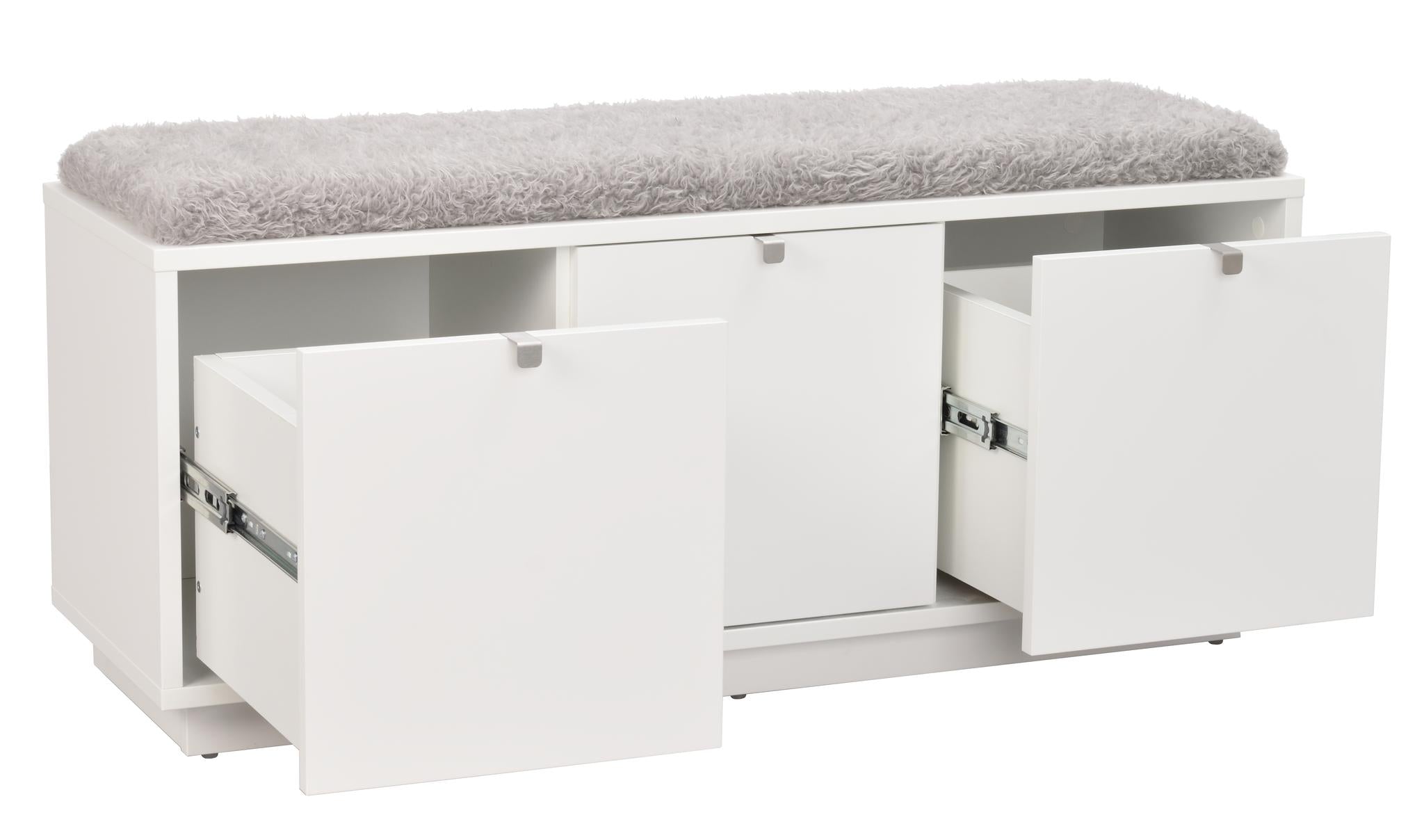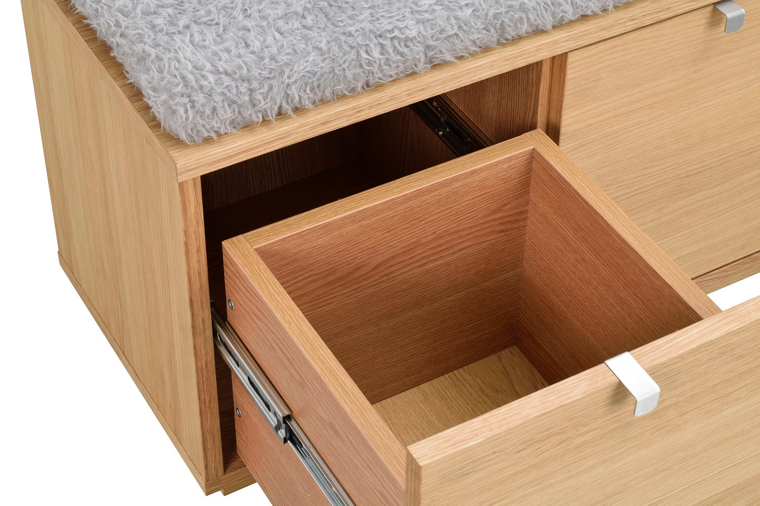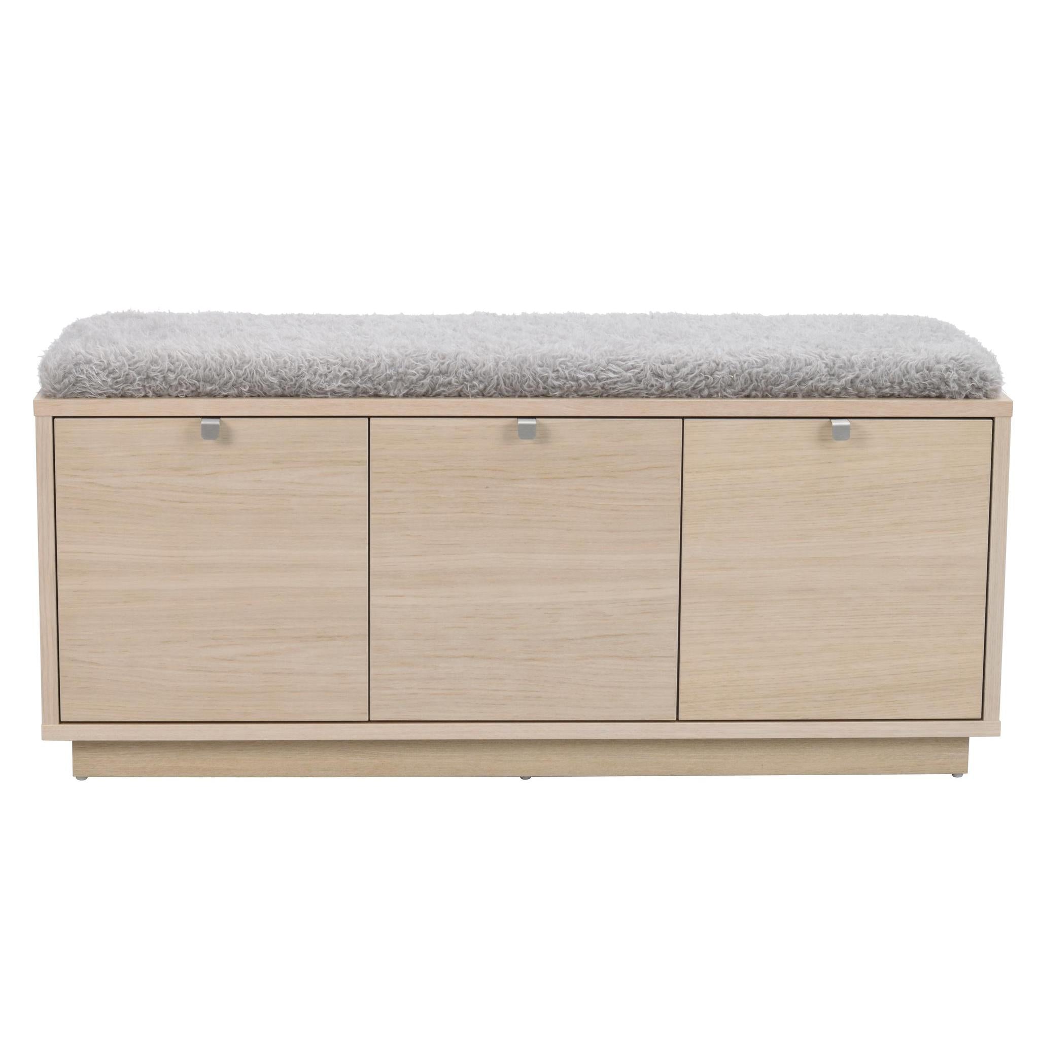 Confetti sittbänk i fanerad oljad ek med dyna i fårskinnsimitation. Praktisk och stilren sittbänk med två rymliga lådor som tar hand om förvaringen. Ingår i hallserien Confetti.