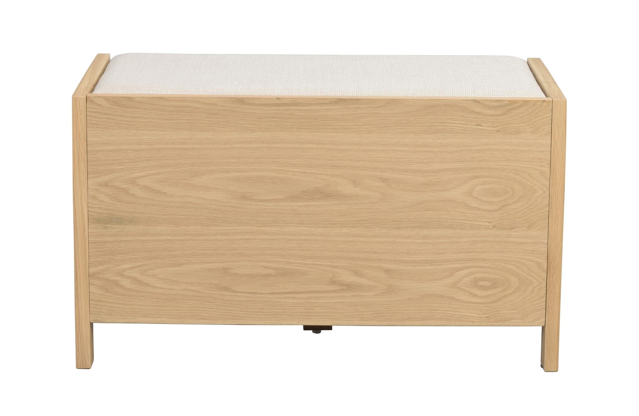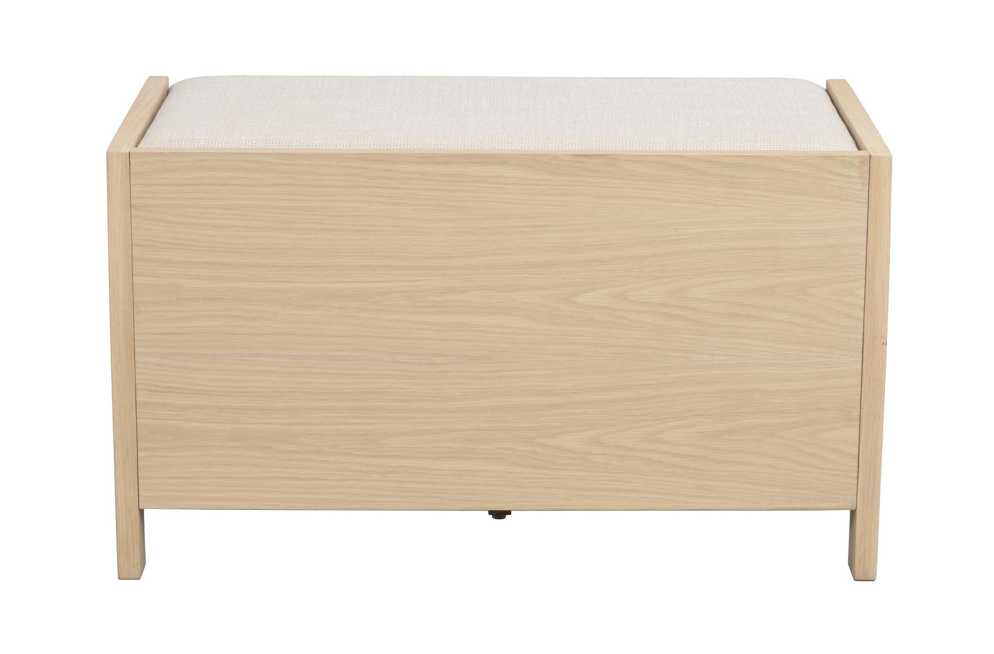 • Förvaringsbänk i ljus ek med vit stoppad sits och öppningsbart lock