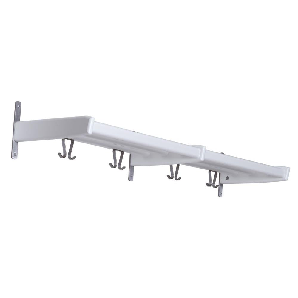• Vit väggmonterad klädhängare med fem krokar i metall, vikbar design för smart förvaring