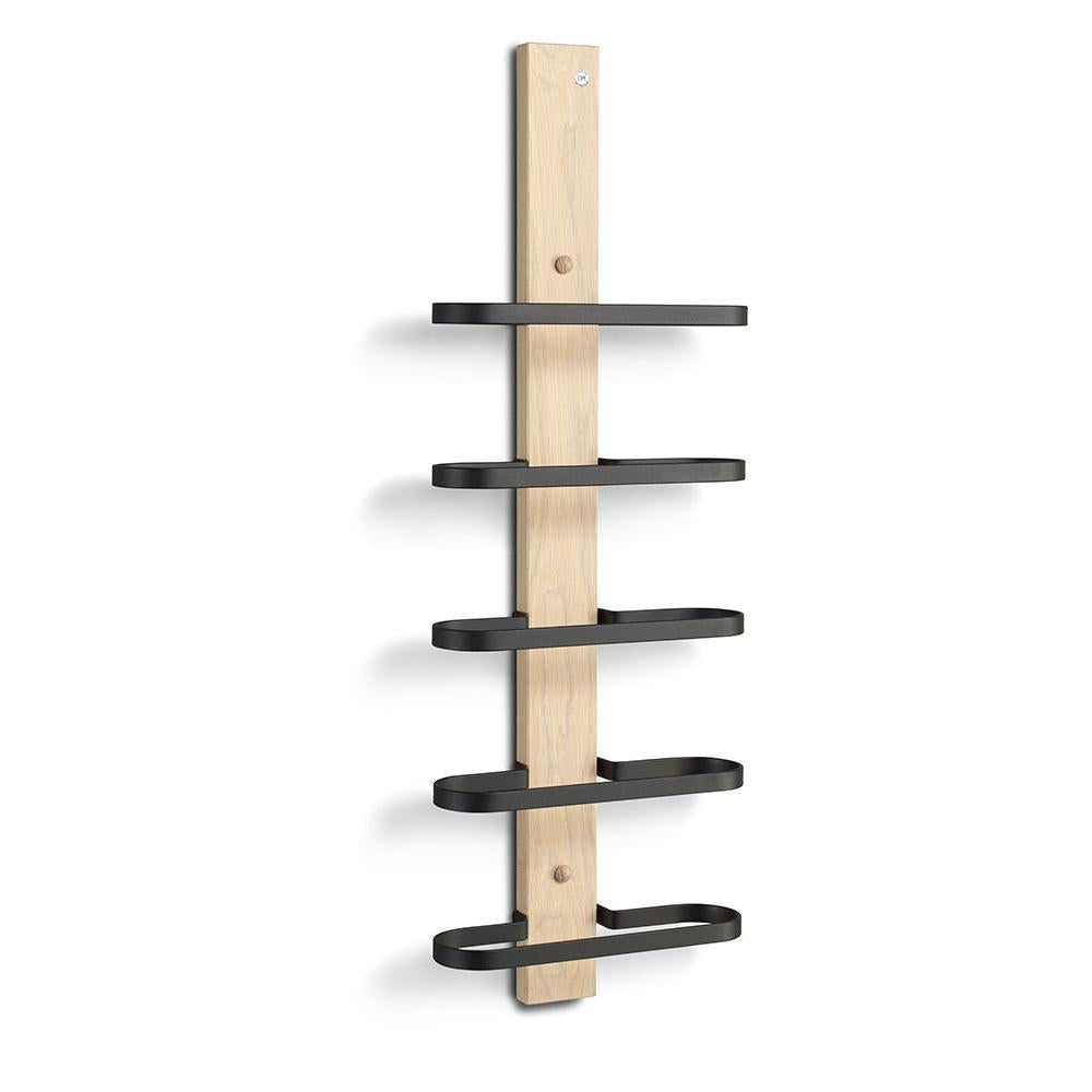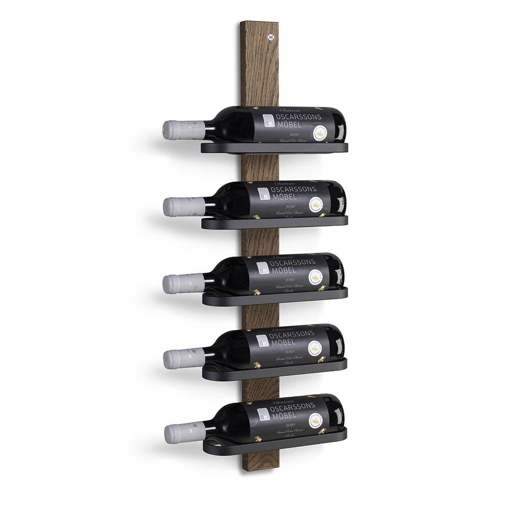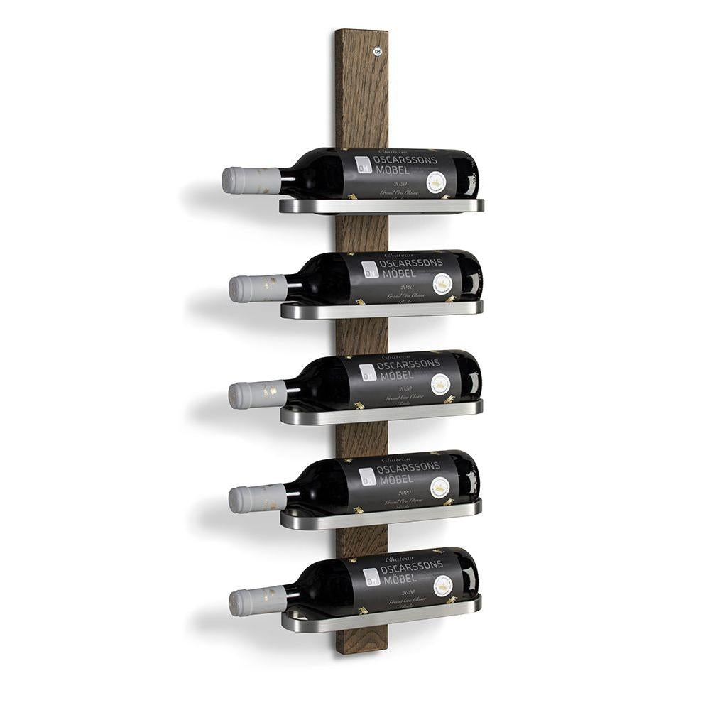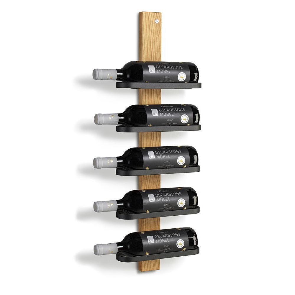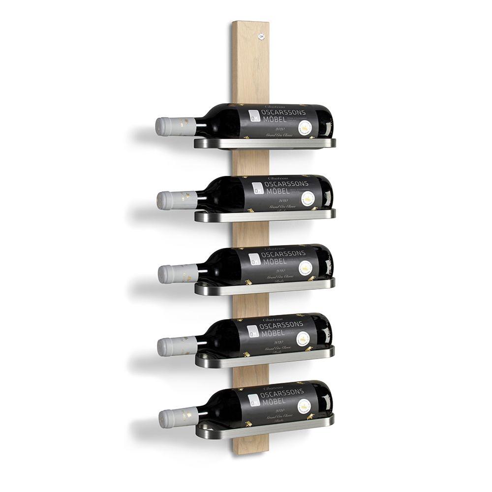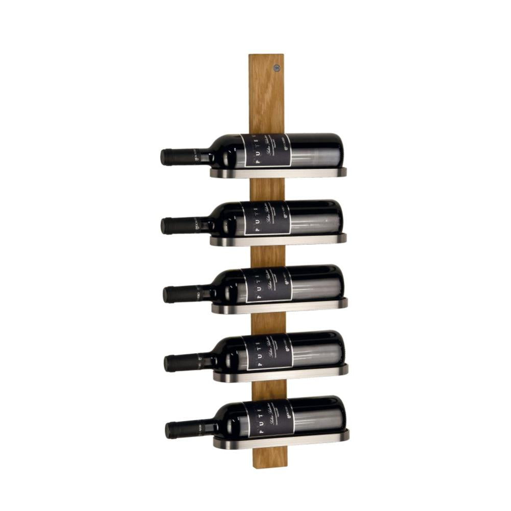 • Väggmonterad vinställ i ek med metallhållare för 5 flaskor vin, vertikal design