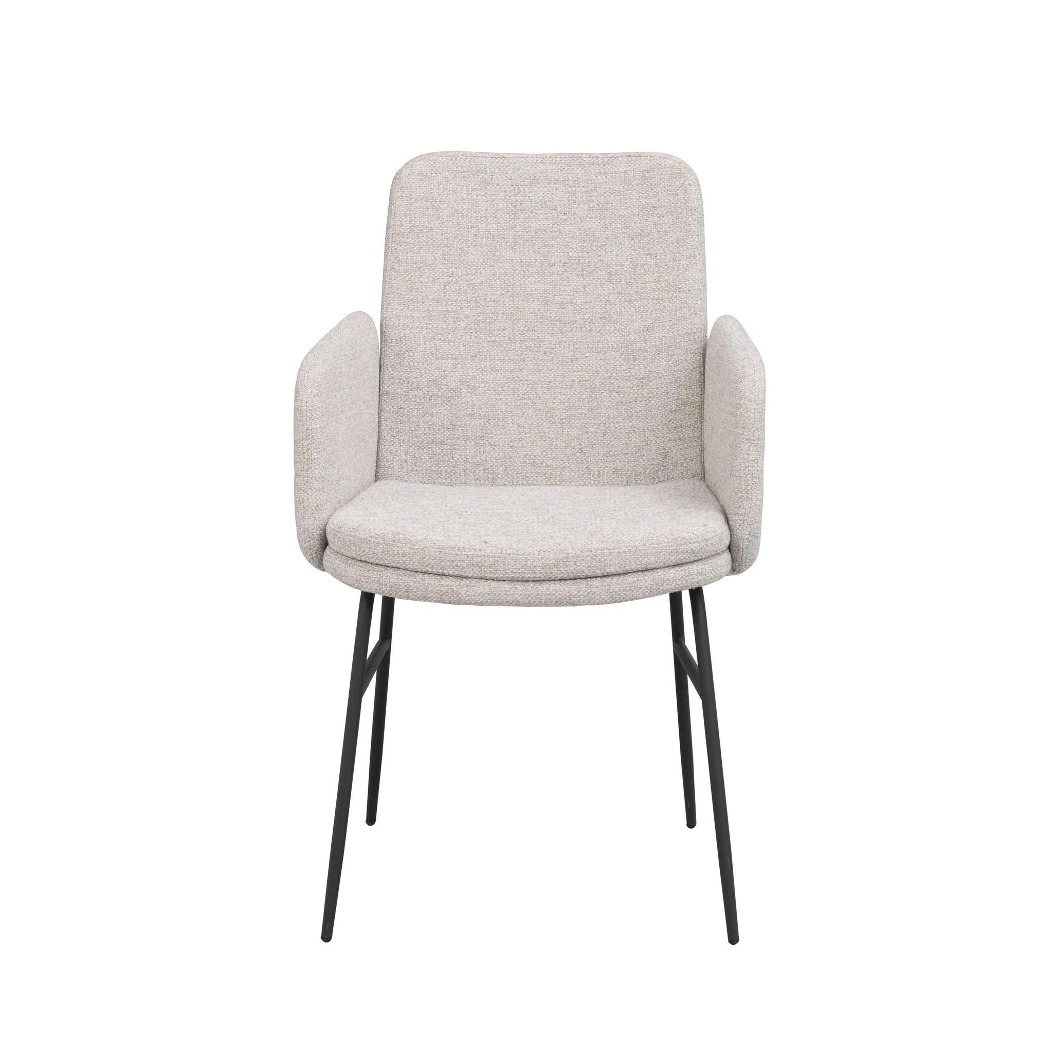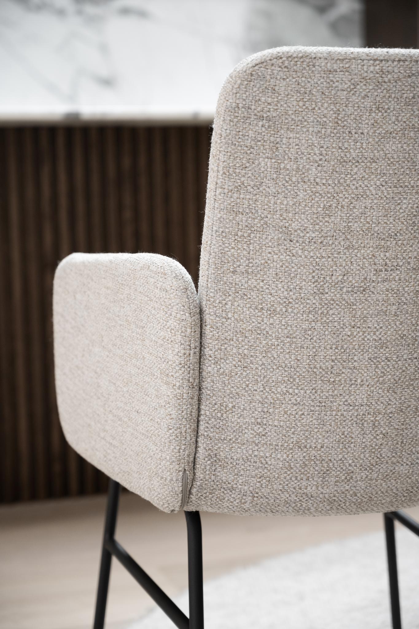 Conklin karmstol med metallunderrede är en mycket bekväm stol. En enkel design kombinerat med en skön stoppad sits som gör att du kan sitta länge vid matbordet. Finns även i mörkbeige textil.