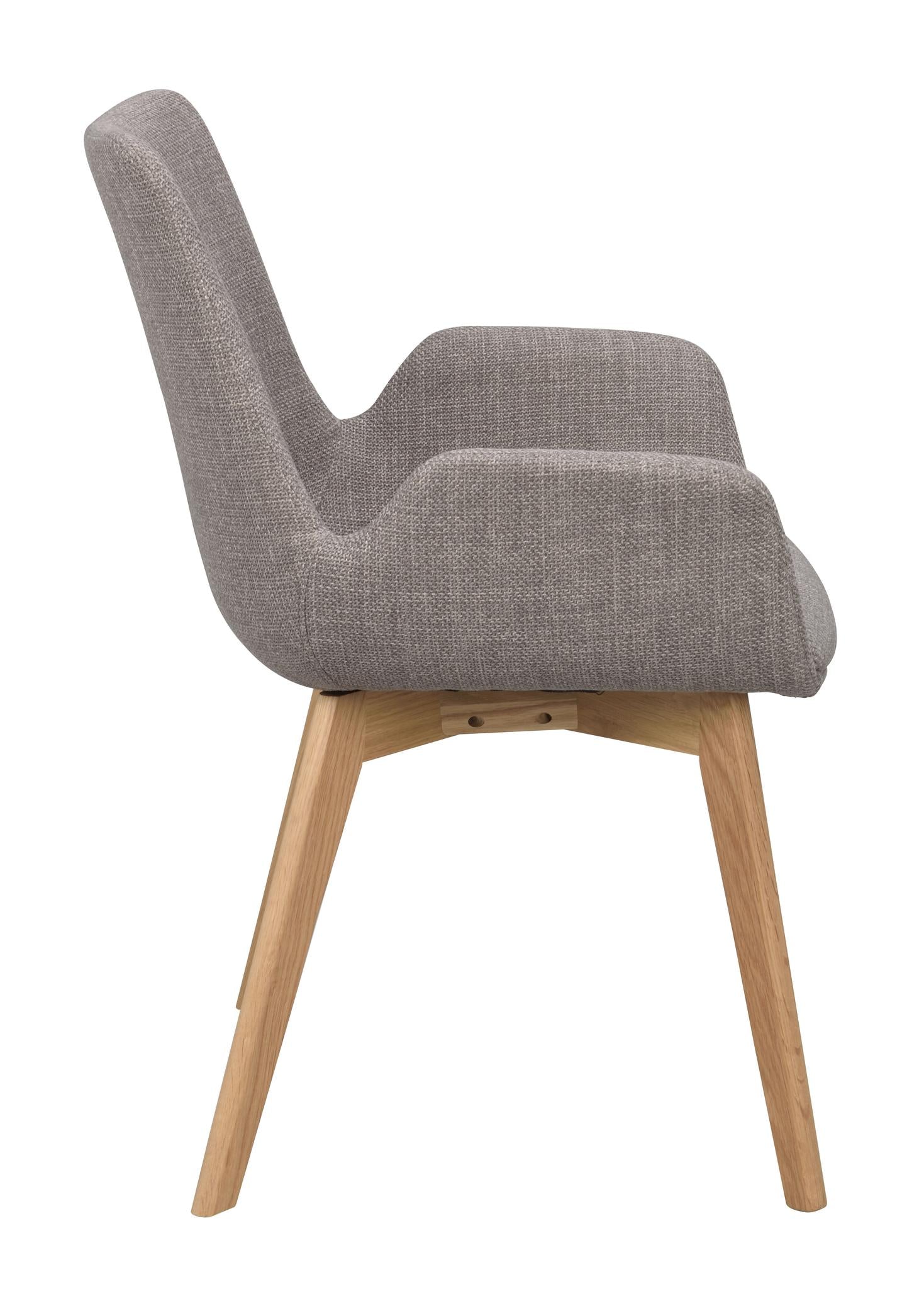 • Grå matstol med armstöd och träben i ljust trä, modern skandinavisk design