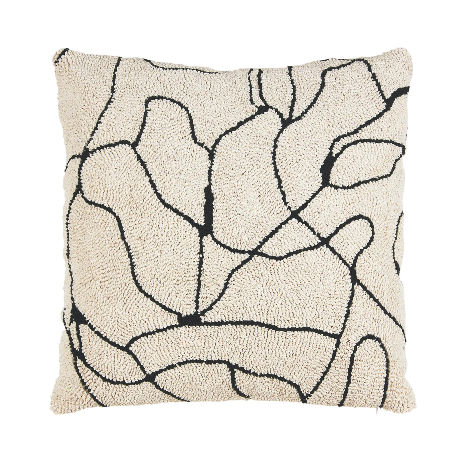 Kuddfodral som på framsidan pryds av ett ögletuftat mönster, som ger en modern och trendig touch. Baksidan är enfärgad och gjord i canvas.