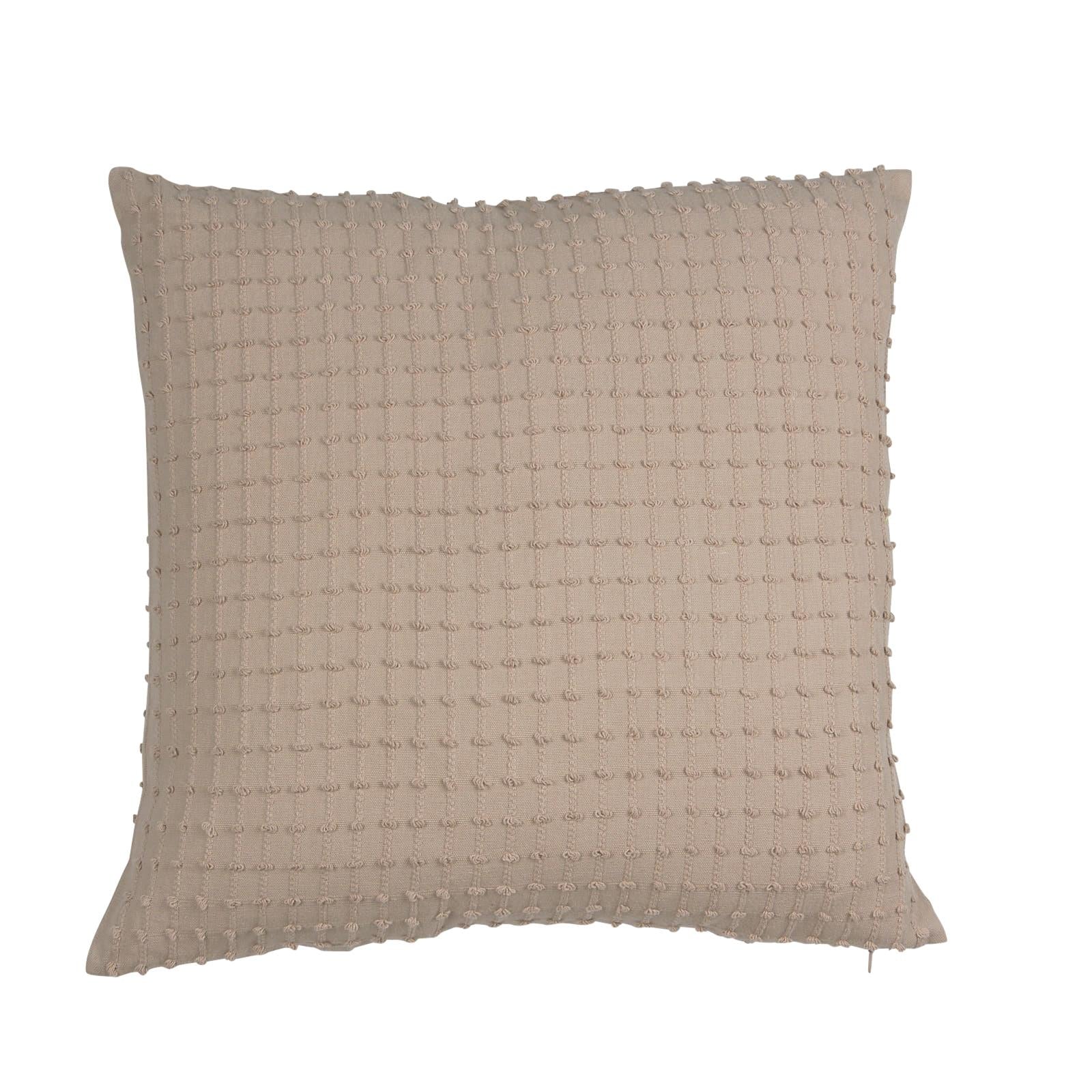 Ett kuddfodral i bomull med små bomullsknutor på är en charmig inredningsdetalj. Kuddfodralet är mjukt och behagligt, medan de små knutorna skapar en subtil textur och djup på ytan.