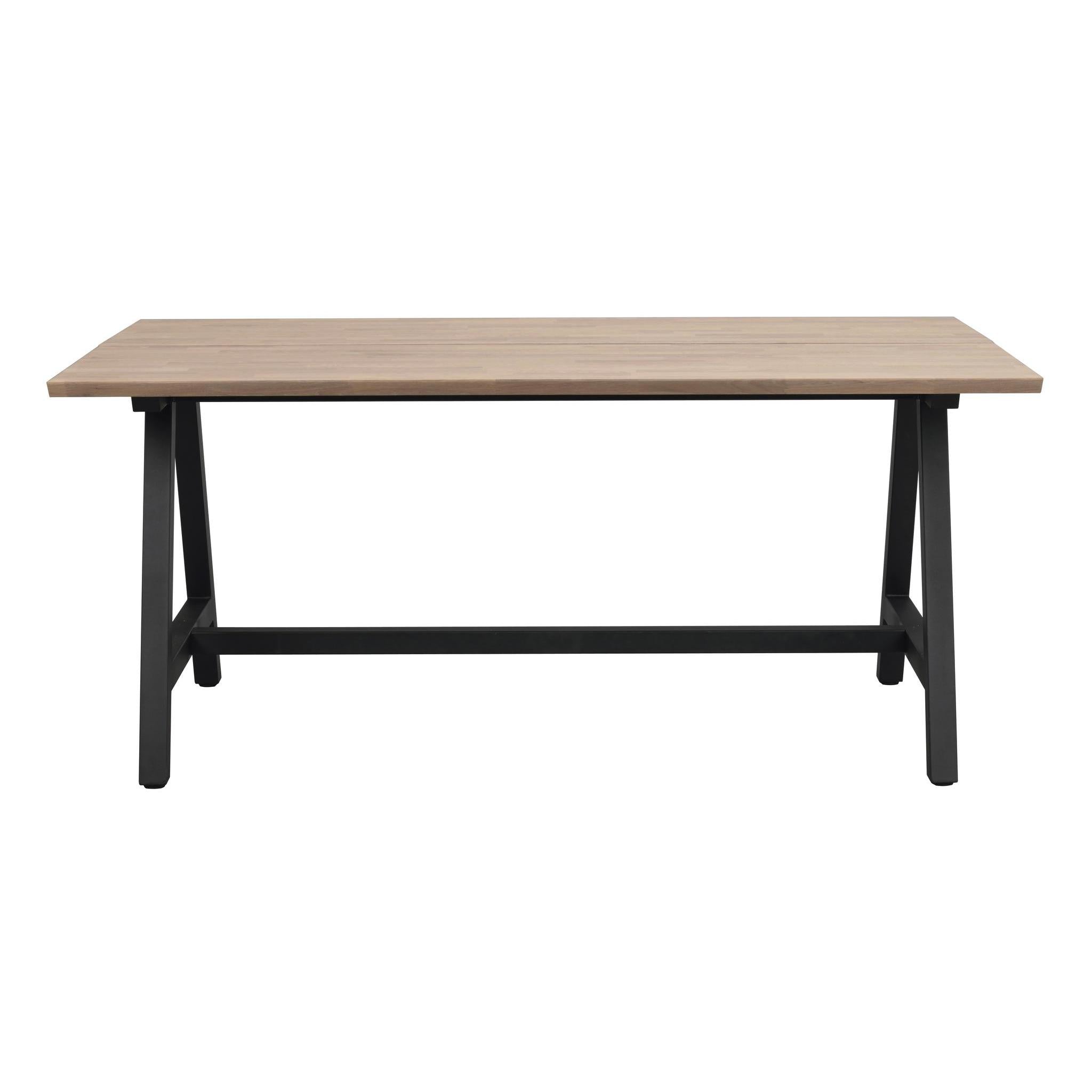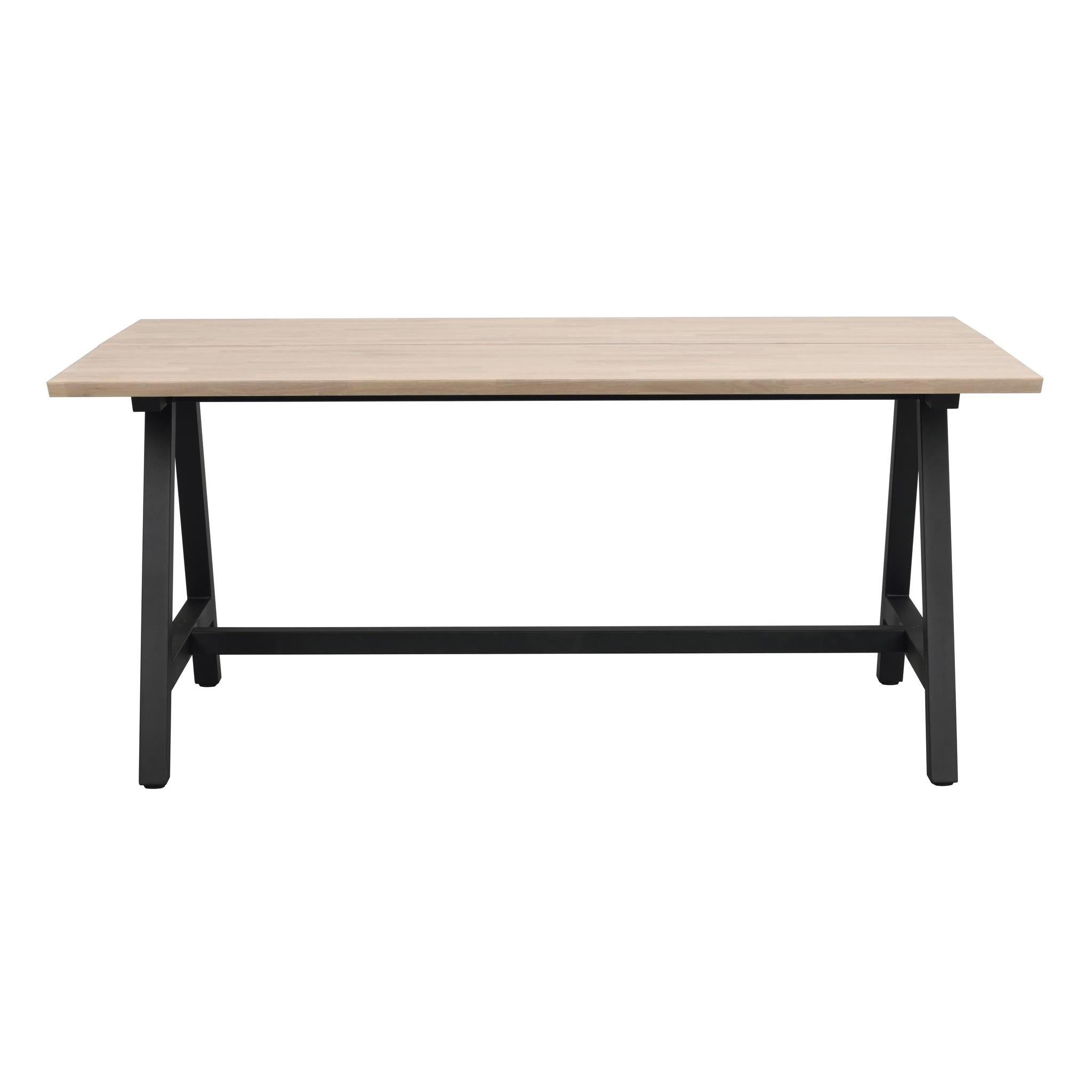• Matbord med ljus träskiva och svarta metallben i A-formad design med tvärgående stag
