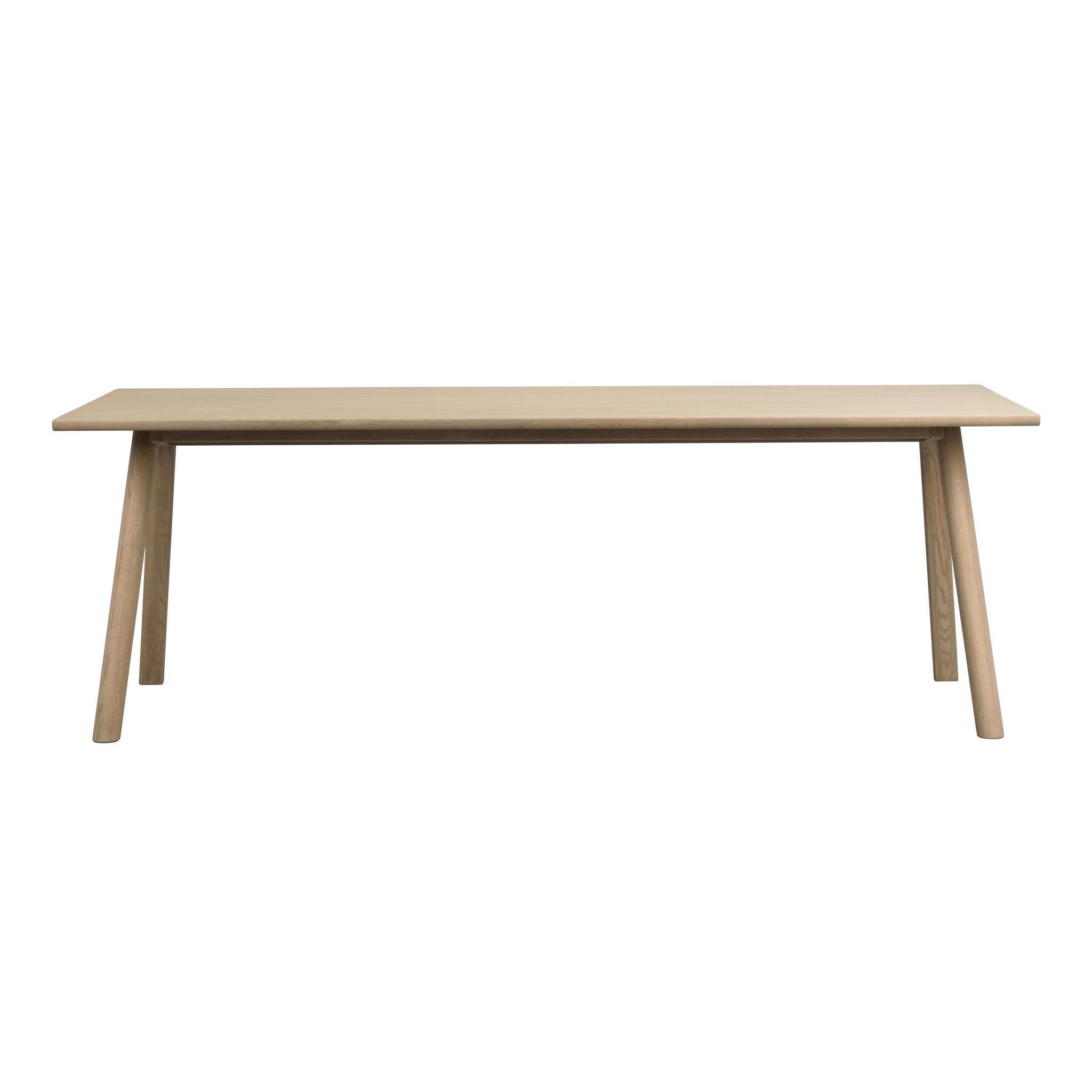 • Ljust träbord med raka ben i minimalistisk skandinavisk design, snett framifrån