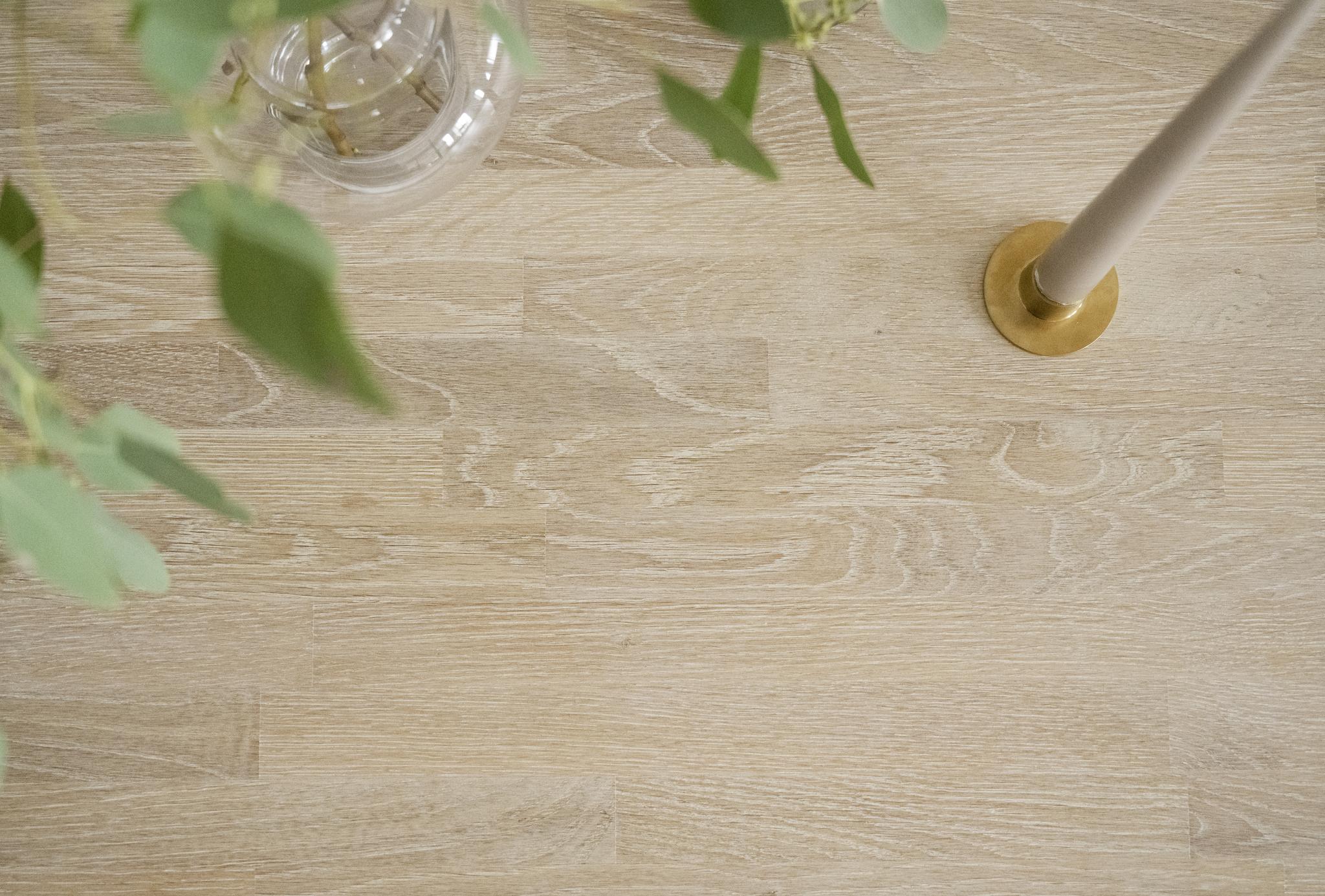 • Ljust trägolv med naturlig ekstruktur och synliga årsringar i diagonal vinkel