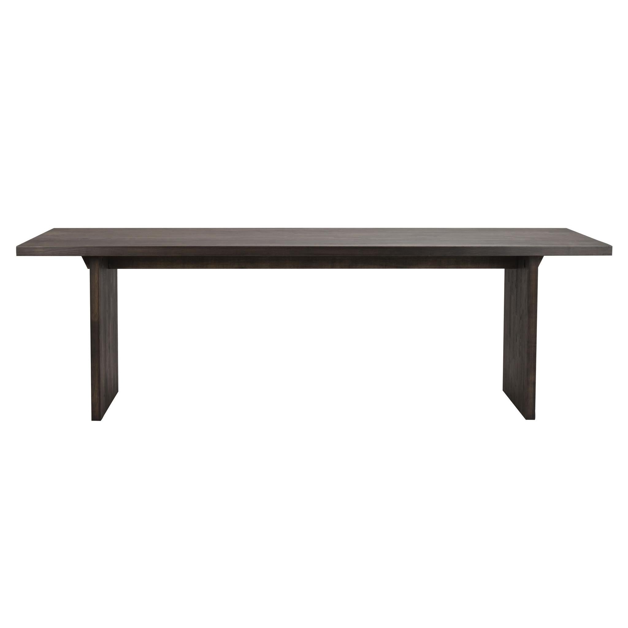 • Mörkgrått matbord i trä med raka ben och rektangulär bordsskiva, frontvy mot vit bakgrund
