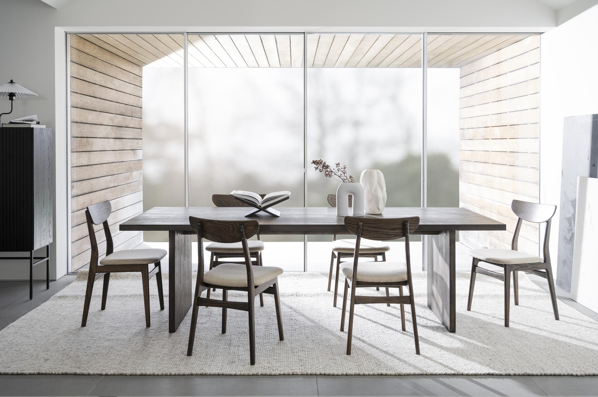 Exklusiva Emmett matbord i brunoljad massiv ek består av 100 % FSC-certifierat europeiskt trä. Den gedigna bordsskivan med borstad yta vilar på två stabila massiva ben som lätt monteras ihop. Bordet har tyngd och utstrålar exklusivitet och stabilitet vilket gör det extra passande för härliga middagar i matsalen eller i den öppna planlösningen. Emmett matbord är ett tidlöst matbord som håller år efter år. Att bordet är tillverkat av 100 % FSC-certifierat trä innebär att allt trä kommer från ett ansvarsfullt skogsbruk som tar hänsyn till människor och miljö. Överhäng, kortsidan: 27,5 cm. Finns i flera färger.