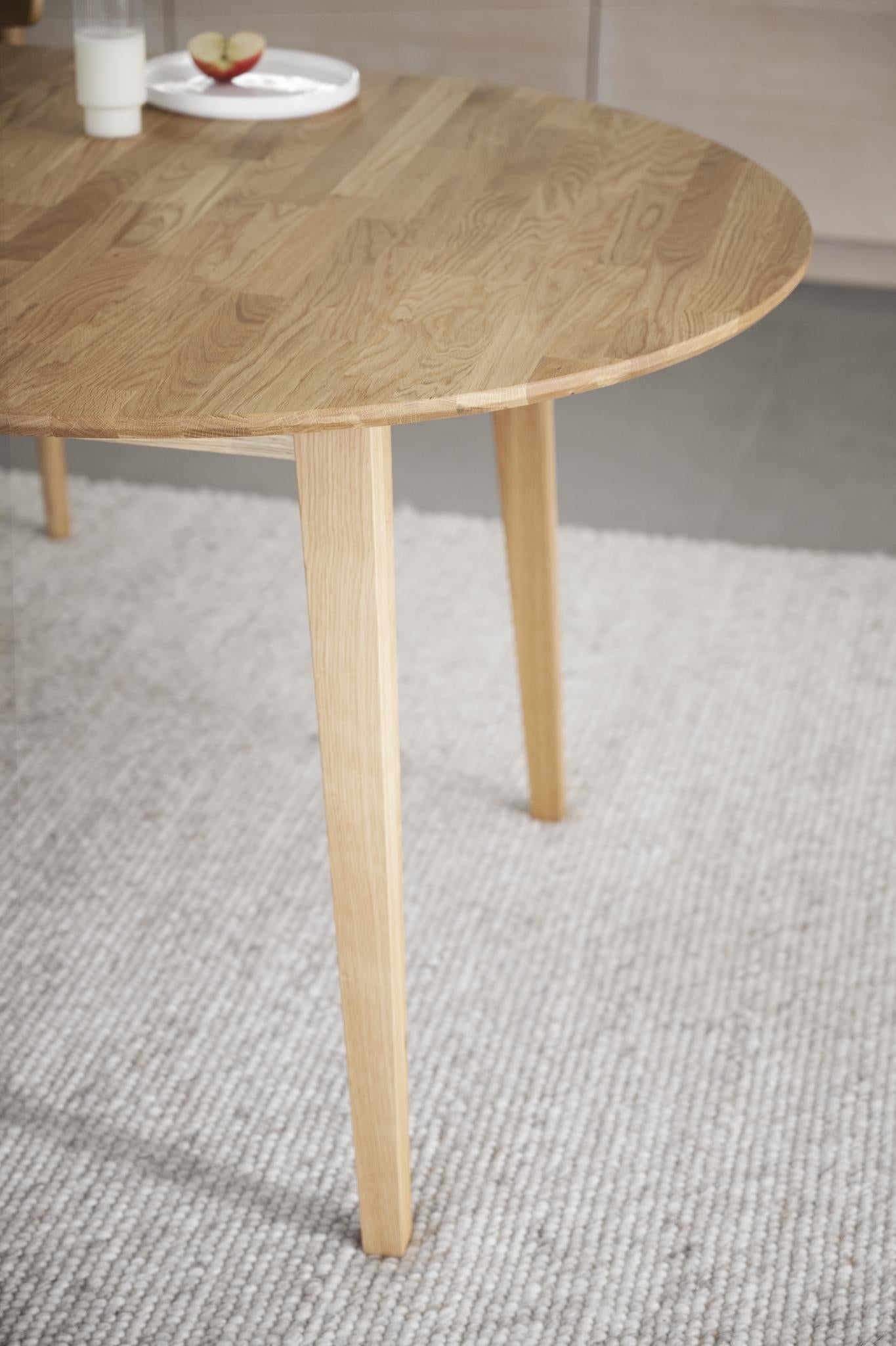 Massiv fingerskarvad ek i topp, massiv ek i hela längder i ben och sarg. Kullagrade metallutdragsskenor.