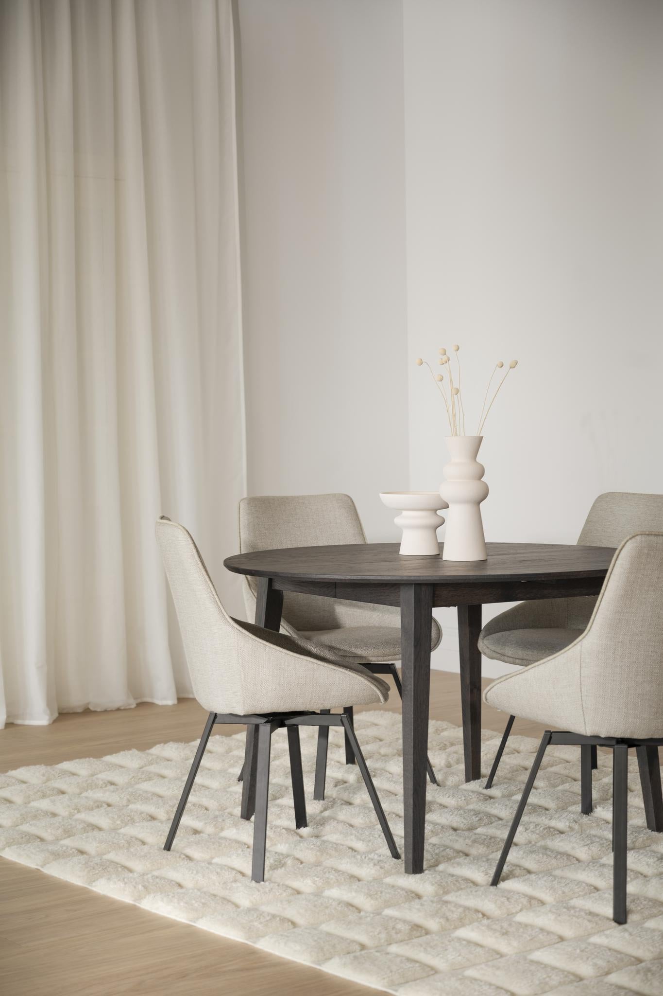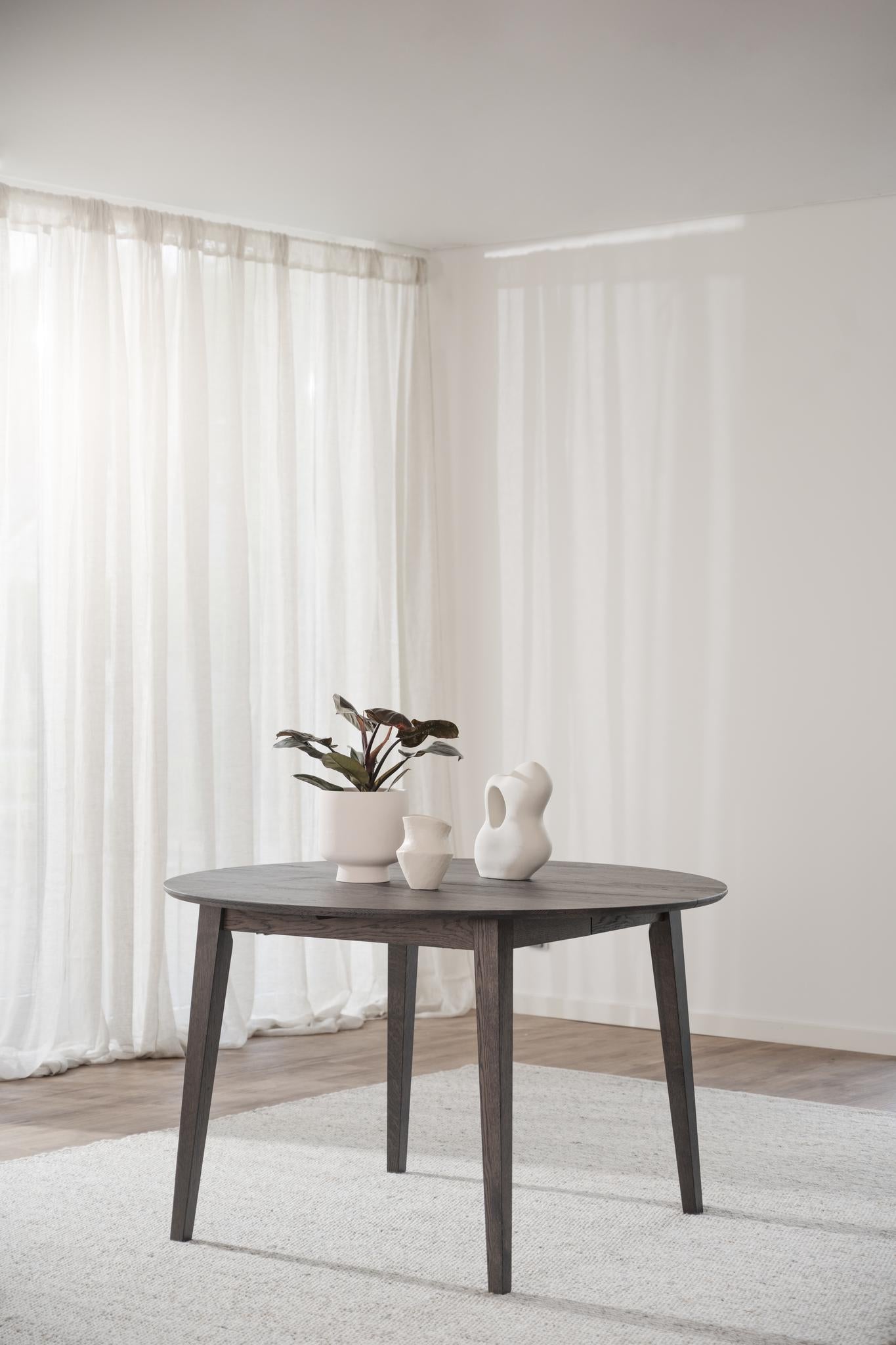 • Runt matbord i grå ek med fyra ben och utdragsskiva i skandinavisk design