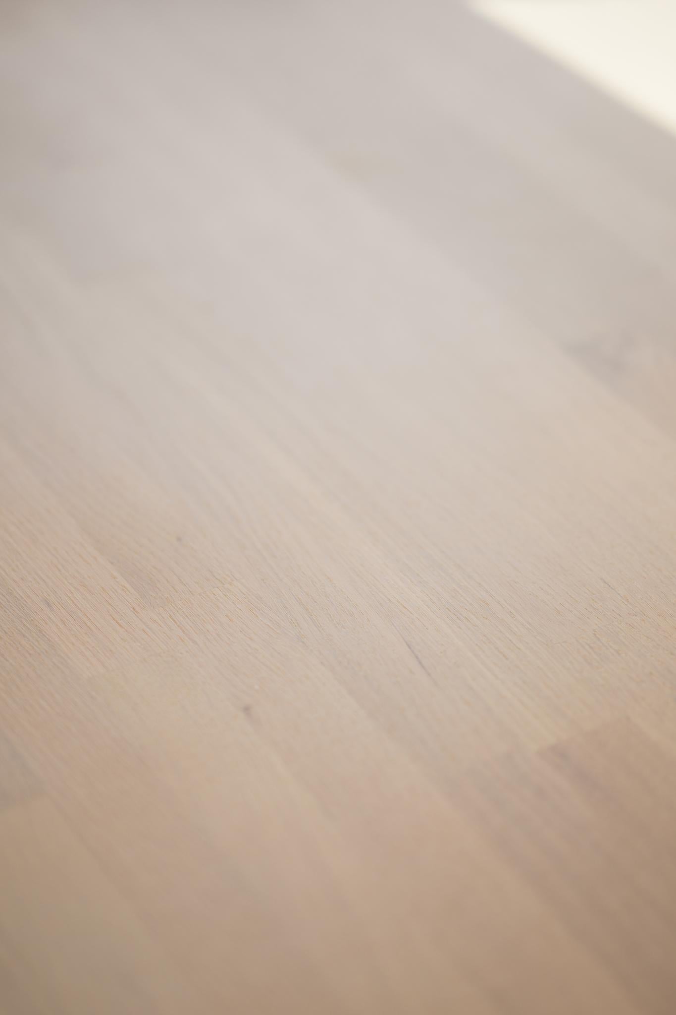 • Ljust trägolv i ek med naturlig struktur och matt yta i närbildsvy