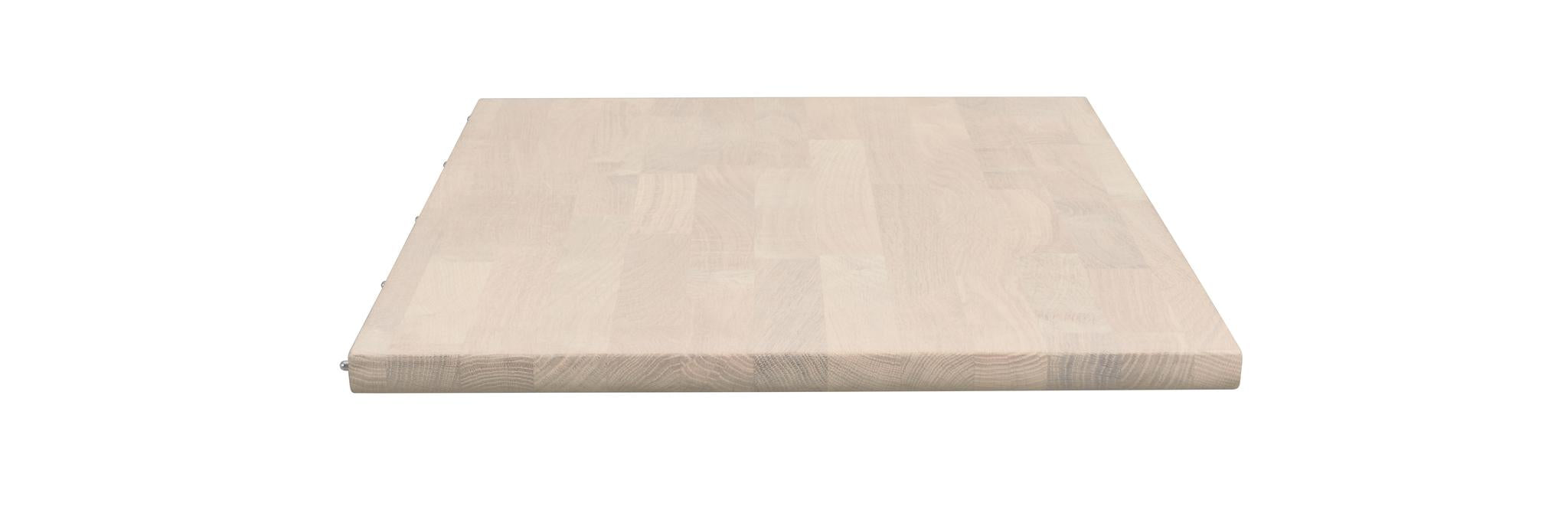 • Bordsskiva i massiv ek med naturlig trästruktur, ovanifrån sedd mot vit bakgrund