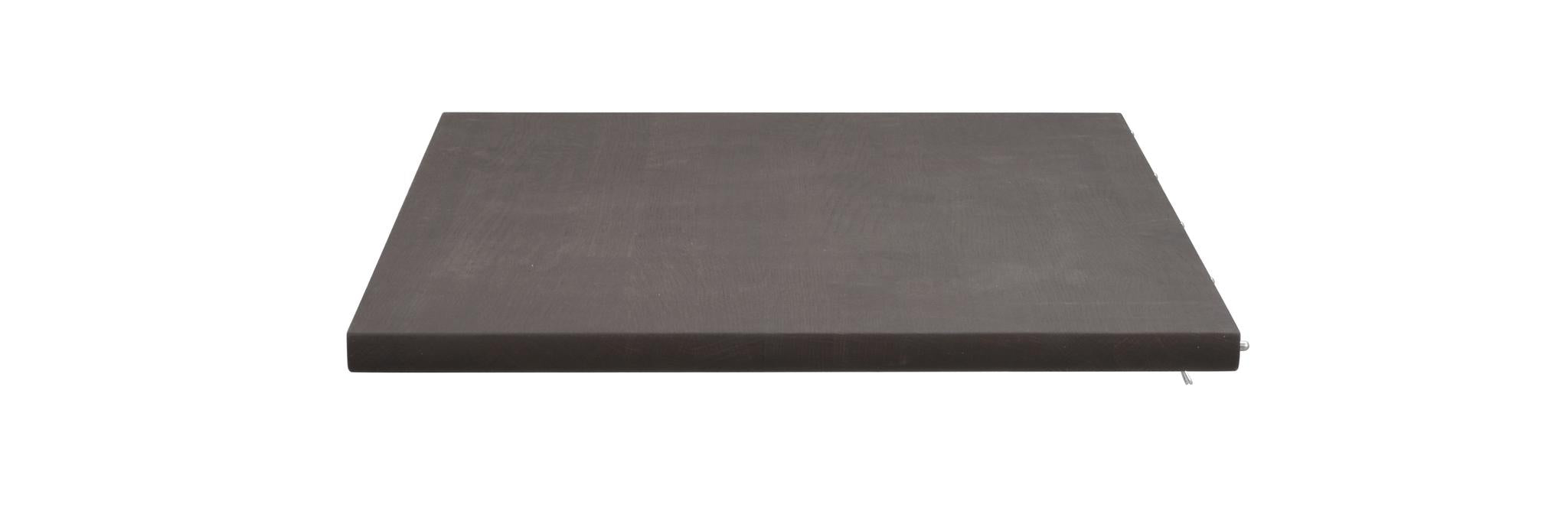 • Grå träskiva i rektangulär form, sedd från sidan mot vit bakgrund