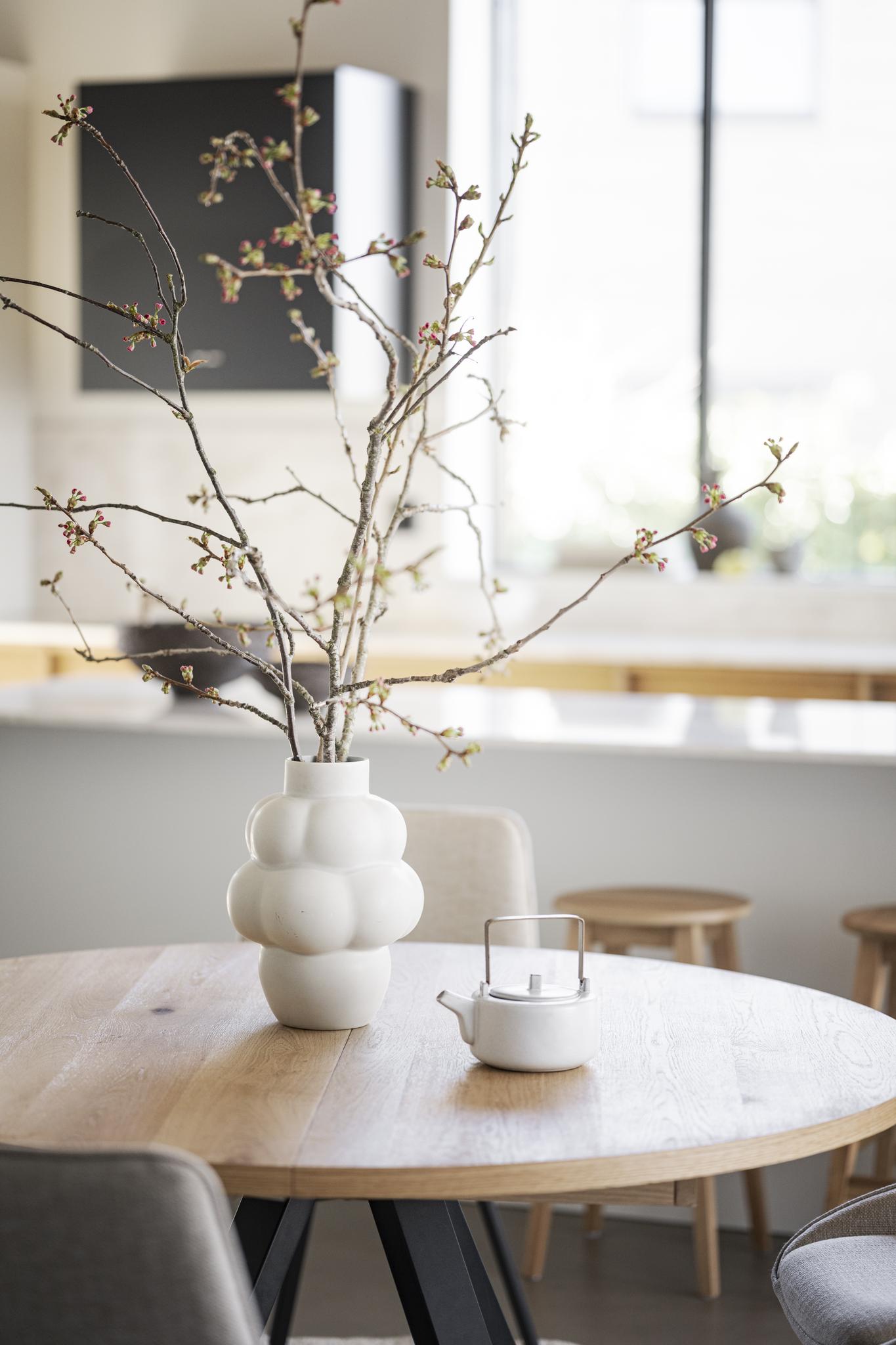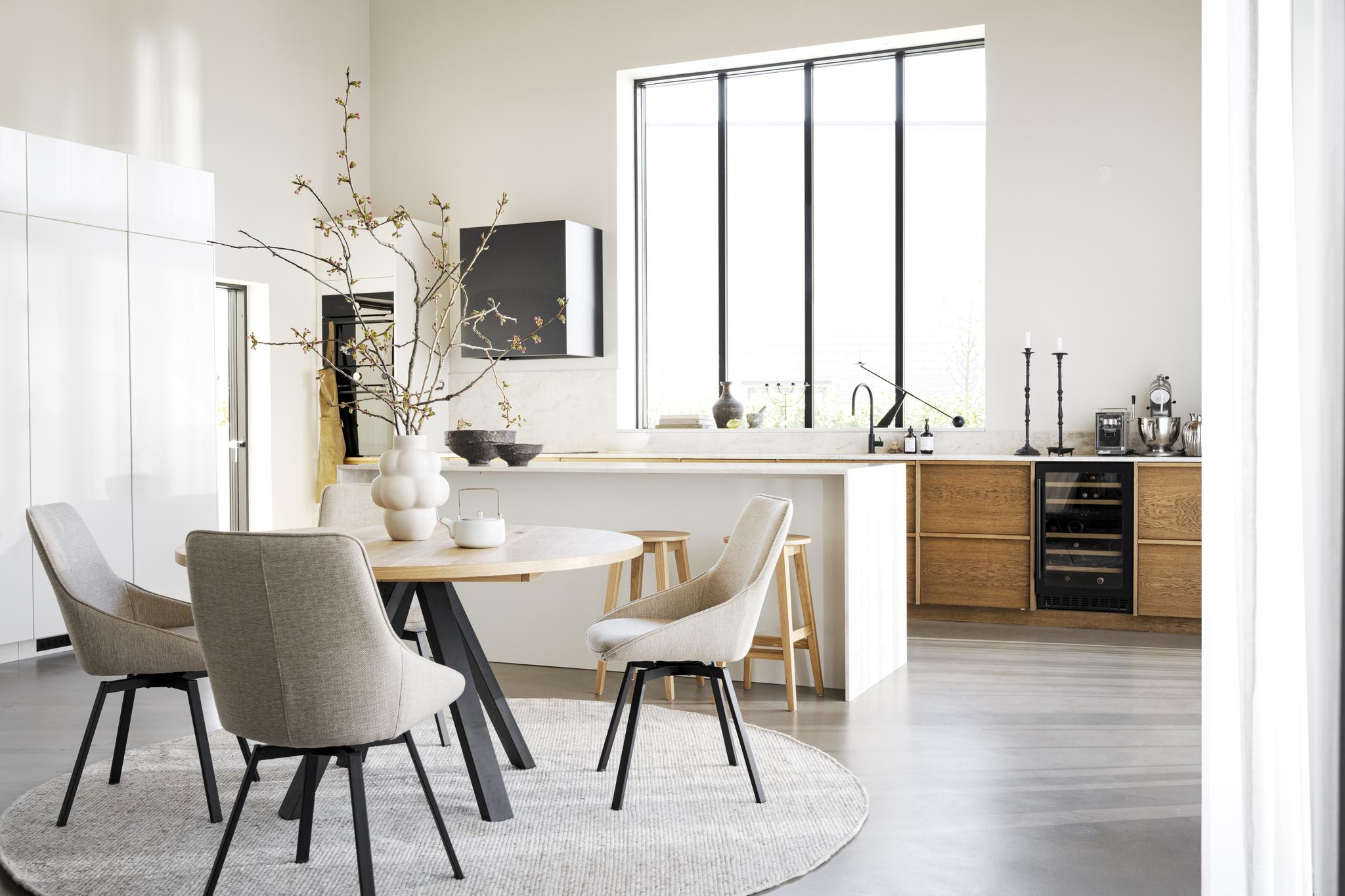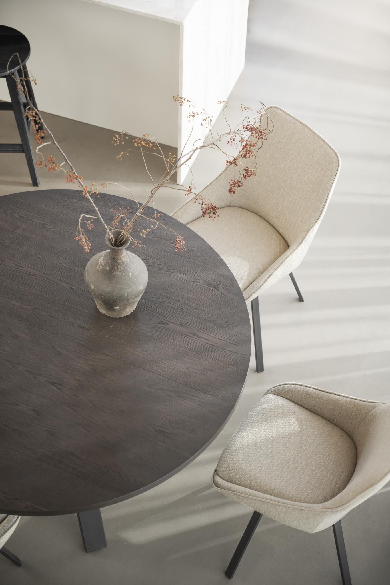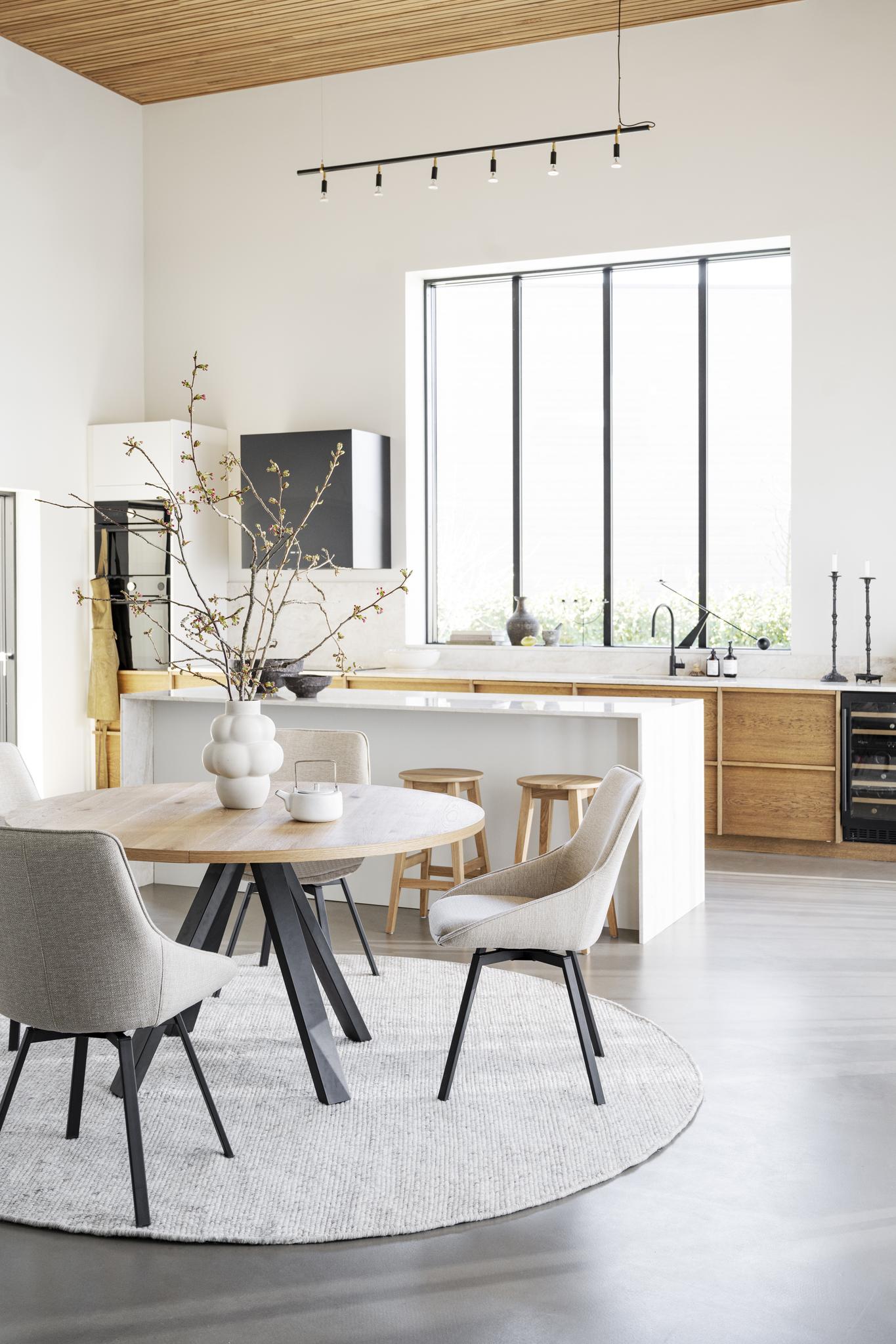 Maddock är ett praktiskt och förlängningsbart runt matbord med bordsskiva av FSC®-certifierad brunoljad ek och svarta pulverlackerade metallben. Matbordet blir blickfånget i rummet och förmedlar en stabil och stilsäker känsla. Skapa gemenskap och utrymme för fler genom att köpa till 1 eller 2 iläggsskivor och omvandla det till ett stort ovalt bord. Tack vare att trä med synliga kvistar har tagits tillvara i tillverkningen så har varje bord en unik träkänsla. Bordsskivan är semimassiv och det innebär att toppen består av 3 mm massiv ekfaner, vilket gör den mycket hållbar. Högkvalitativt och hållbart – detta är ett matbord att använda och älska i många år framöver. Finns även i oljad ek.
