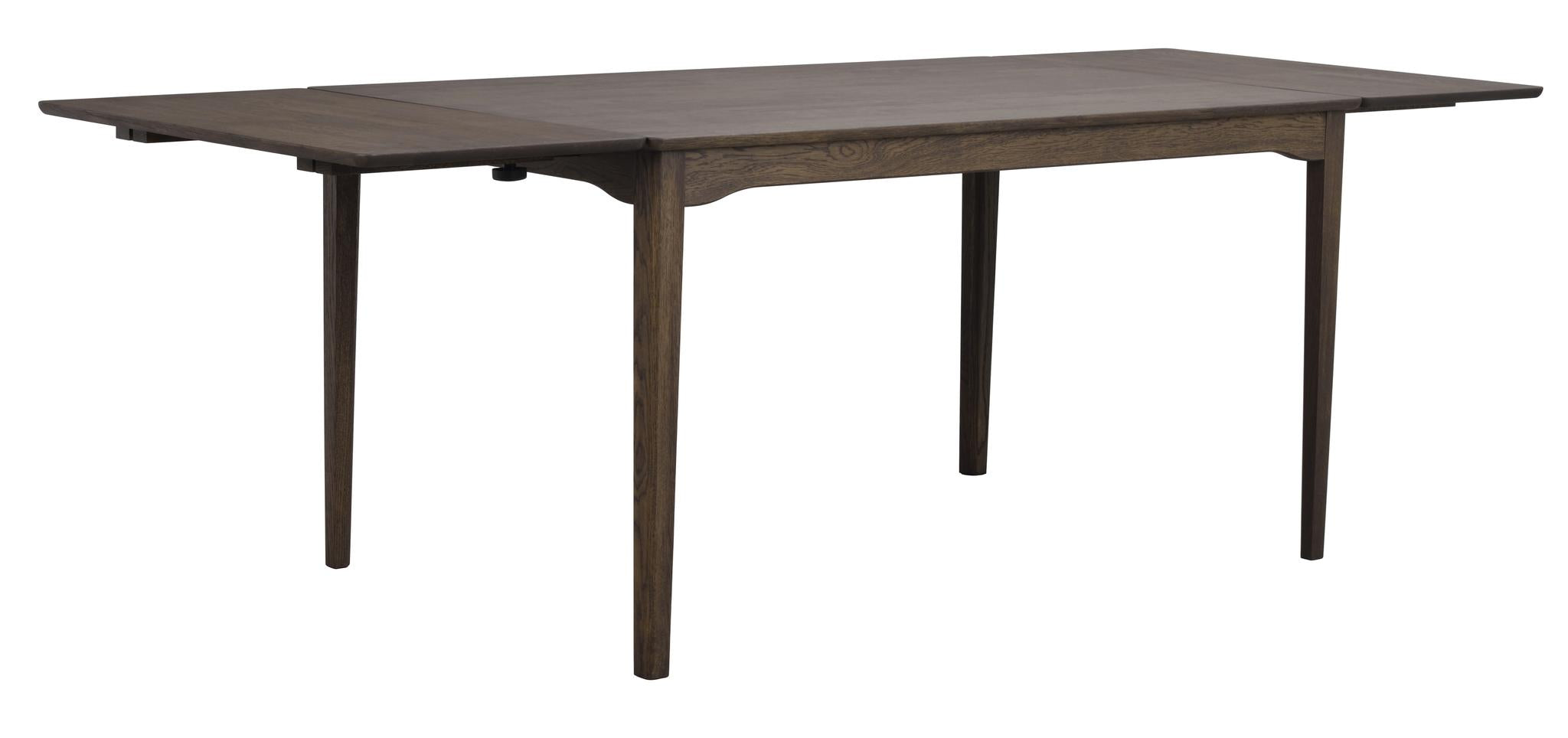 • Utdragbart matbord i mörkbrun ek med fyra ben och rektangulär bordsskiva
