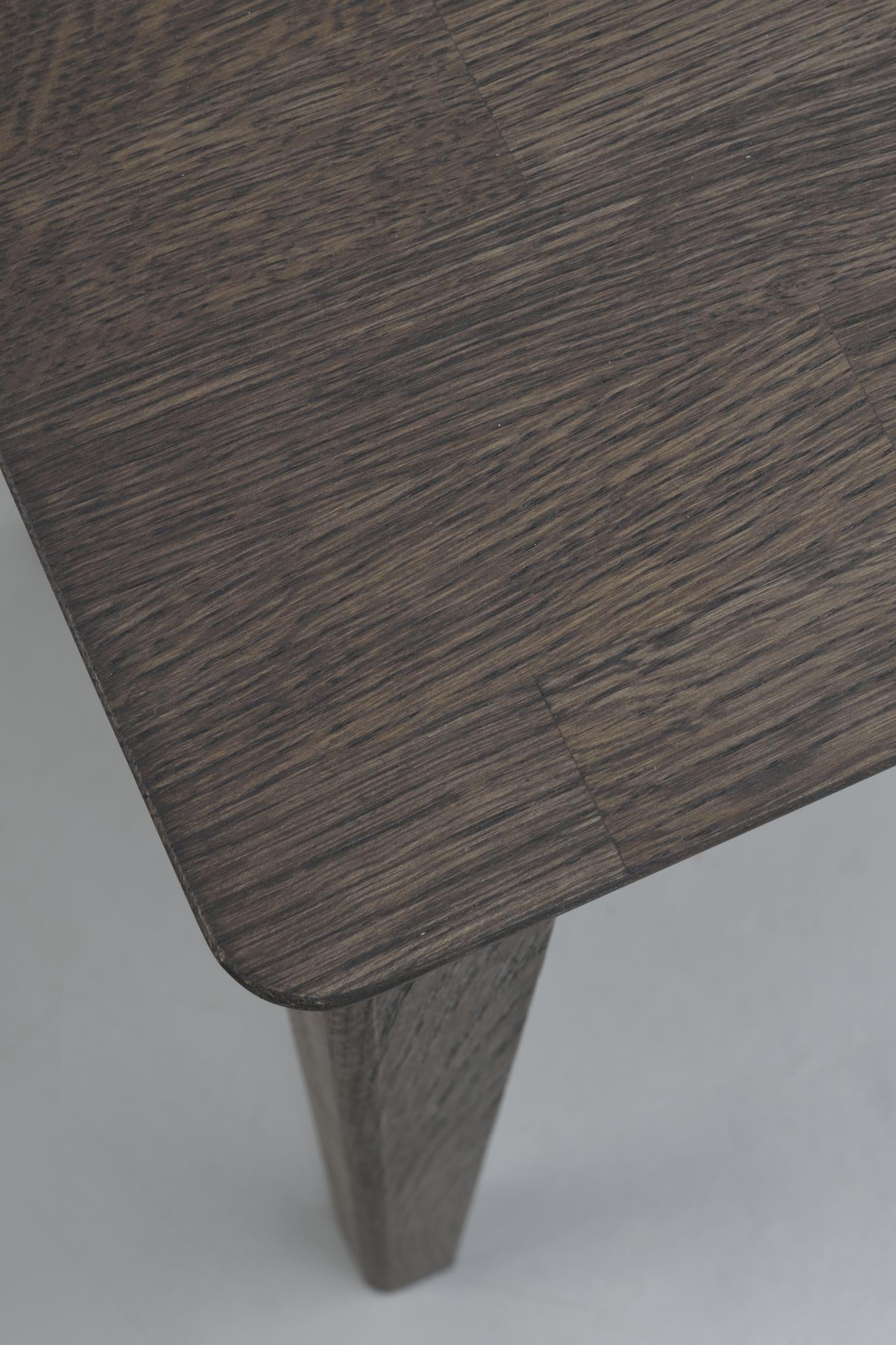 • Rektangulärt matbord i mörkbrun ek med fyra ben och enkel design