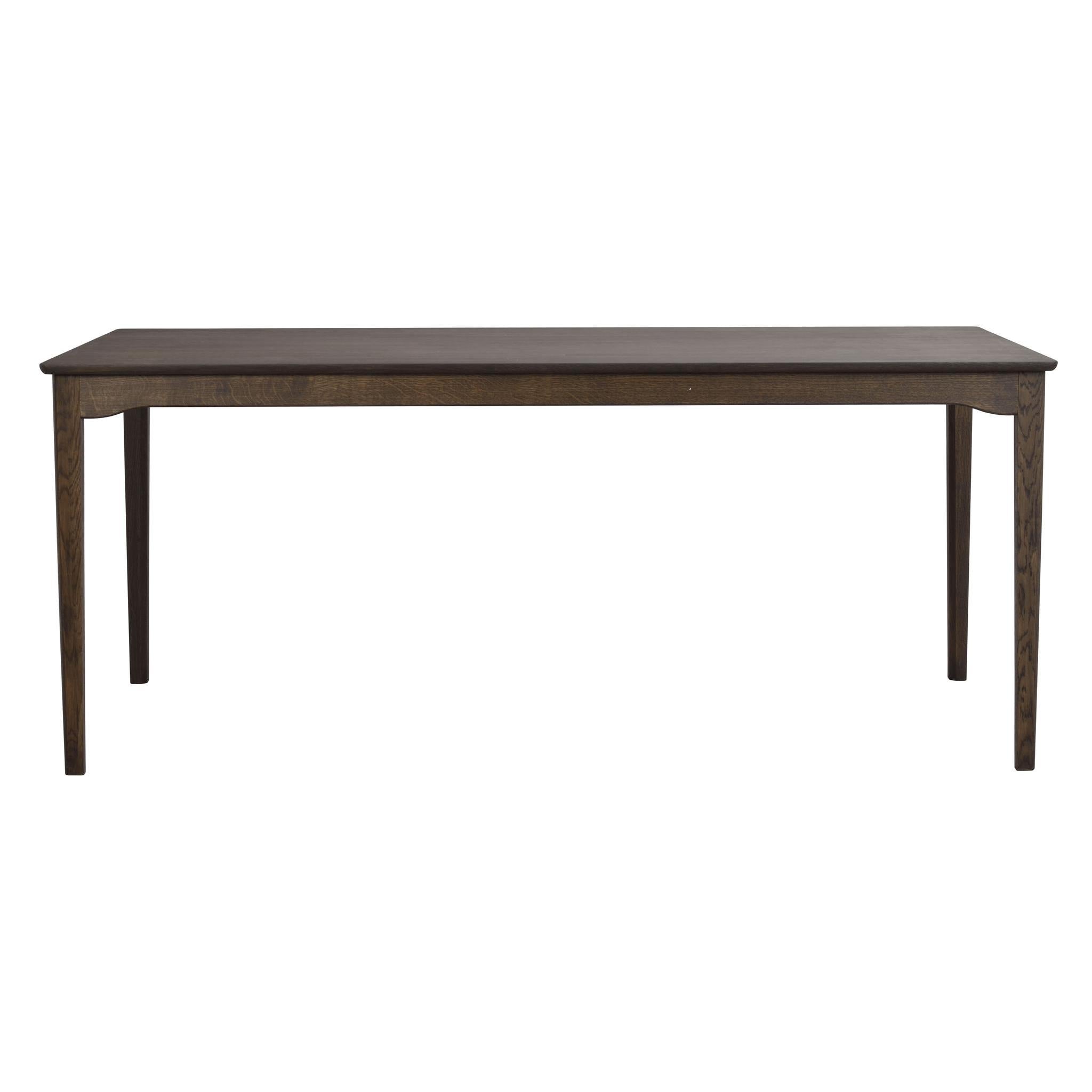 • Brunt träbord med raka ben och rektangulär skiva i mörk finish