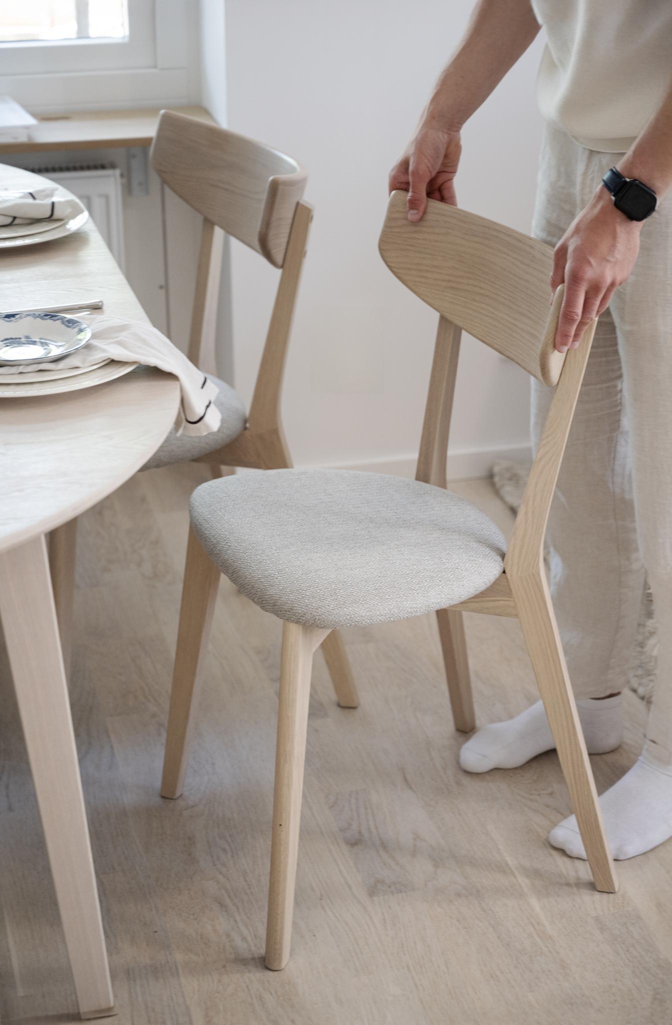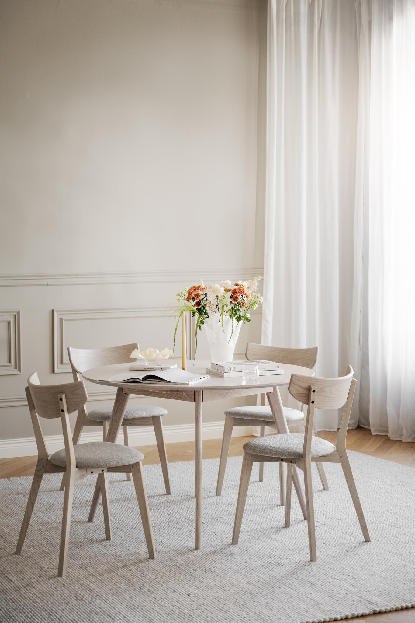 Stolen Ami i massiv vitpigmenterad ek med sits i slitstark gråbeige textil är en klassisk trästol i skandinavisk stil. Den nätta och tidlösa designen gör Ami till en av Rowico Homes mest populära stolar genom tiderna. Dessutom är stolen FSC®-certifierad vilket innebär att allt trä kommer från ett ansvarsfullt skogsbruk som tar hänsyn till människor och miljö. Finns i flera färger.