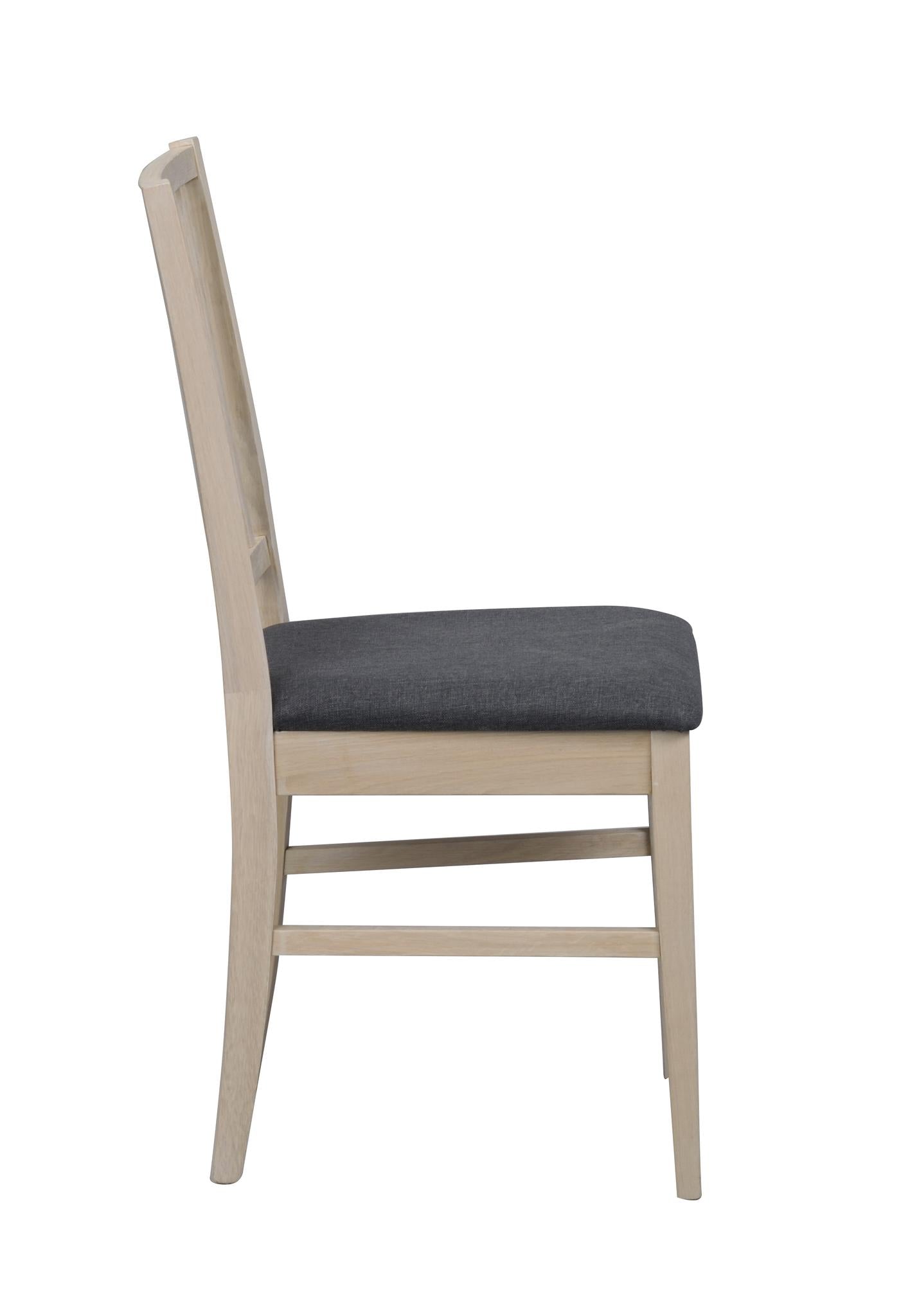 Trästol i tidlös och skandinavisk design. Stolen är i oljad ek med dekorativ stoppad sits med grått tyg. Levereras monterad. Stolen ingår i vår serie Filippa.