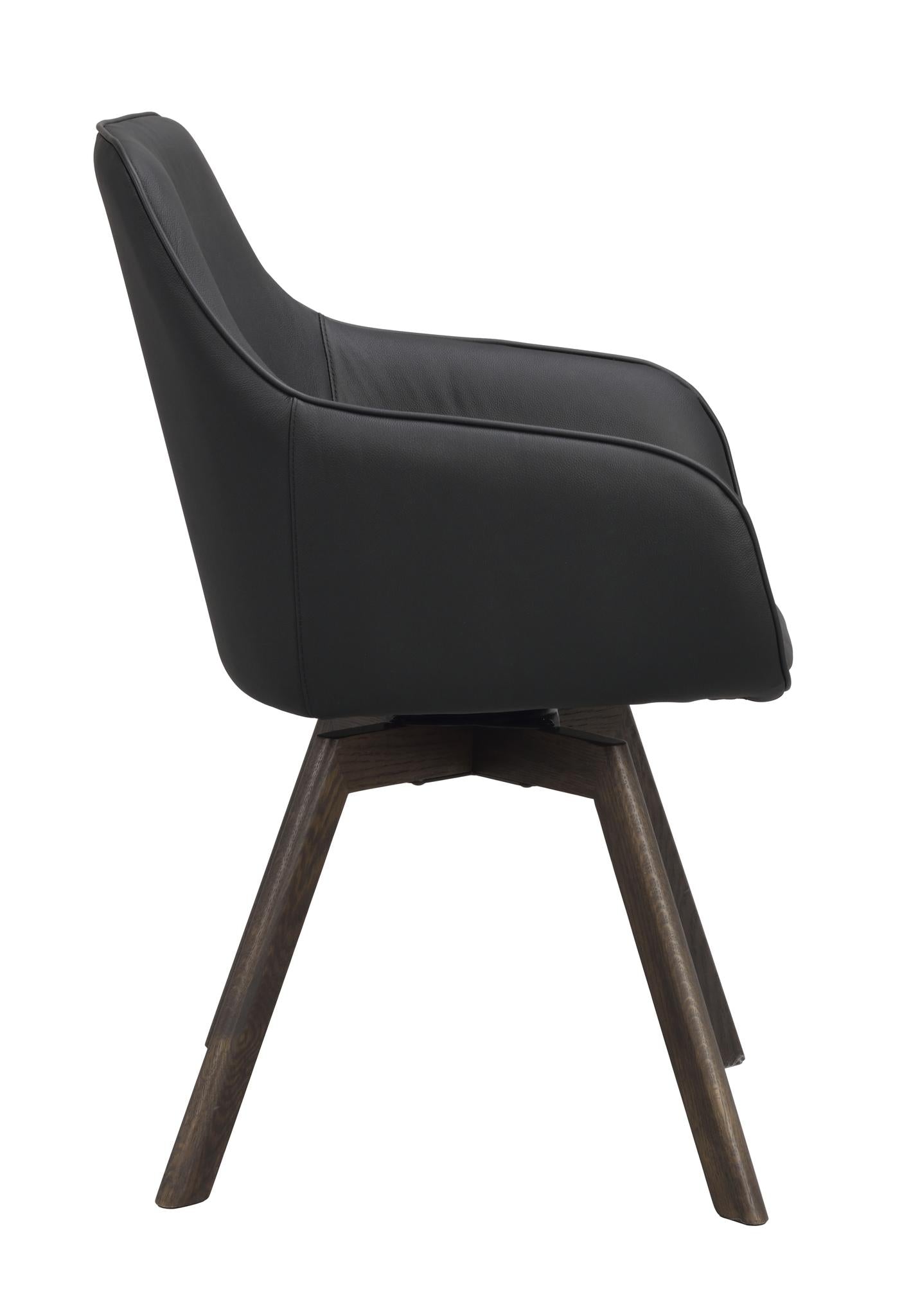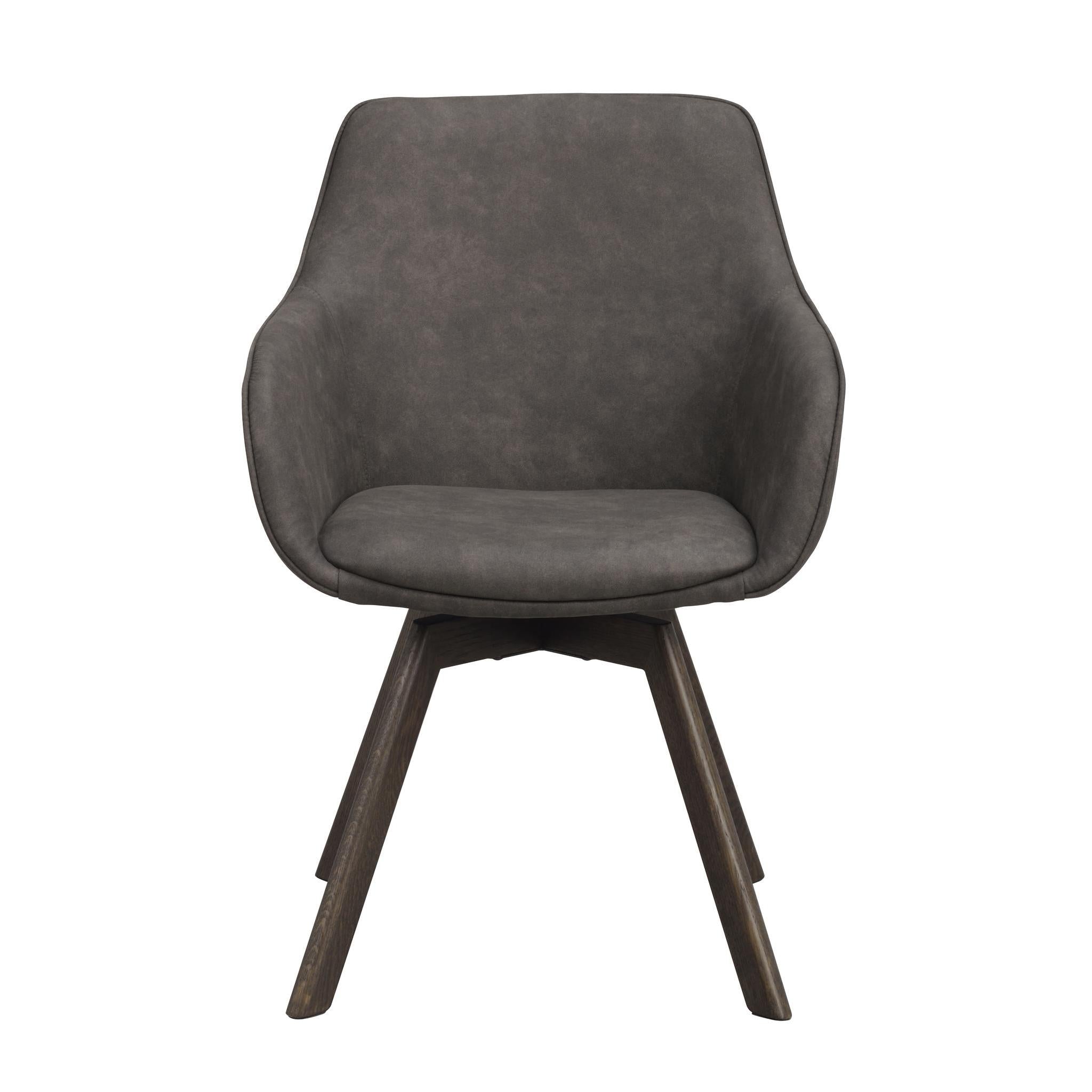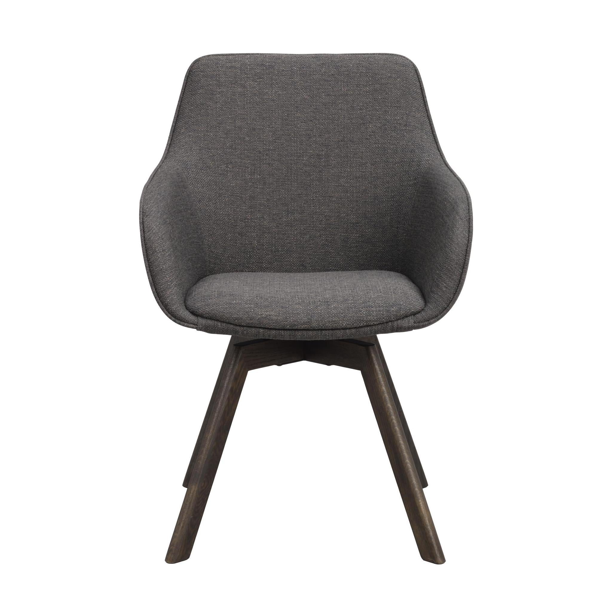 • Grå matstol med armstöd och träben i modern skandinavisk design med svängbar funktion