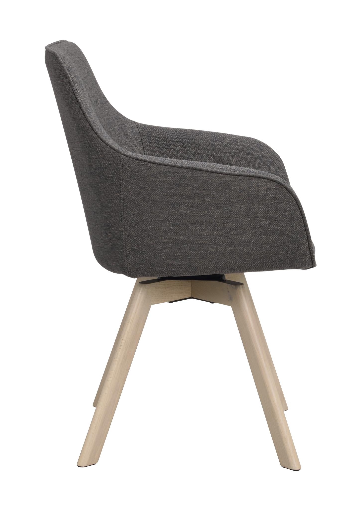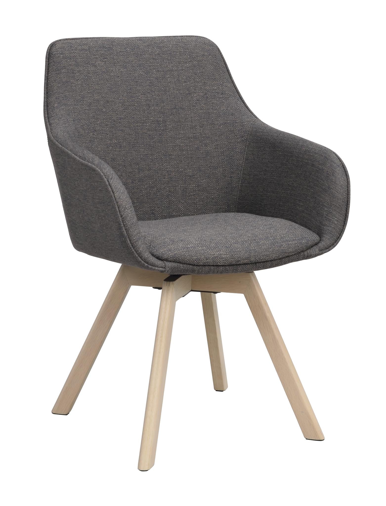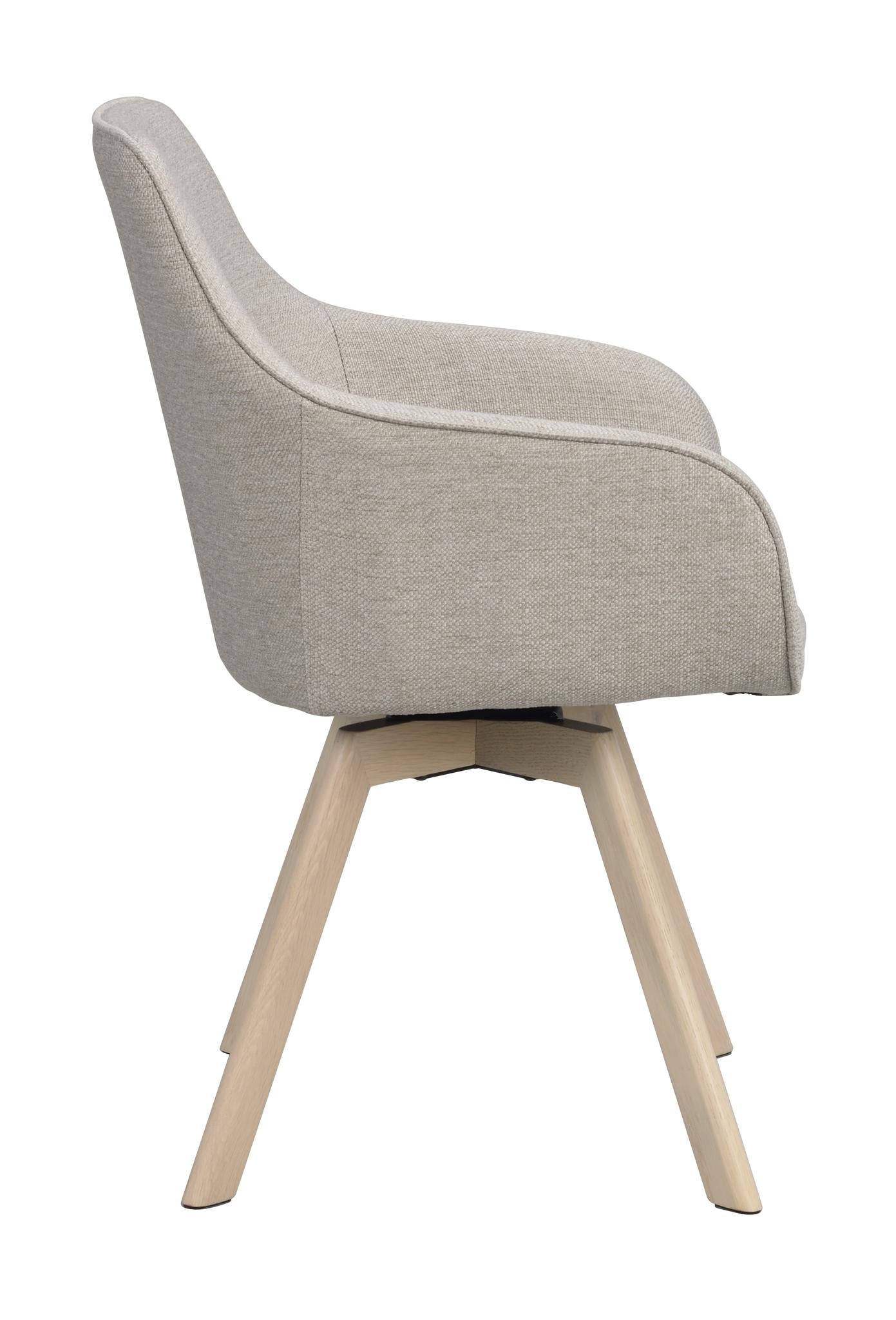 Sits i plywood med polyeterskum stoppning, Polypropylentyg, ben i massiv ek, med snurrfunktion.