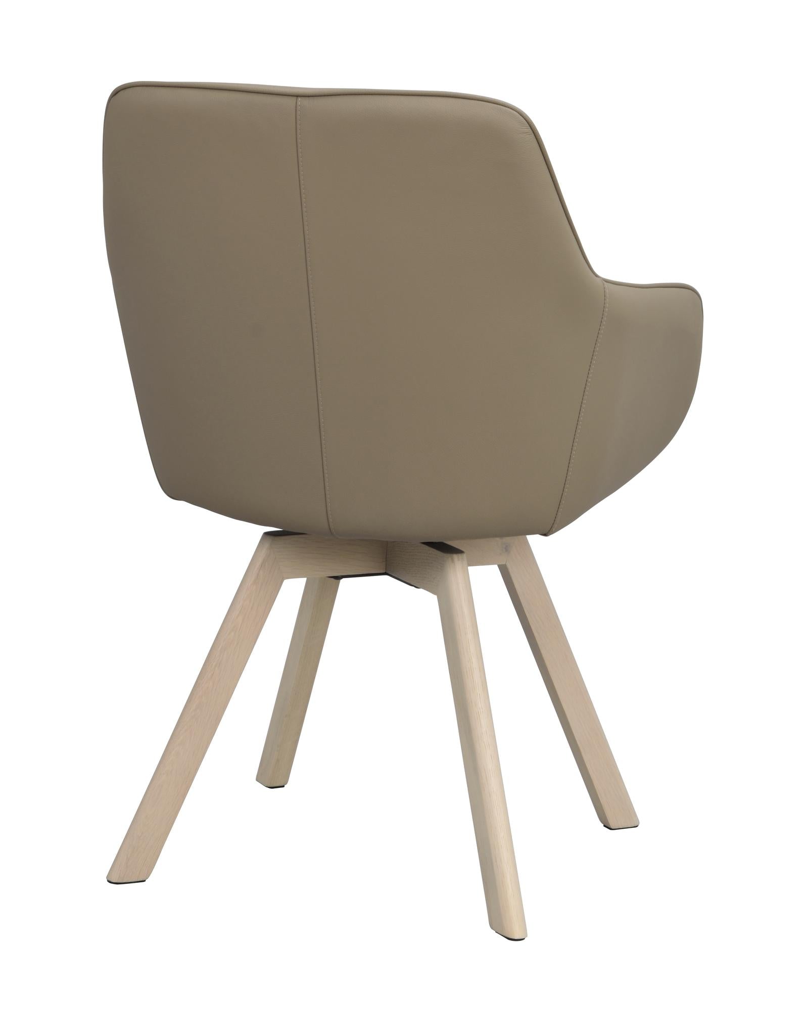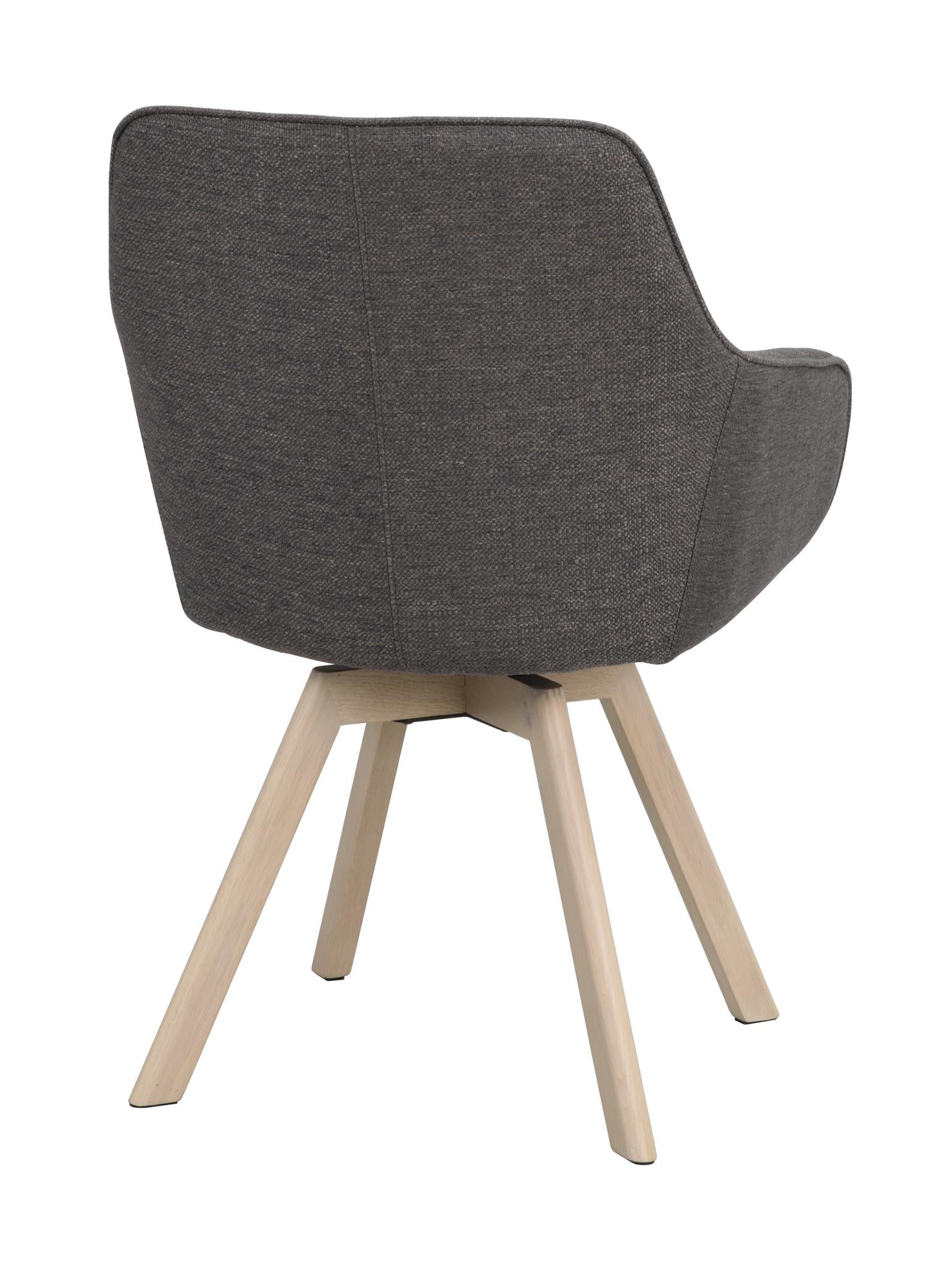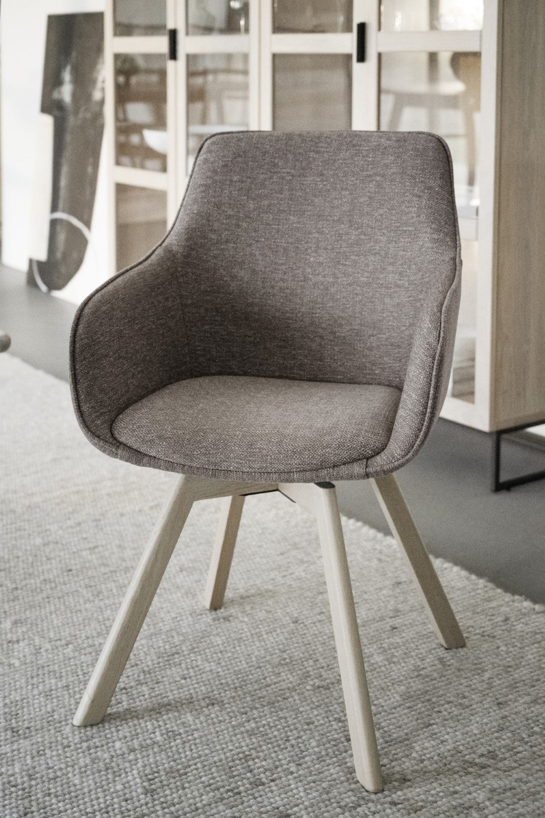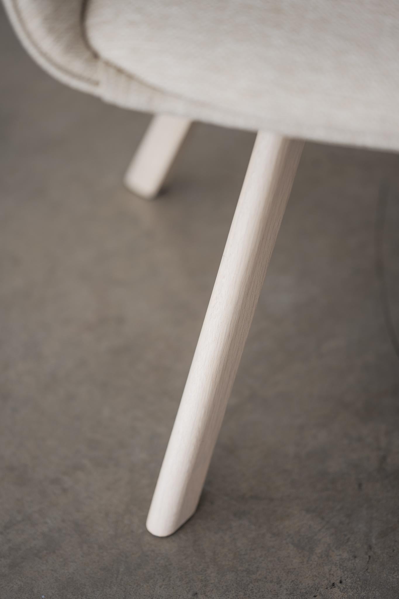 Sits i plywood med polyeterskum stoppning, Polypropylentyg, ben i massiv ek, med snurrfunktion.