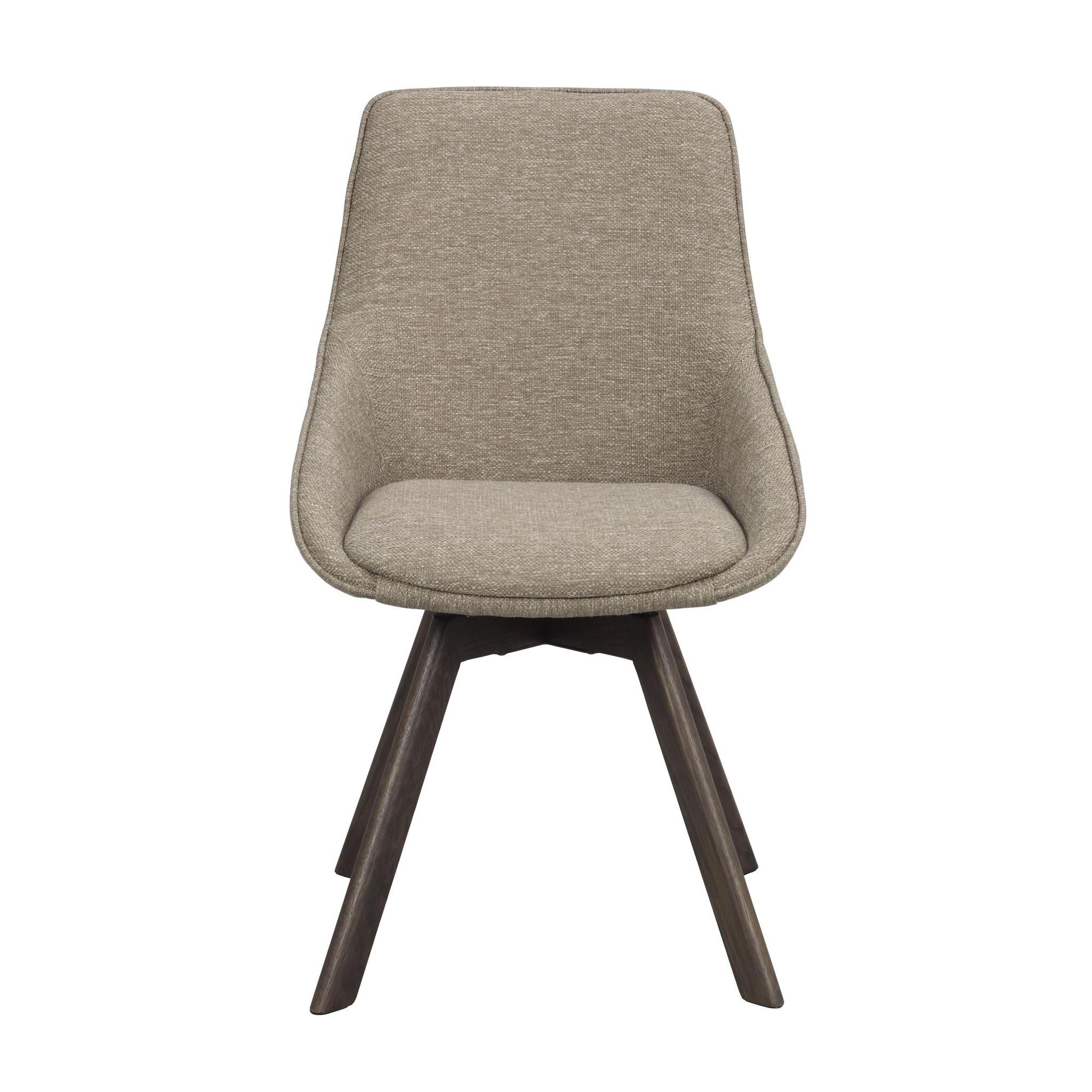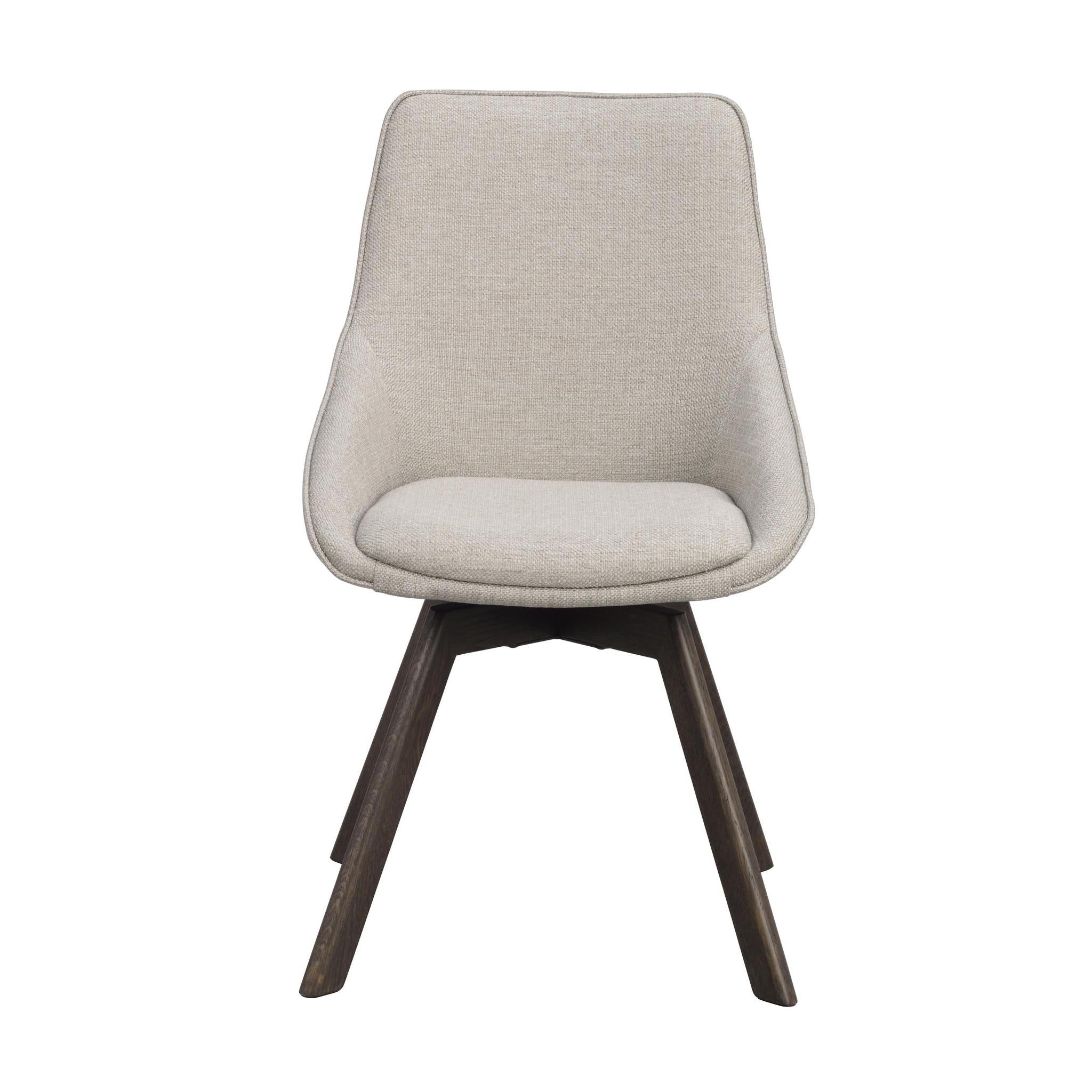 Populära Alison stol med träunderrede och snurrfunktion. Här syns den i ett tåligt beige tyg och med ben i brunlackad ek. Alison har en stoppad sits med hög sittkomfort i kupad design och ben med snurrfunktion i 360 grader. Stolen passar perfekt runt matbordet men även som udda stol till skrivbordet. Notera att färgen på tyget i vissa ljus upplevs som ljusgrå. Alison är FSC®-certifierad och finns även i andra jordnära färger.