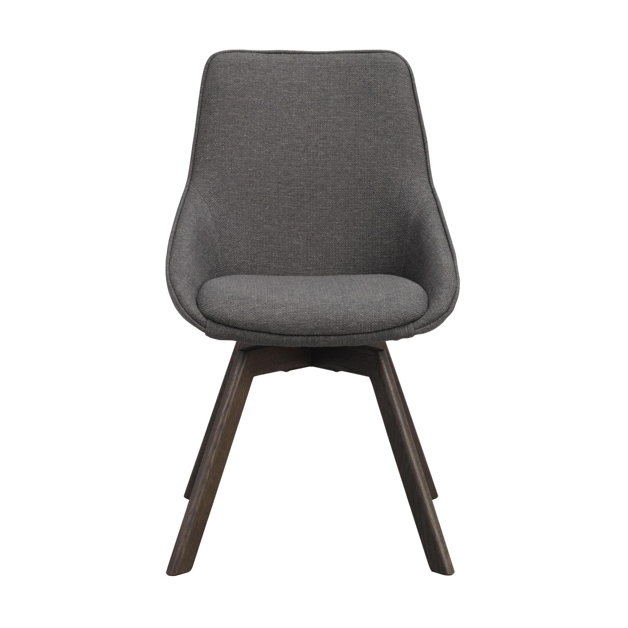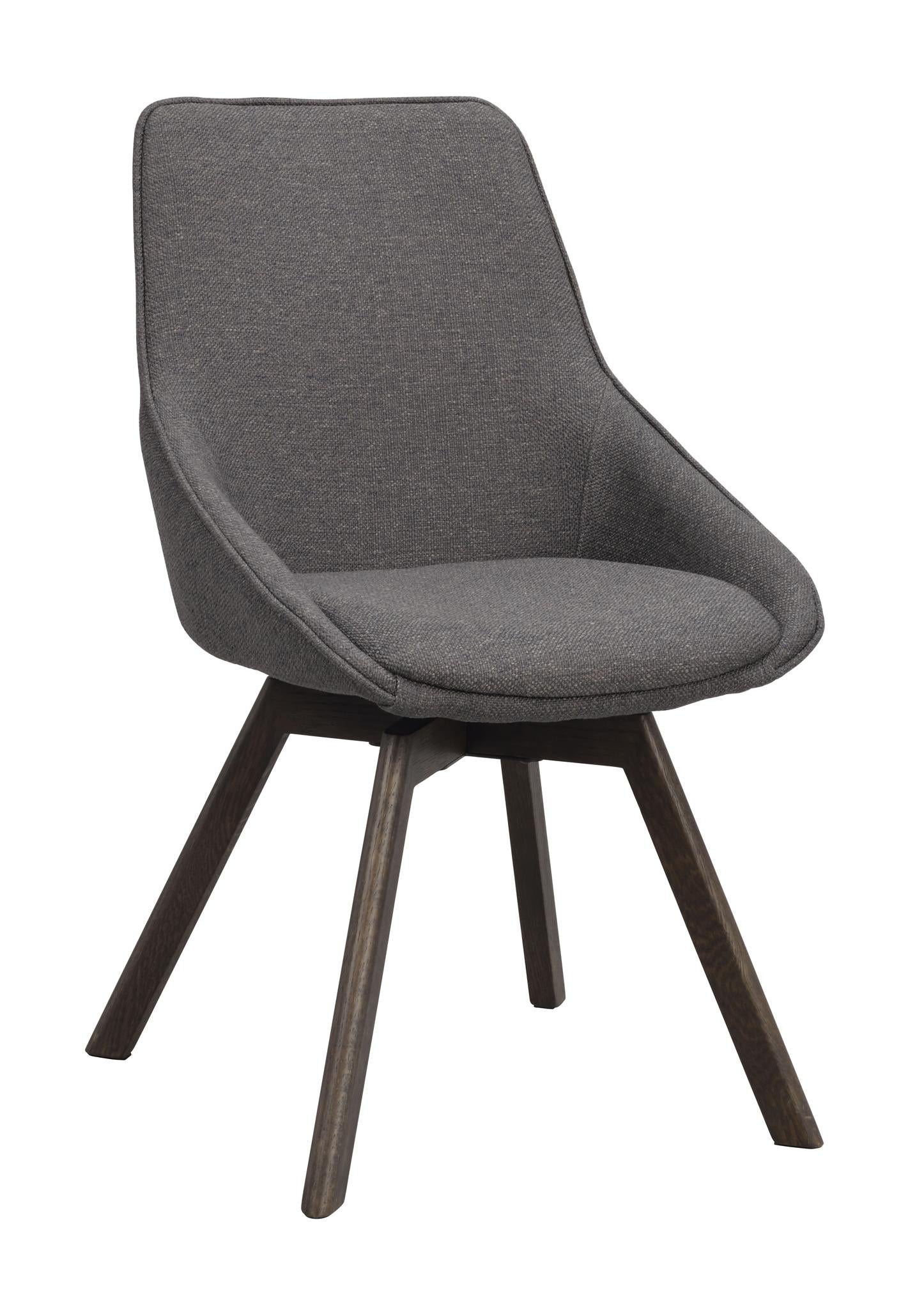 • Grå matstol med svartbetsade träben och svängbar sits, modern design med mjuk klädd rygg