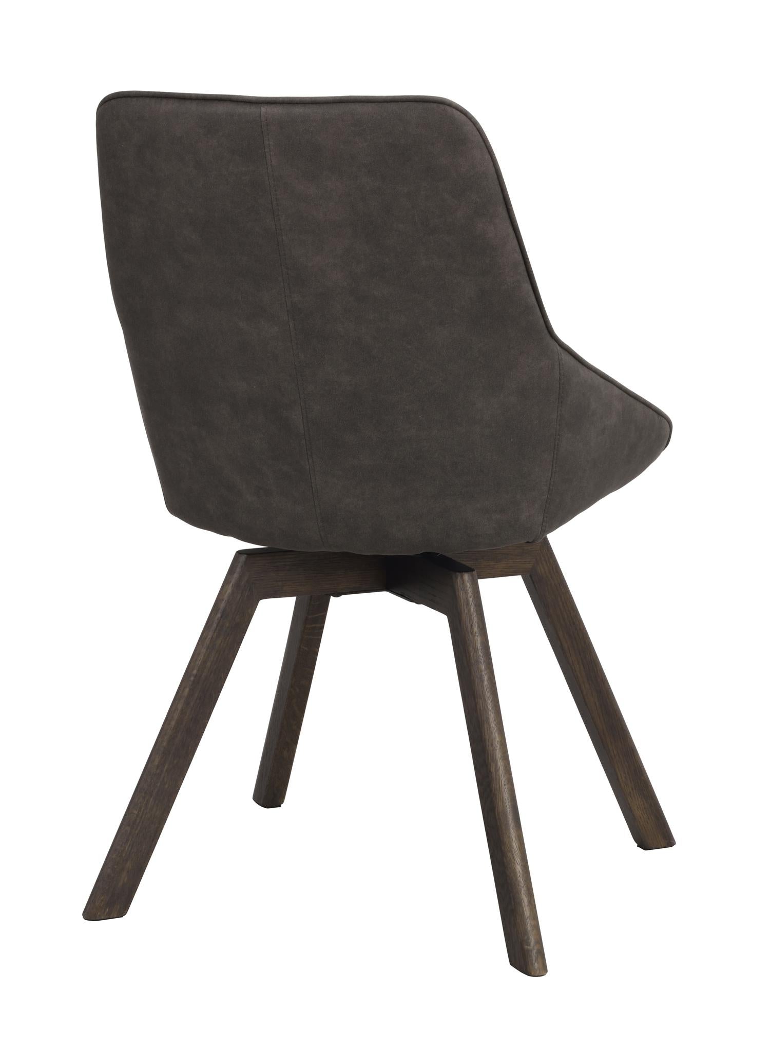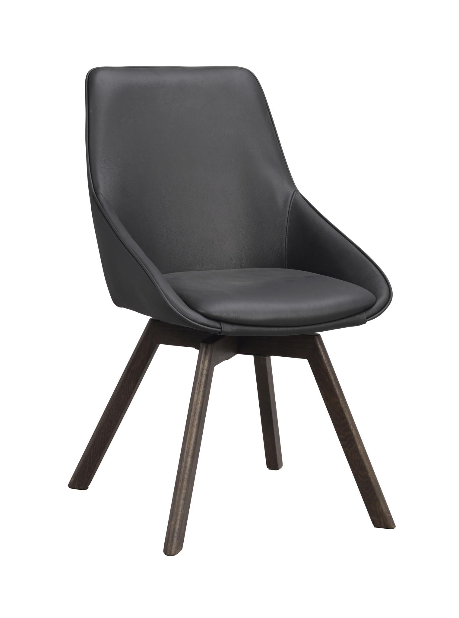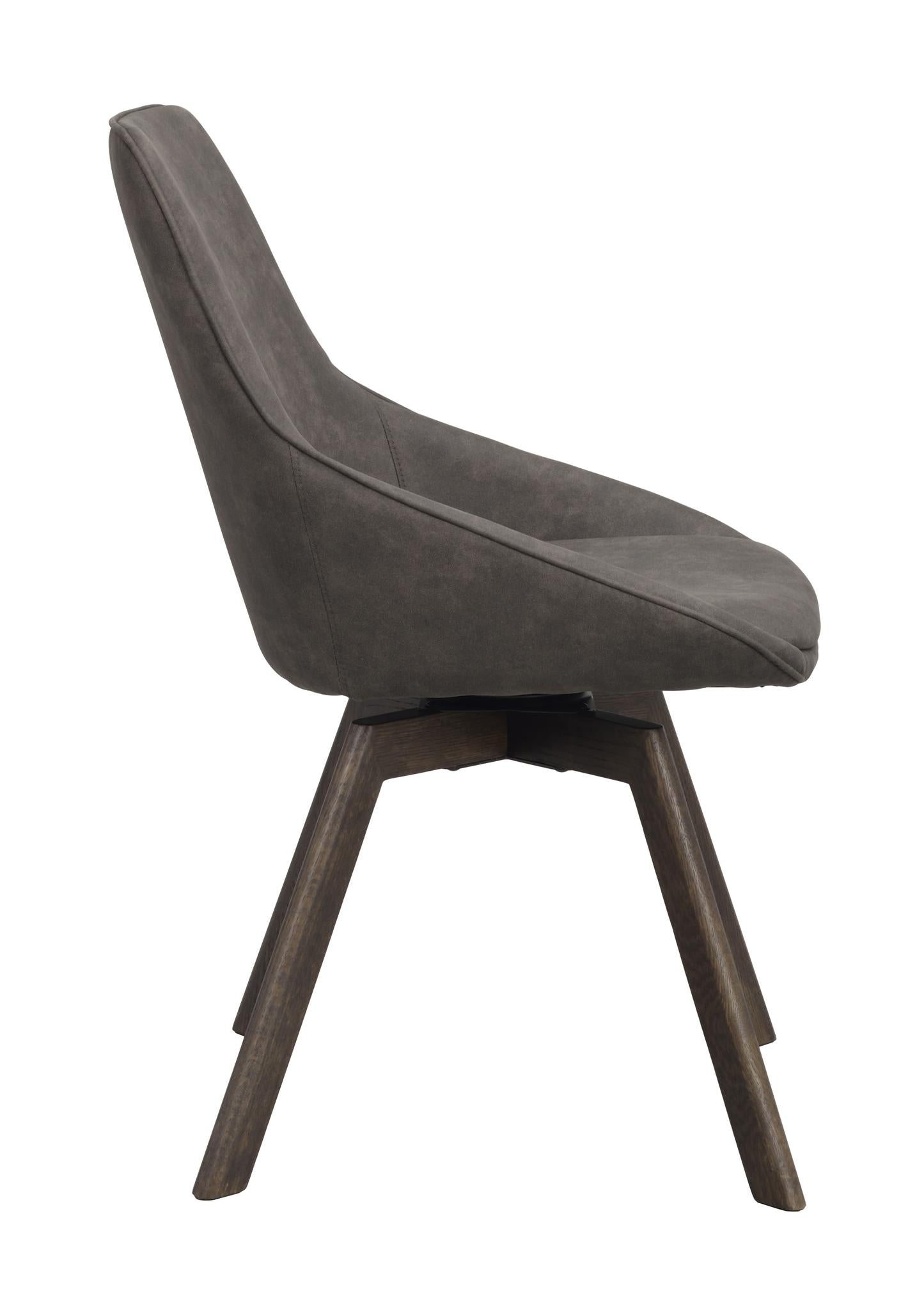 • Grå matstol i konstläder med mörkbruna träben och svängbar funktion