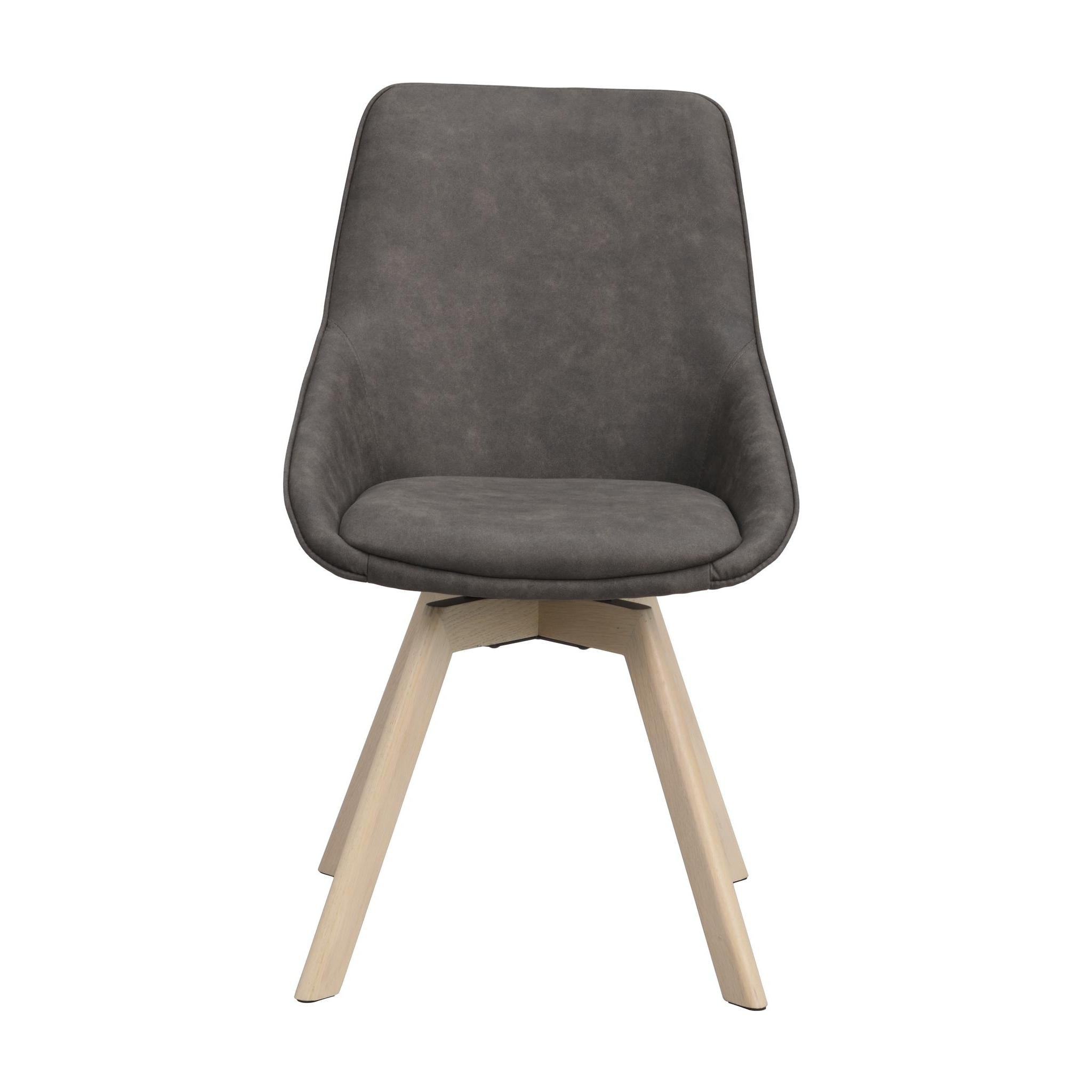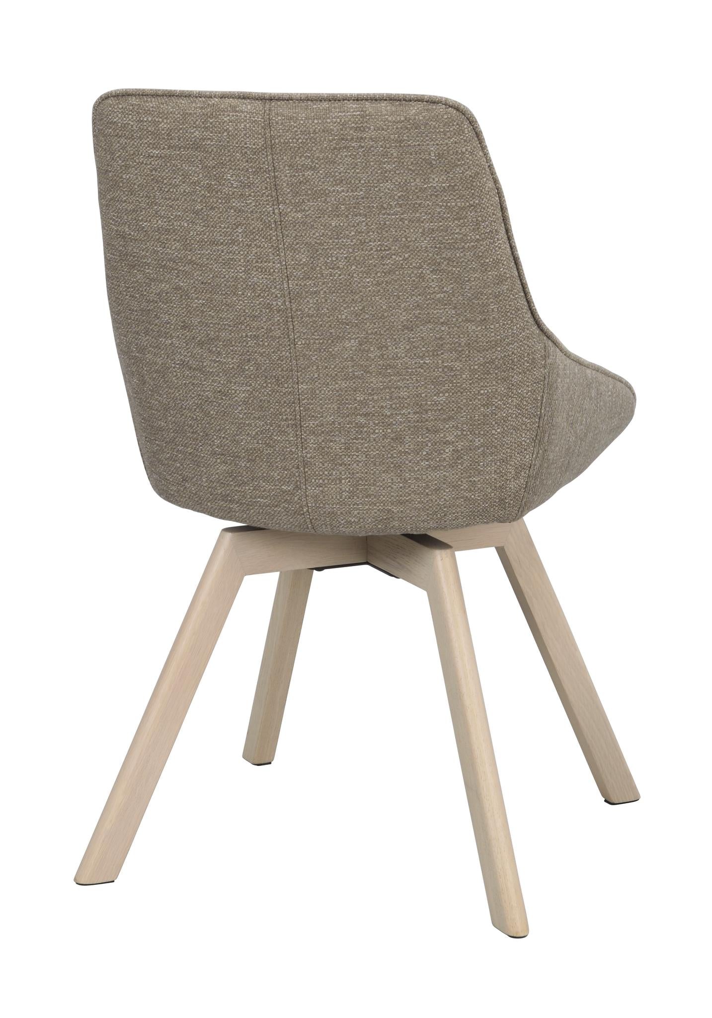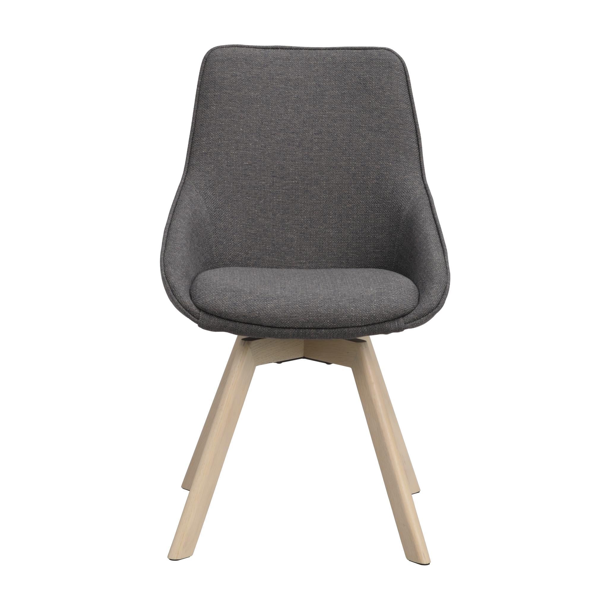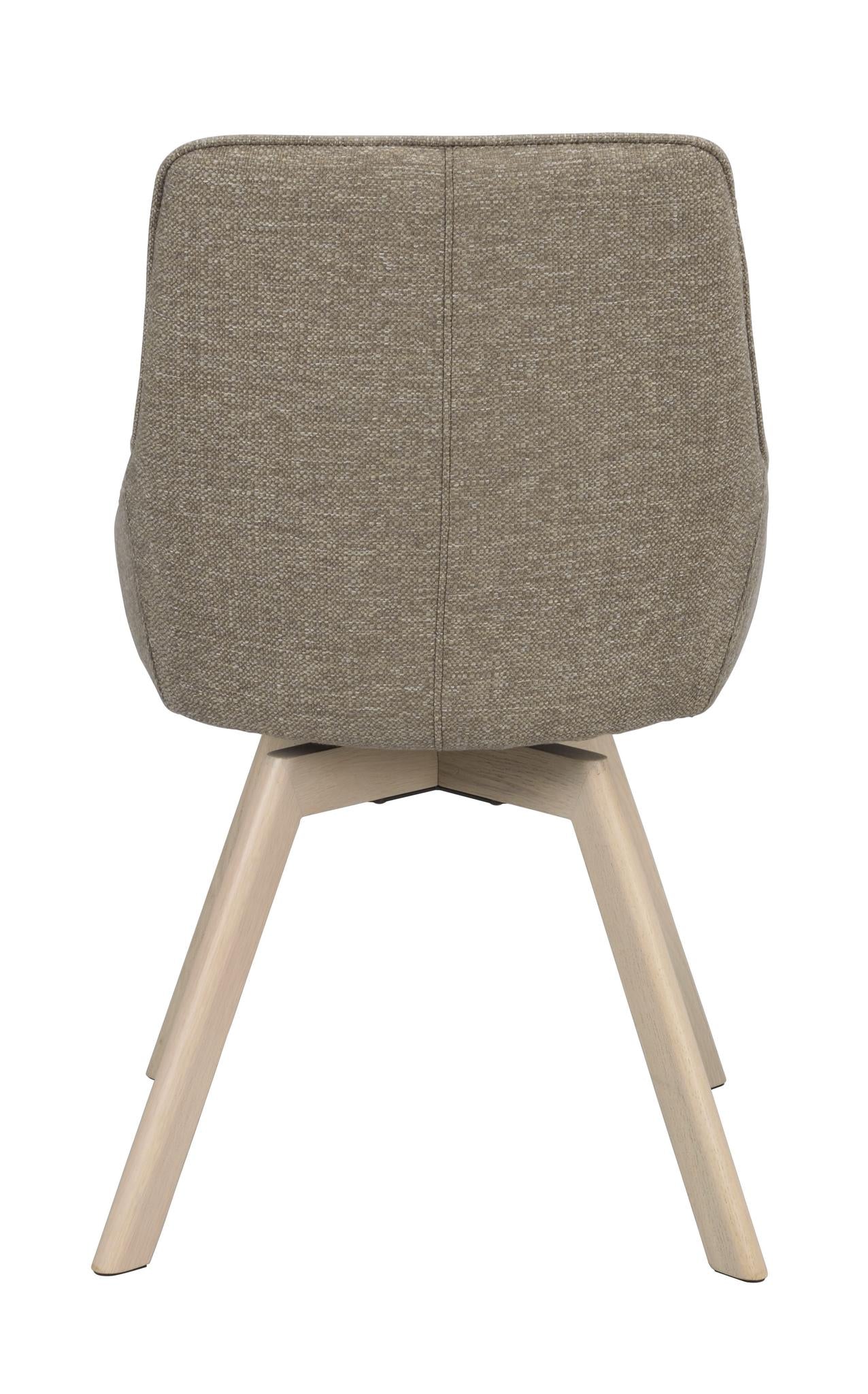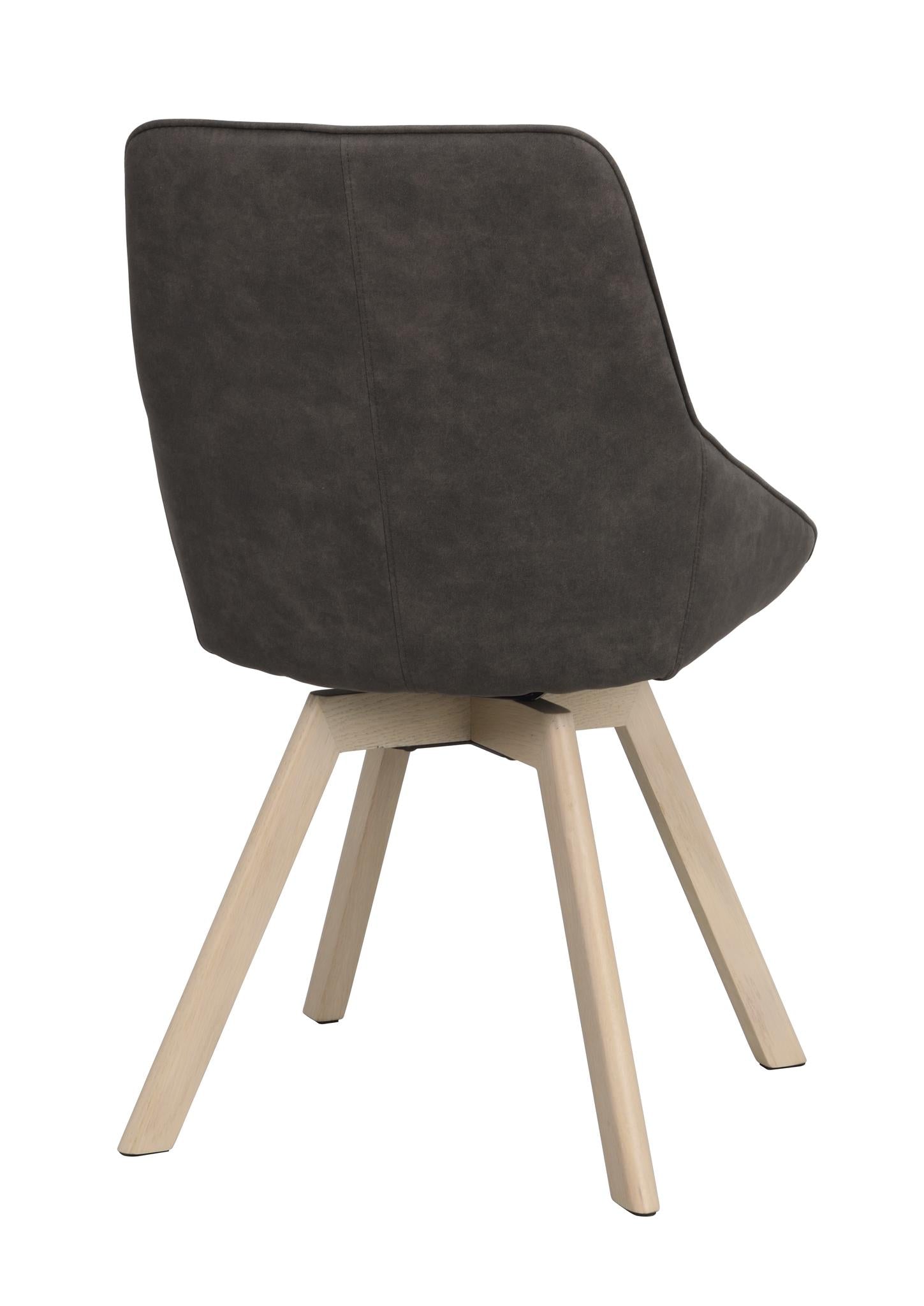 • Matstol med grå klädsel och ljusa träben, sedd bakifrån med svängbar funktion