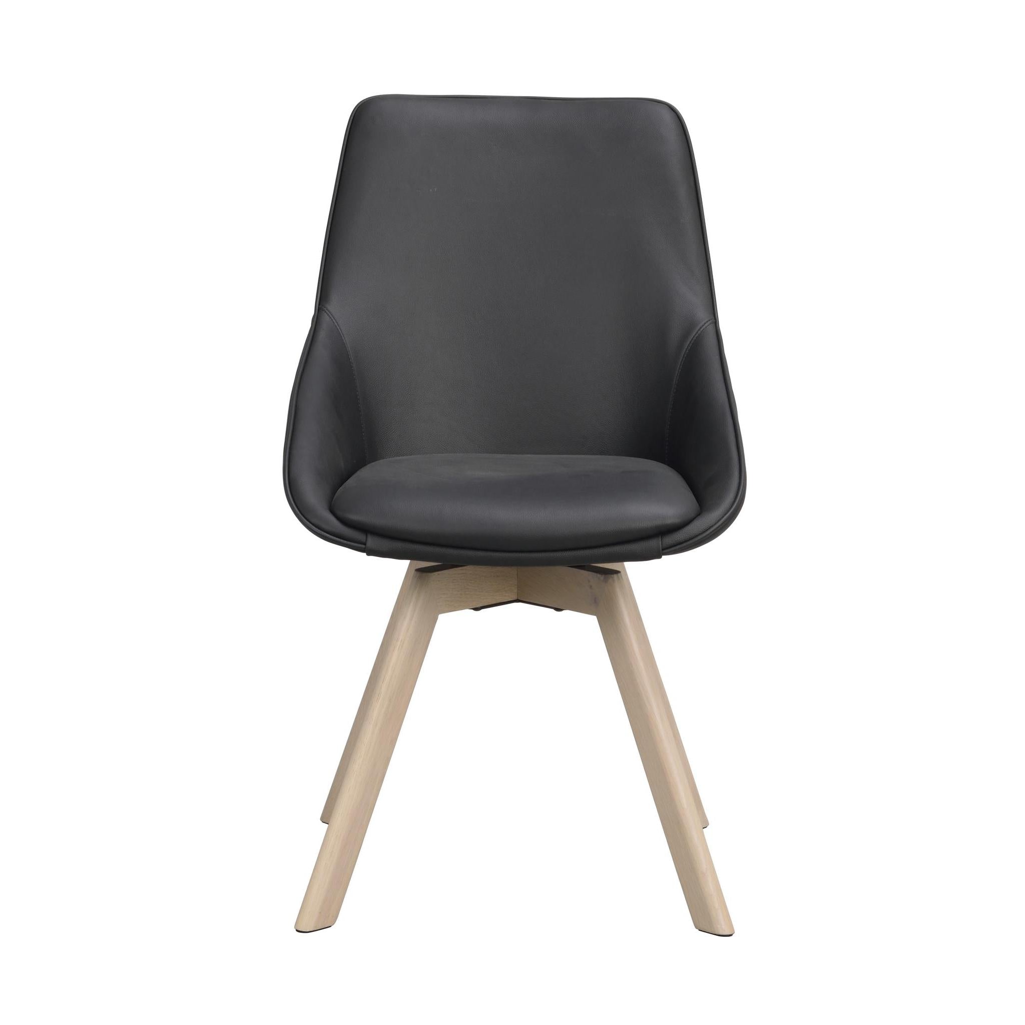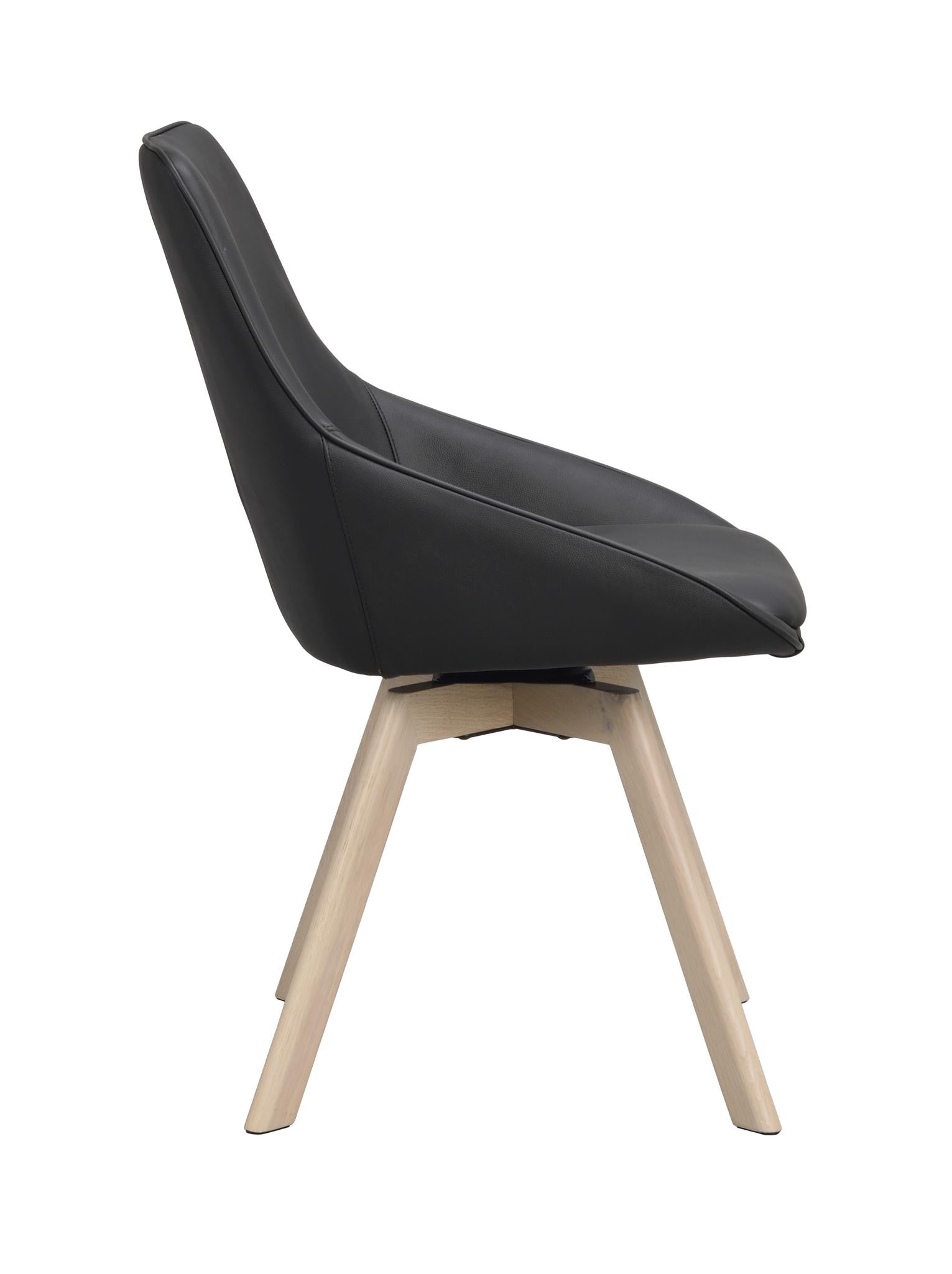 • Svart matstol med träben i ekfanér, visad från sidan med svängbar funktion