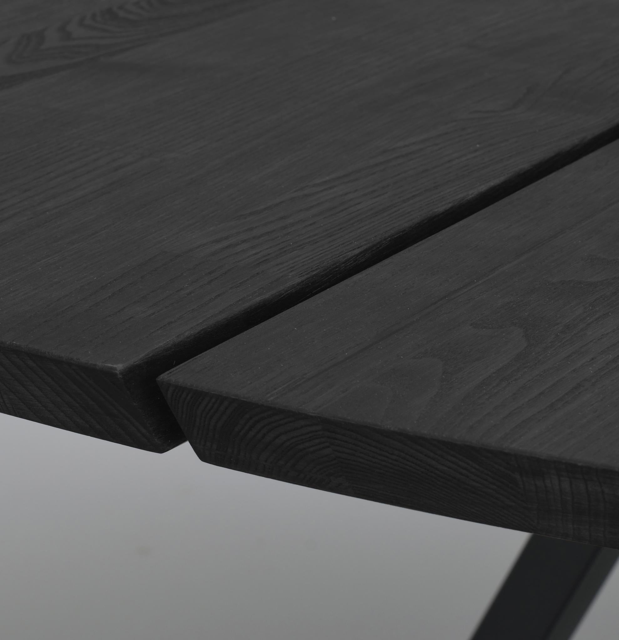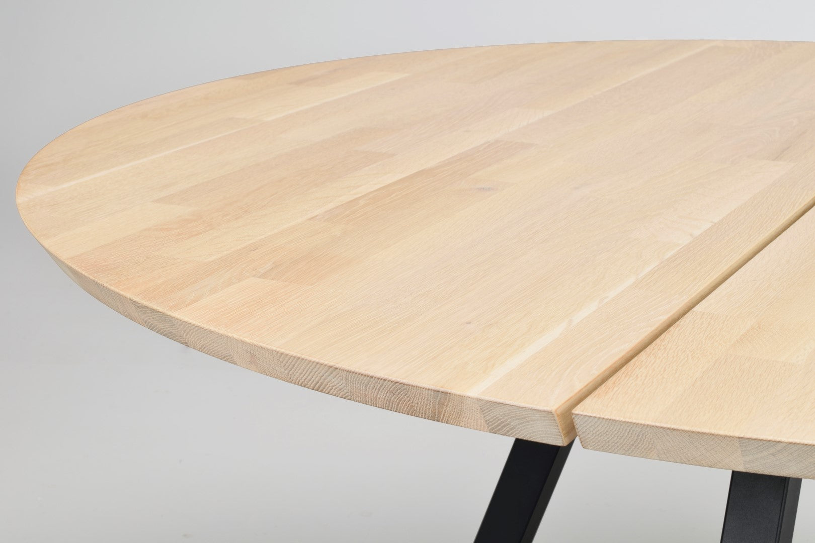 Carradale matbord Ø150 cm i brunoljad FSC-certifierad ek. Tvådelad massiv bordsskiva med borstad yta och A-formade ben i svart pulverlackad metall. Den stabila benställningen ger bordet en trygg känsla. Matbordet ingår i den flexibla Carradale-serien där du kan utforma bordet som du vill ha det genom att välja mellan olika storlekar, former och färger på bordsskivan samt vilken benställning du vill ha.