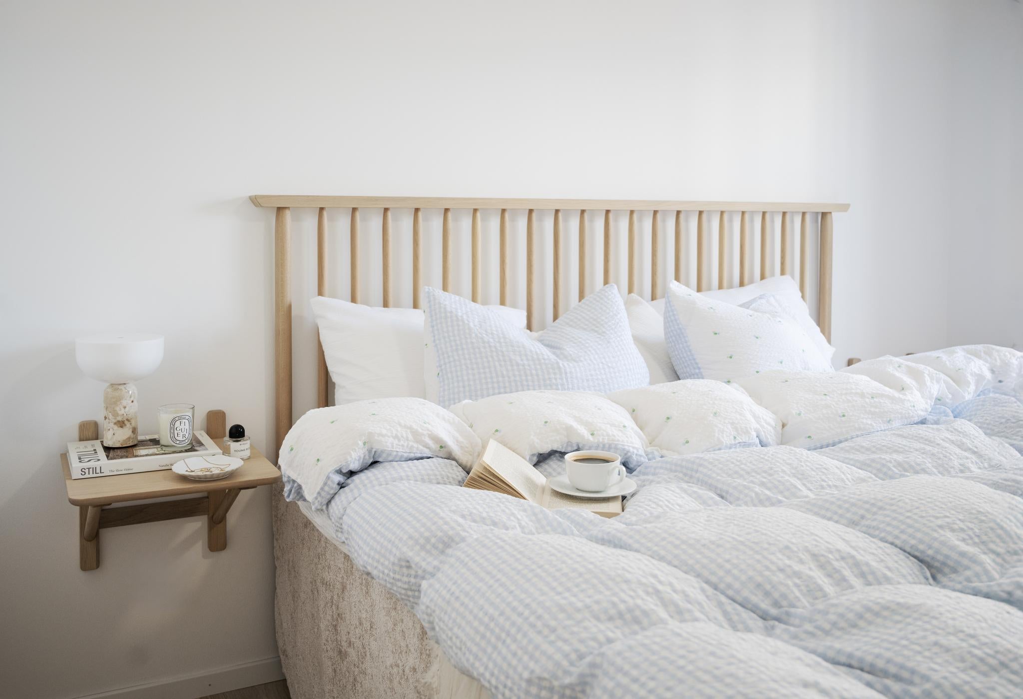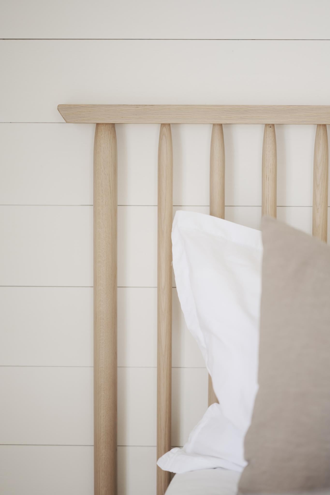 Riggins sänggavel i skandinavisk design är en unik och stilren sovrumsmöbel av massiv ek som passar perfekt till 180 cm breda sängar. Sänggaveln med de runda detaljerna matchas utmärkt till sängborden Camrose. Kombinera med vägghängda sänglampor eller pendellampor ovanför sängborden för ett riktigt stilsäkert sovrum. Riggins sänggavel matchas även bra med de trendiga pinnstolarna Lotta och Carmen, som exempelvis kan användas som både sängbord och avlastningsyta i sovrummet. Tack vare de justerbara metallbenen kan du själv välja höjd på sänggaveln, från 125 till 149 cm. Höjd exkl ben: 84 cm. Finns även i vitpigmenterad ek.