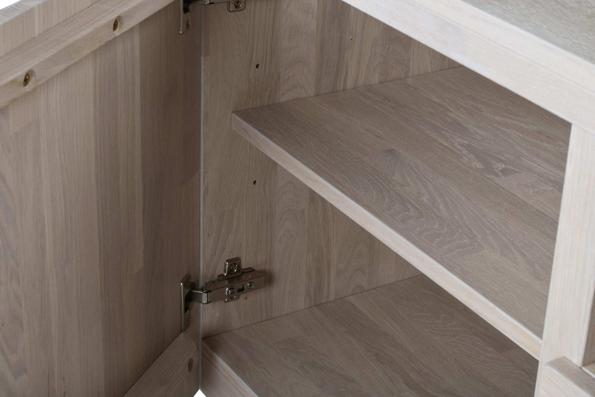 Funktionellt sideboard i stilren design med gott om förvaring. Tillverkat i massiv fingerskarvad lackad europeisk ek. Luckor och lådor har en mjukstängande sk soft-close funktion. Skåpet ingår i vår omfångsrika Brooklyn-serie där samtliga delar är FSC®-certifierade.