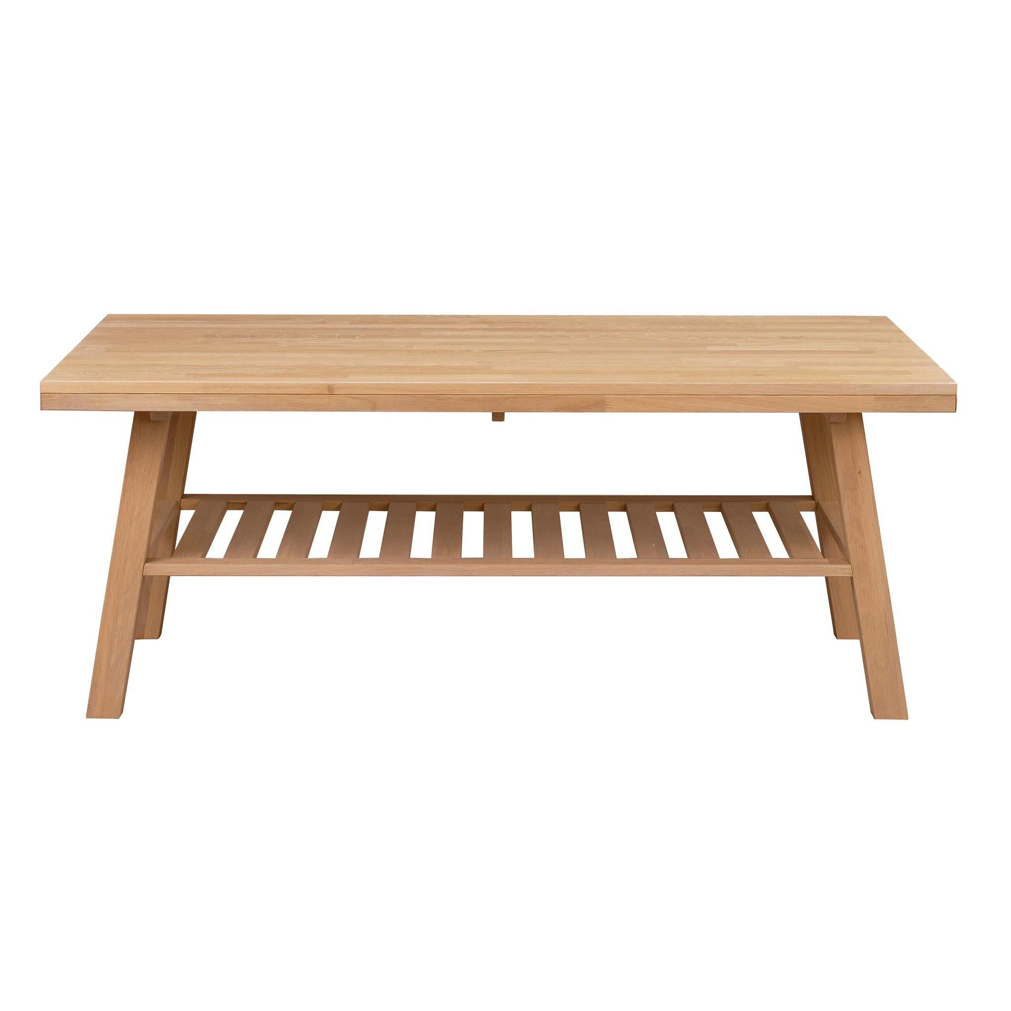 Tidlöst soffbord i stilren design med lätt utställda ben och en praktisk förvaringshylla. Soffbordet är tillverkat i massiv fingerskarvad europeisk ek som är lackad. Soffbordet ingår i vår omfångsrika Brooklyn-serie, där samtliga delar är FSC®-certifierade.