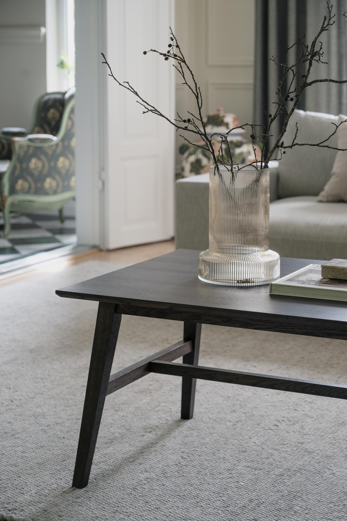 Det rektangulära Filippa soffbordet, 130 cm, i mörkbrun ek har en klassisk skandinavisk design som är mycket omtyckt. Soffbordet består av massiv fingerskarvad ek och har lätt borstad och lackad yta. I kollektionen Filippa ingår flera soffbord, matbord och även förvaring. Soffbordet är tillverkad av 100% FSC®-certifierat trä. Detta gör det inte bara till ett vackert tillskott i ditt hem, utan också ett hållbart och ansvarsfullt val.