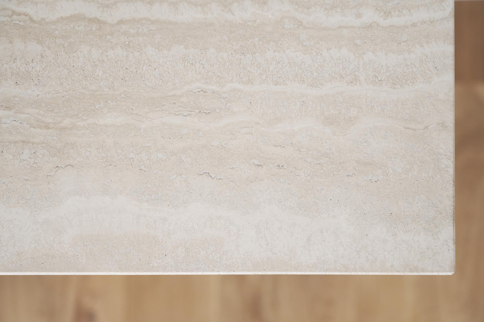 Tänk på att använda underlägg och direkt torka upp spill för att bevara stenskivans utseende. Observera att travertin är ett naturmaterial och det förekommer därför variationer i struktur och färg. Små håligheter är inte defekter utan unika drag för varje stenskiva.