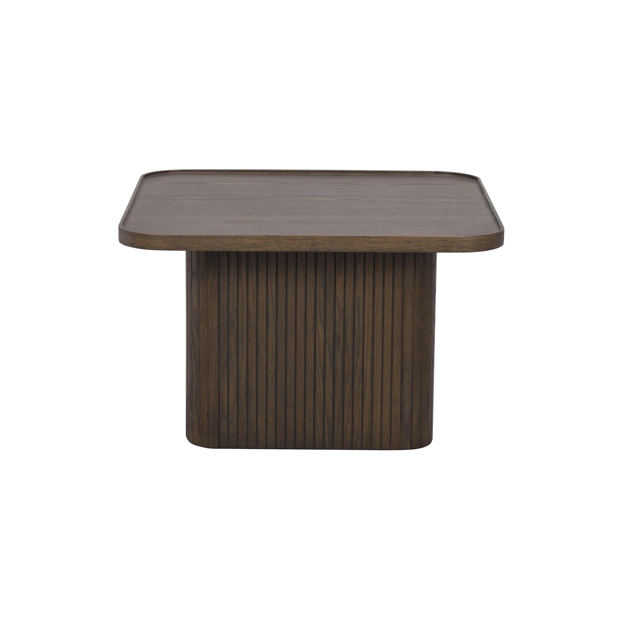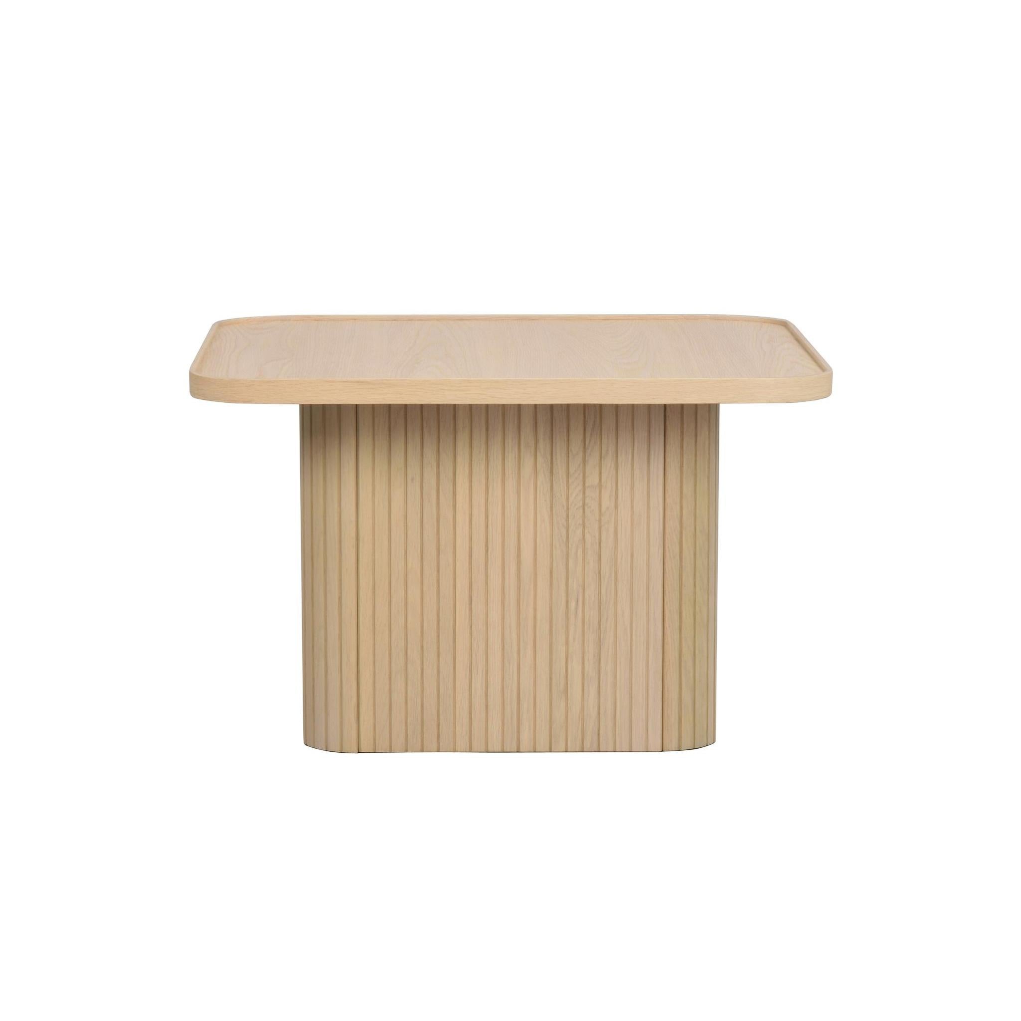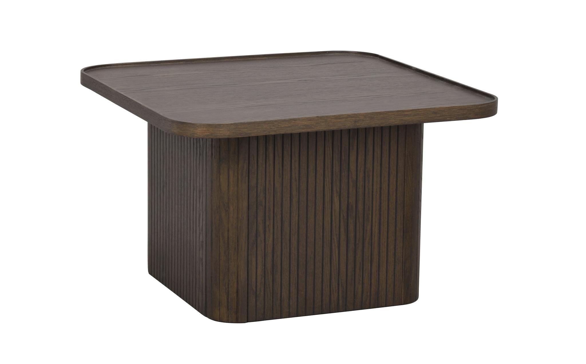 Sullivan soffbord 60x60 cm är ett trendigt exklusivt soffbord i skandinavisk design. Foten har ett smakfullt linjerat mönster. Soffbordet har en fanerad bordsskiva med rundande hörn som ger den en mjuk känsla. Sullivan soffbord finns i två olika storlekar, placera dem separat eller tillsammans som satsbord. Finns även i svart och vitpigmenterad ek.