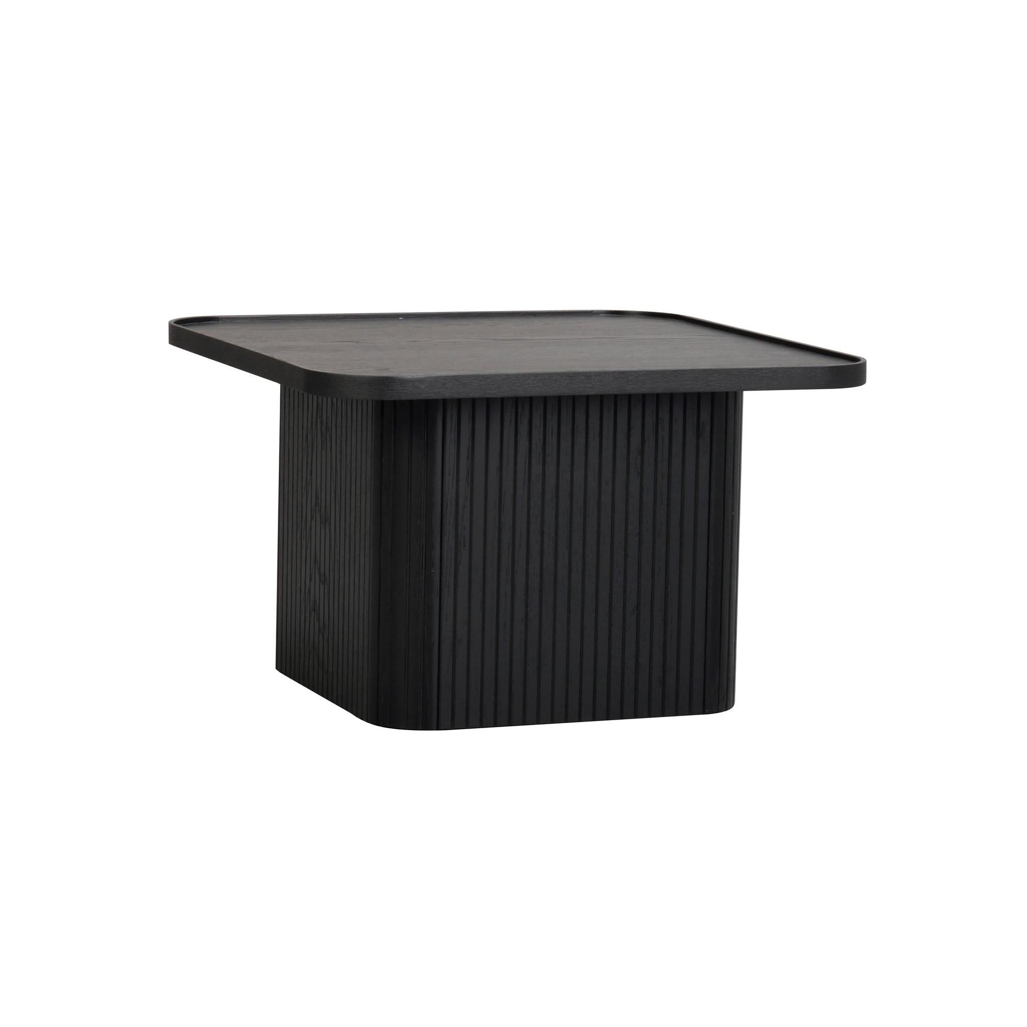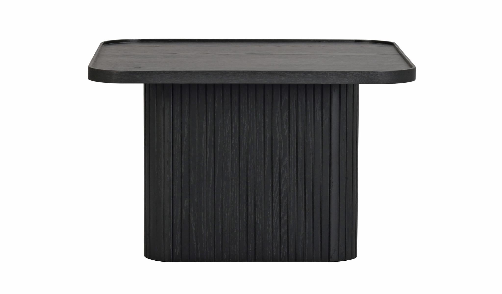 • Svart soffbord med räfflad sockel och fyrkantig skiva i modern skandinavisk design